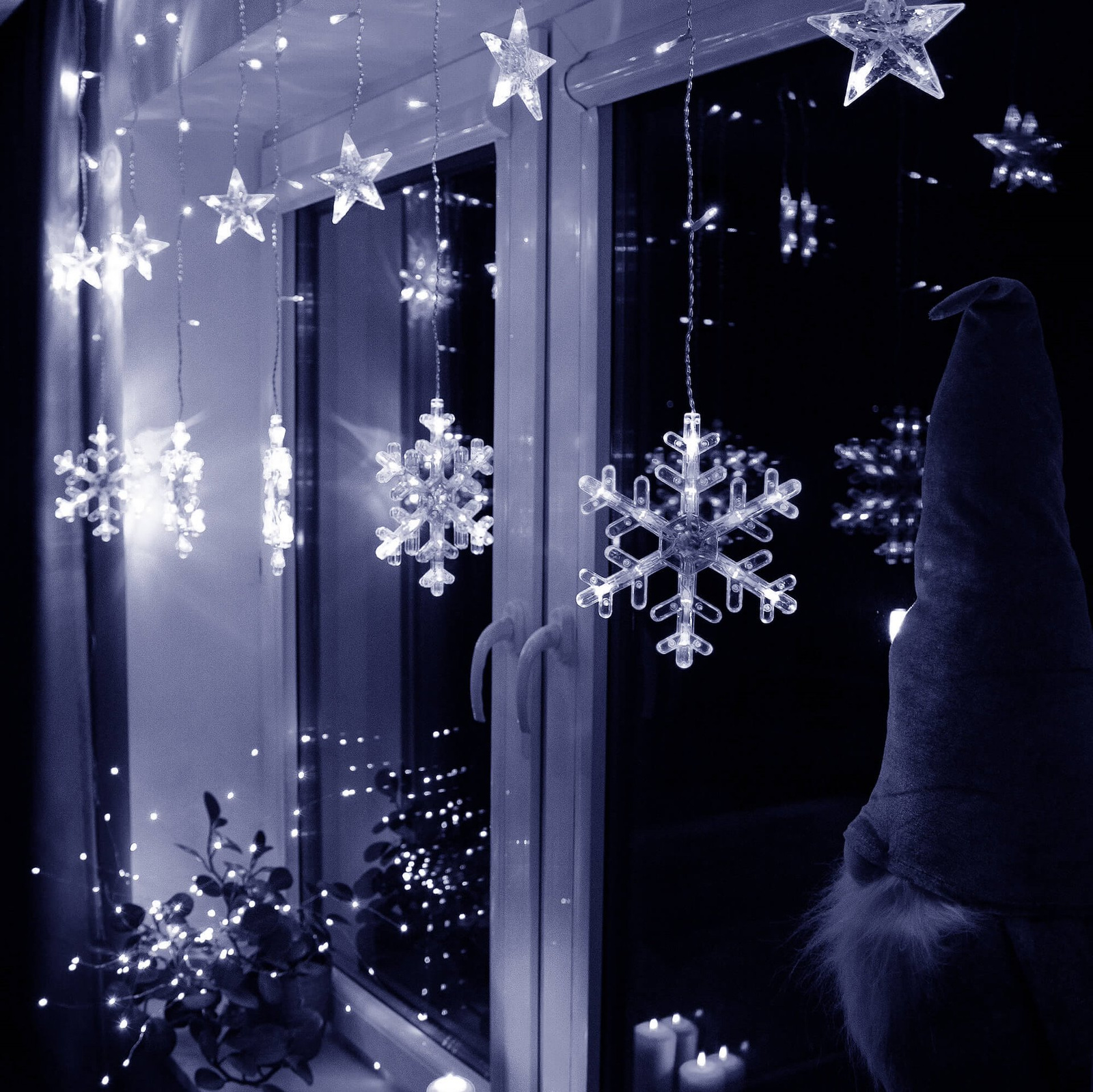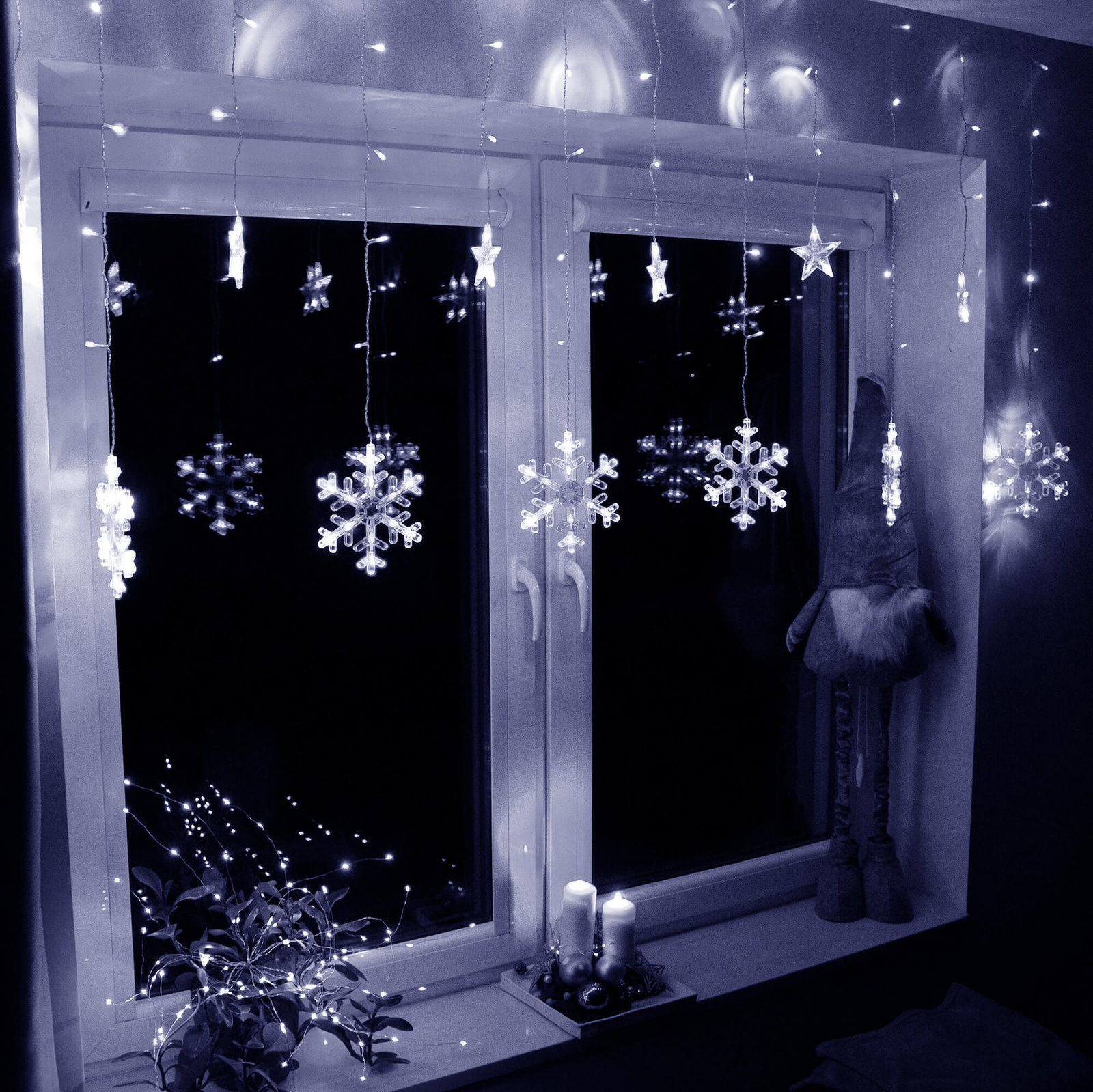 Poczuj magię świąt, dekorując lampkami choinkowymi swój dom. Niech nasza kurtyna świetlna w białym, zimnym kolorze rozświetli twój pokój, salon czy kuchnię. Taki świąteczny akcent na pewno przyciągnie wzrok i sprawi, że wokół zapanuje wspaniały, świąteczny klimat. Kurtyna LED doskonale prezentuje się na tle firanek i zasłon okiennych, optycznie ocieplając wnętrze i dodając mu uroku. Jeśli marzysz o oryginalnym oświetleniu świątecznym, kurtyna świetlna spełni twoje najśmielsze oczekiwania! Girlandę możesz też wykorzystać jako całoroczną dekorację, np. w pokoiku dziecięcym.