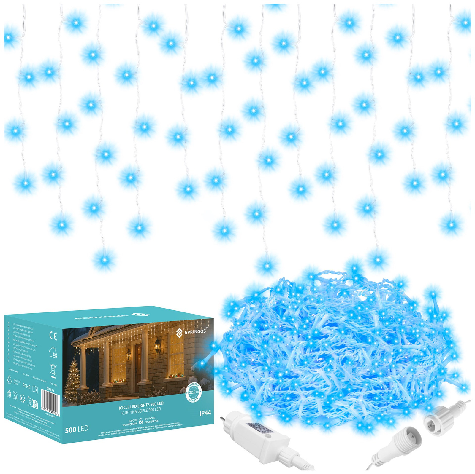 Kurtyna świetlna 1500 led girlanda, lampki wewnętrzno-zewnętrzne sople niebieski