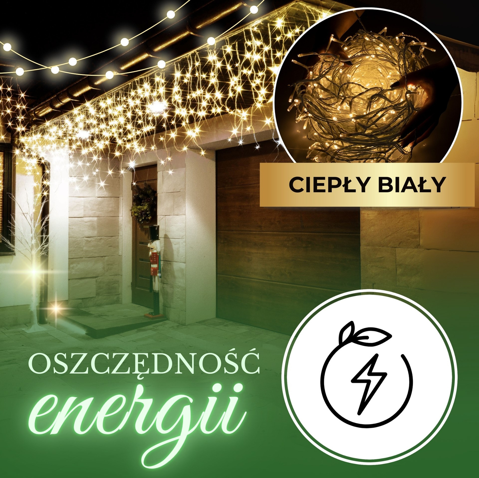 Kurtyna świetlna 300 led girlanda, lampki wewnętrzno-zewnętrzne sople ciepły biały