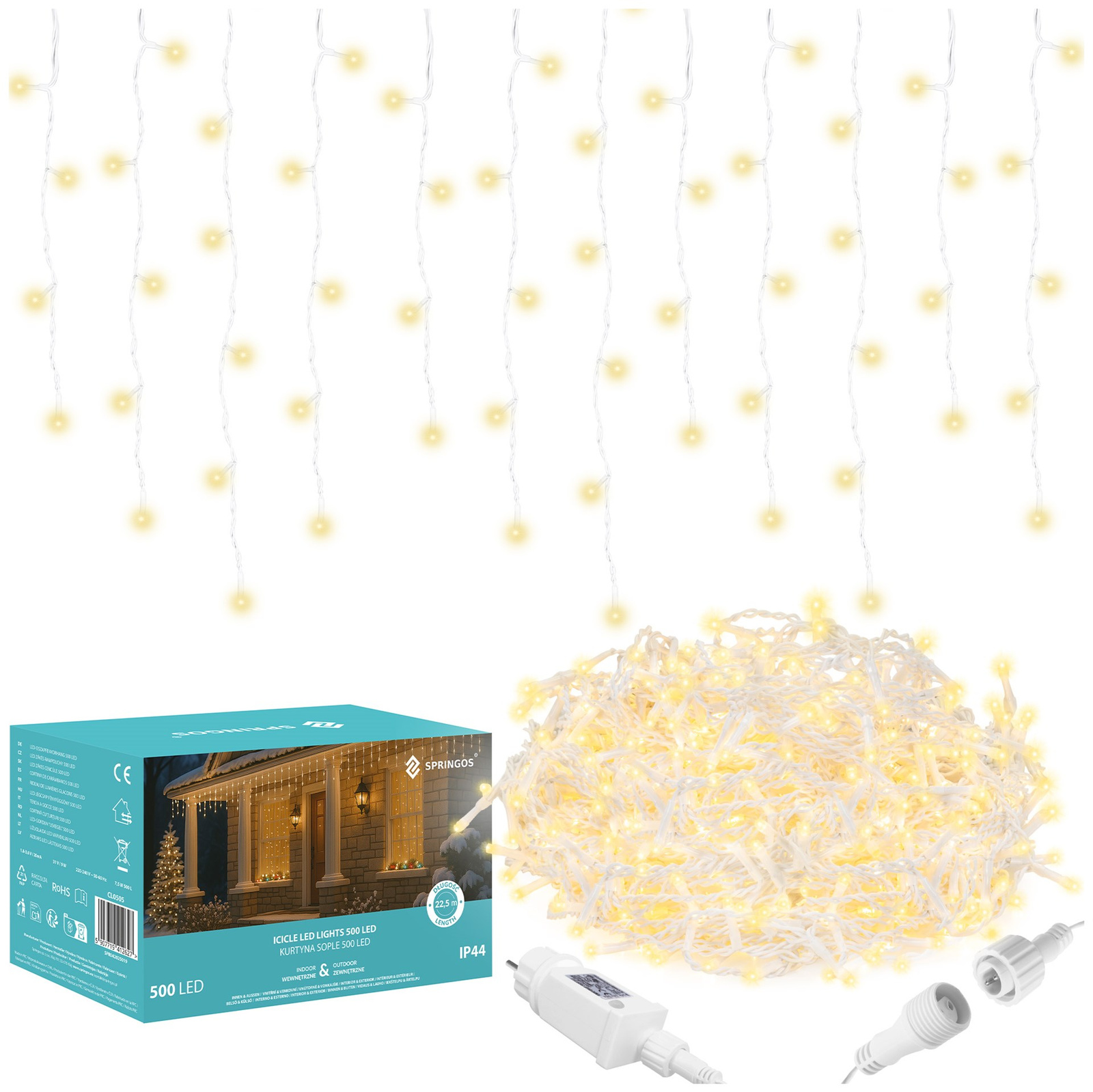 Kurtyna świetlna z pilotem 1500 led girlanda, lampki wewnętrzno-zewnętrzne 67 m sople ciepły biały
