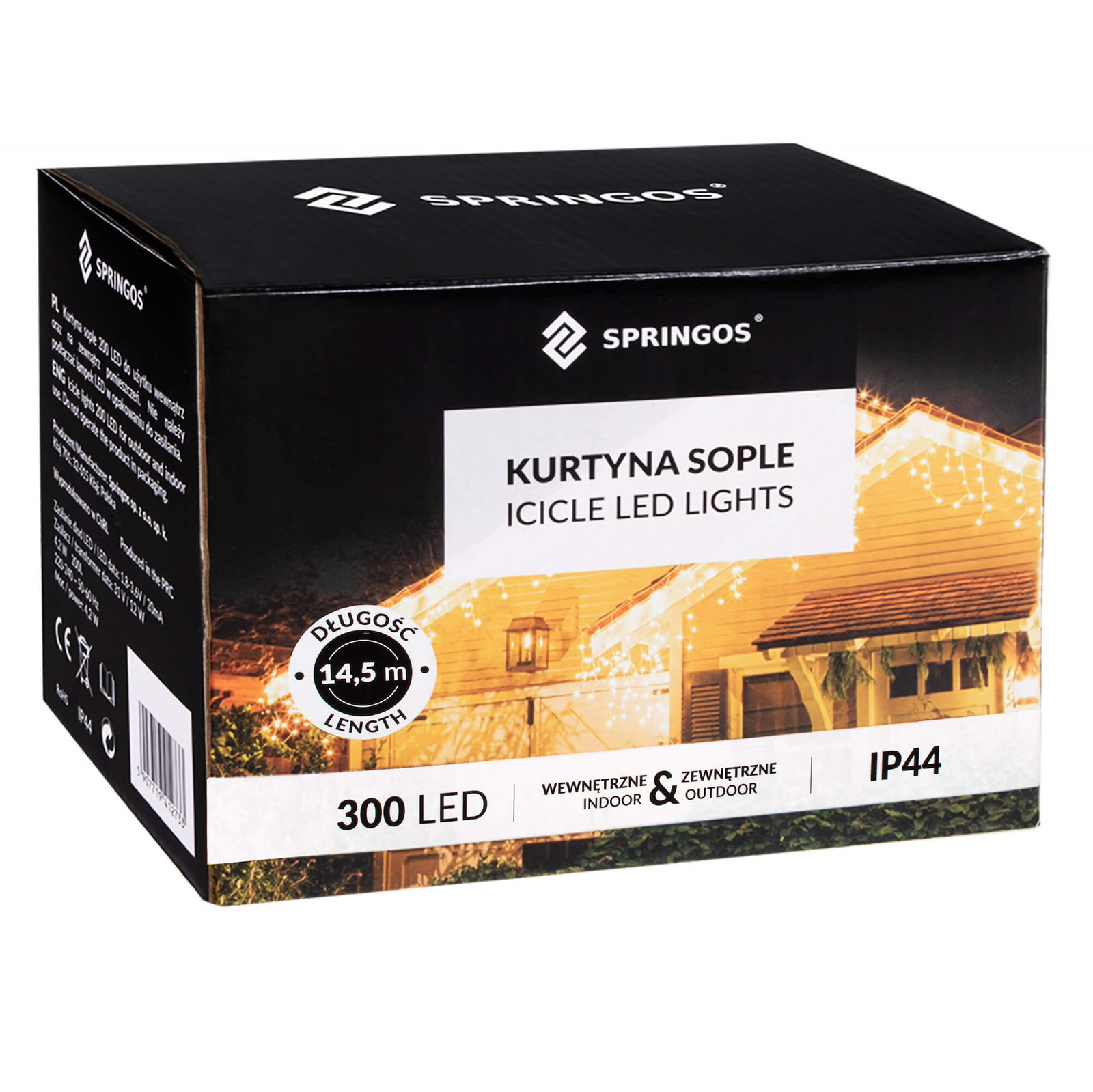 Kurtyna świetlna z pilotem 300 led girlanda, lampki wewnętrzno-zewnętrzne sople multikolor