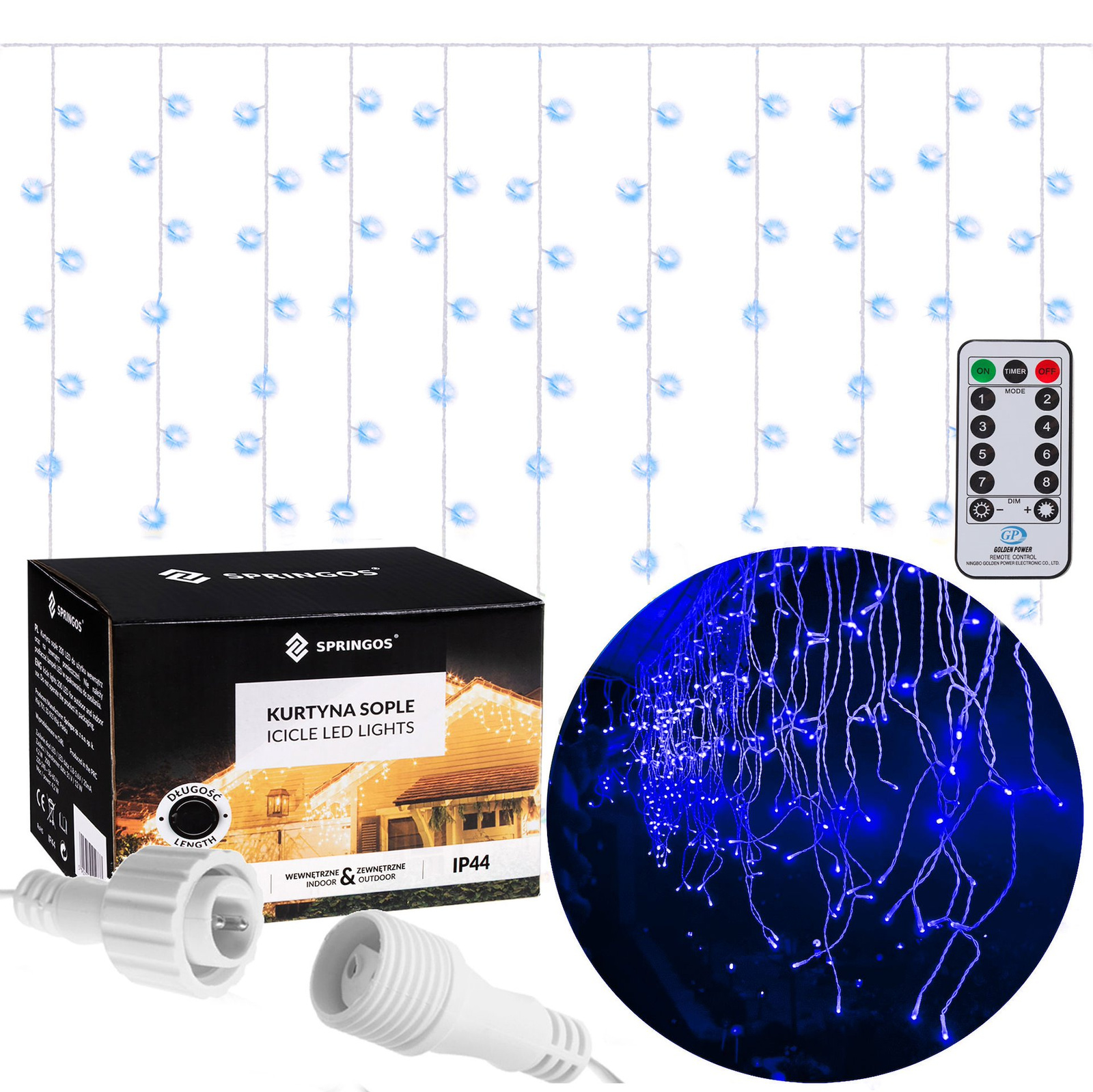Kurtyna świetlna z pilotem 300 led girlanda, lampki wewnętrzno-zewnętrzne sople niebieski