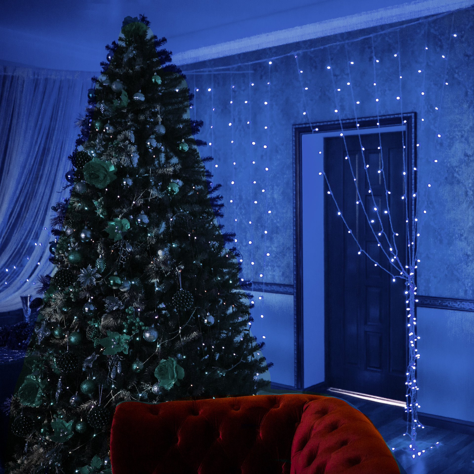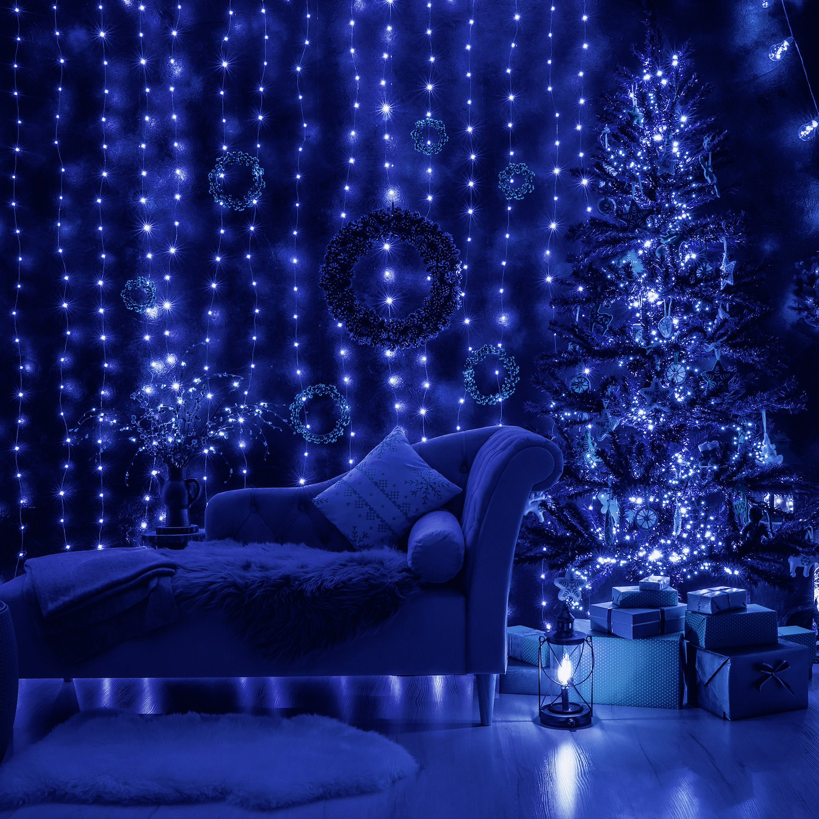 Poczuj magię świąt dekorując lampkami choinkowymi swój dom i ogród. Niech nasza kurtyna świetlna w niebieskim kolorze rozświetli twój pokój, salon, taras, balkon czy elewację domu. Taki świąteczny akcent na pewno przyciągnie wzrok i sprawi, że wokół zapanuje wspaniały, świąteczny klimat. Kurtyna LED doskonale prezentuje się na tle firanek i zasłon okiennych, optycznie ocieplając wnętrze i dodając mu uroku. Jeśli marzysz o oryginalnym oświetleniu świątecznym, kurtyna świetlna spełni twoje najśmielsze oczekiwania!