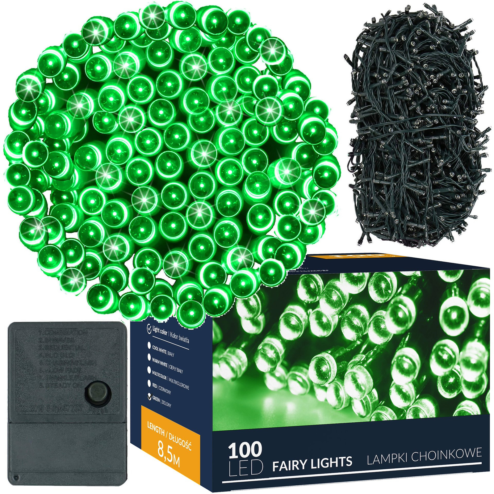 Lampki choinkowe 100 led zielone 8,5 m oświetlenie świąteczne