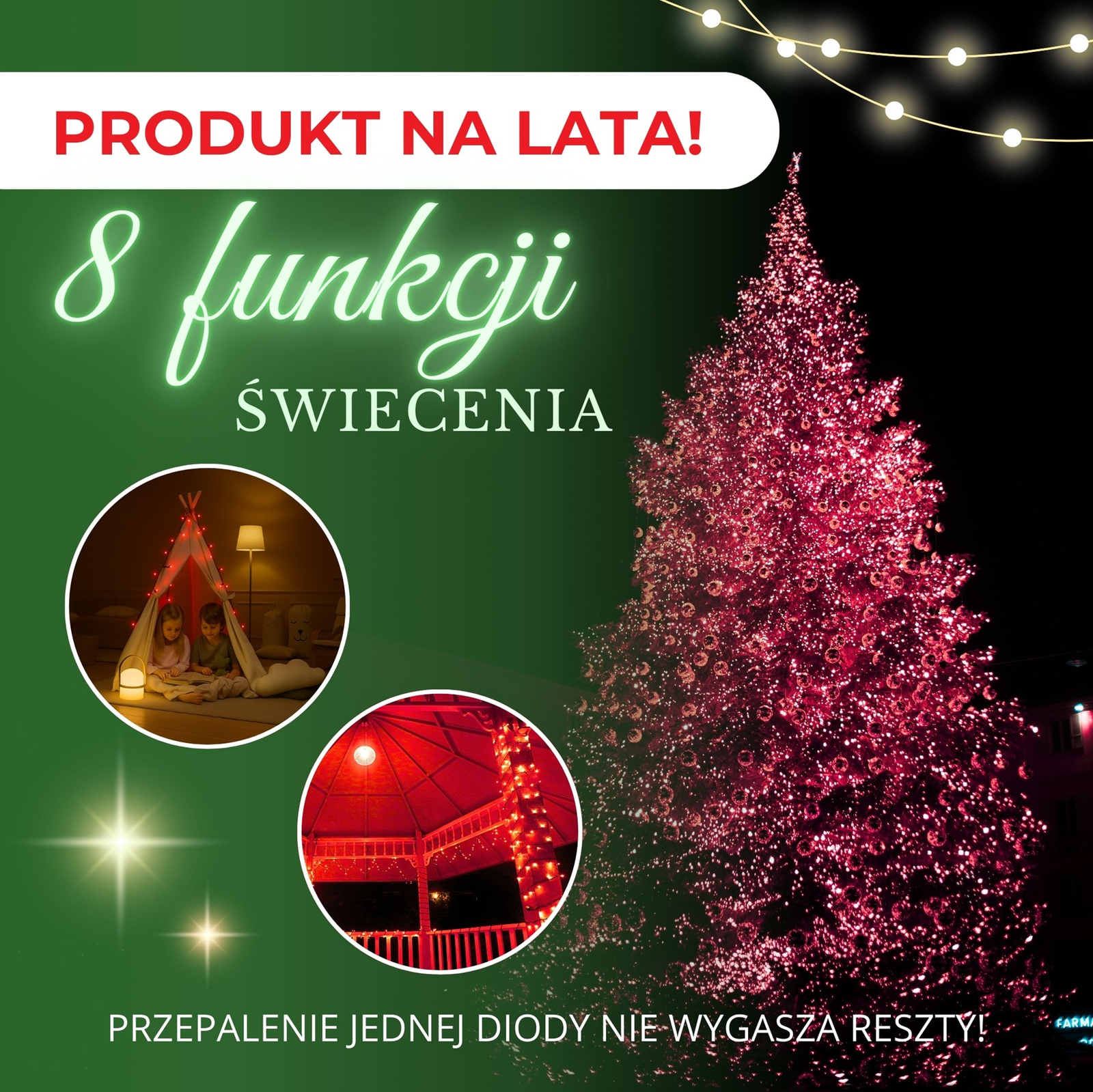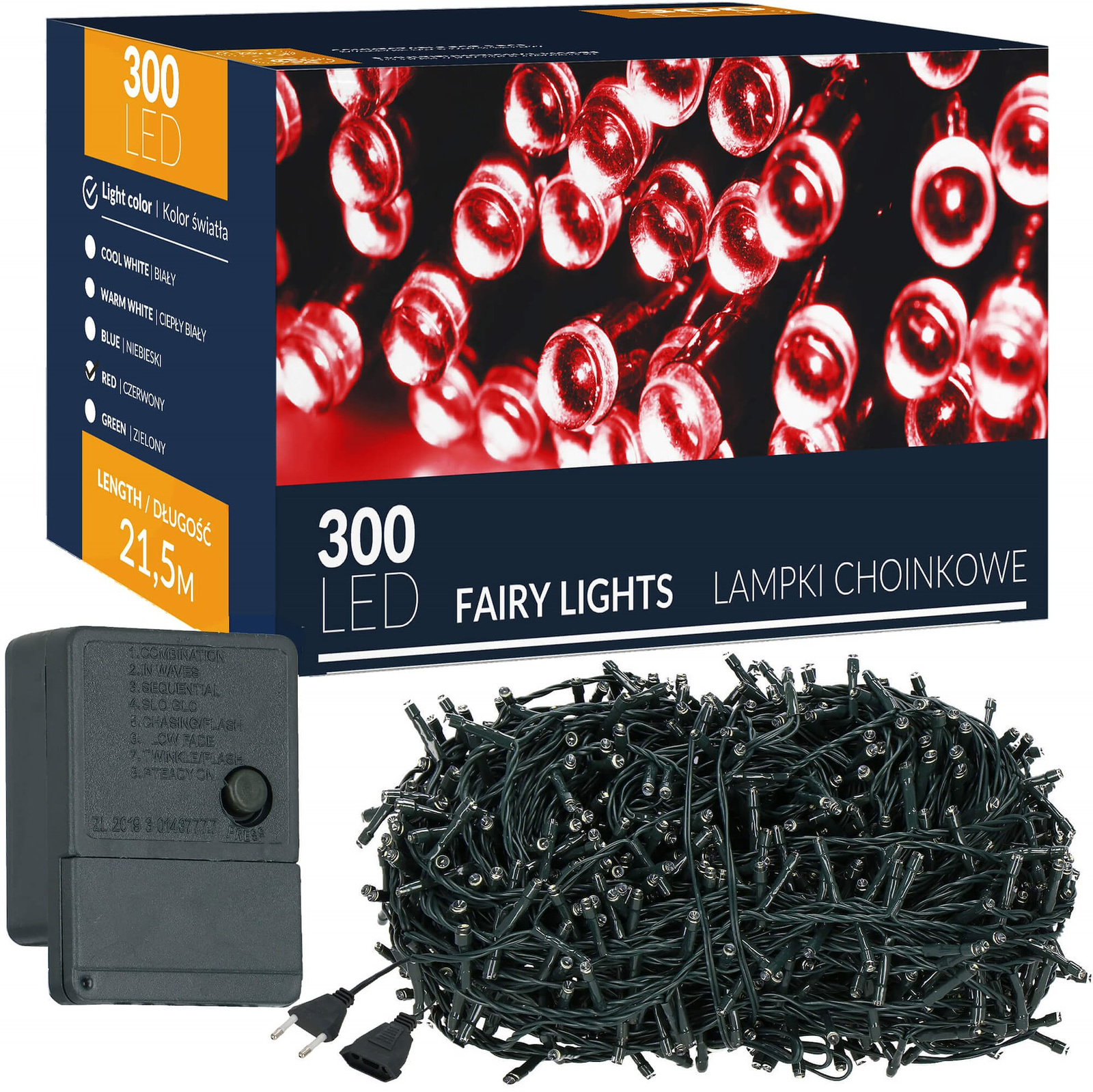 Lampki choinkowe 300 led czerwone 21,5 m oświetlenie świąteczne