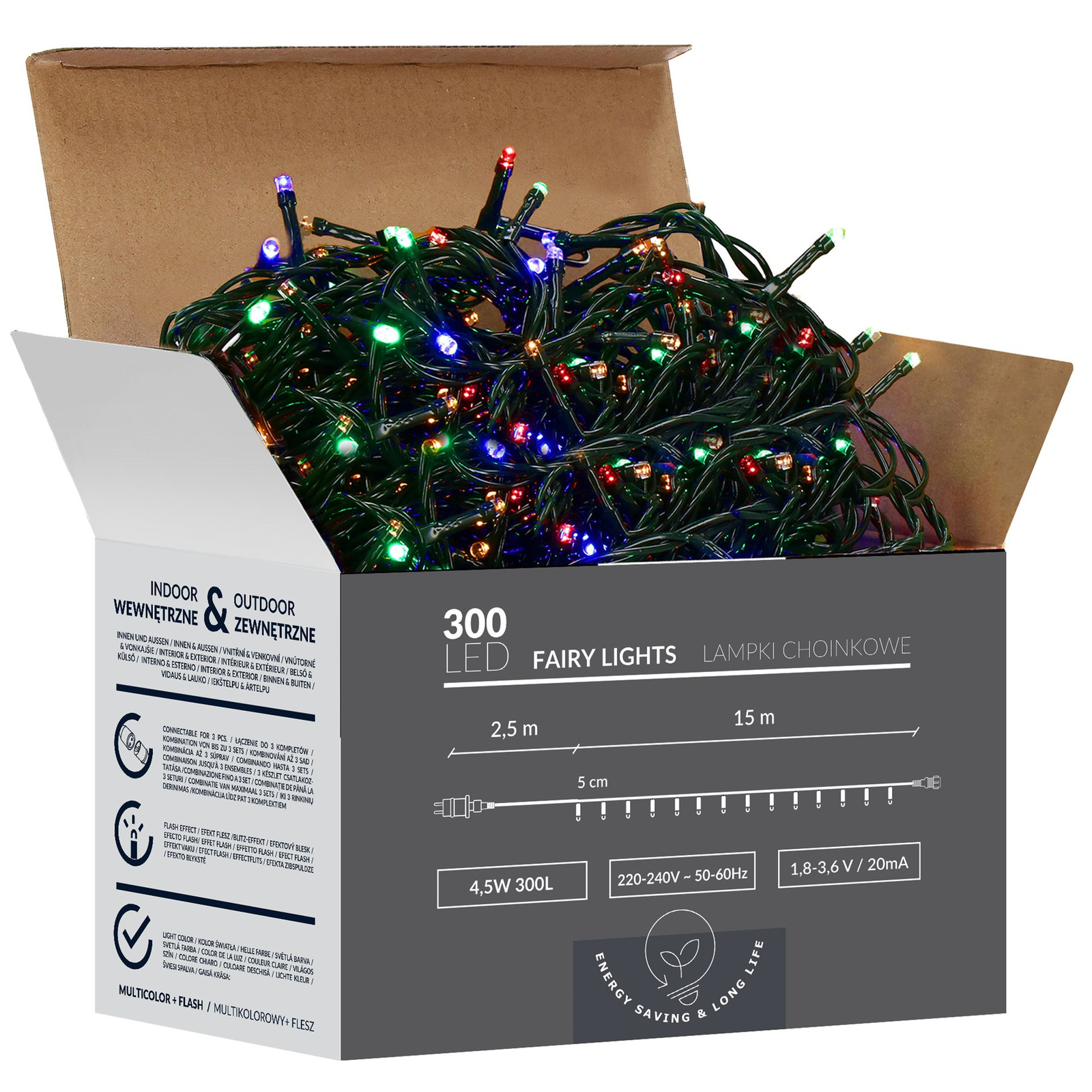 Lampki choinkowe 300 led multikolor + flash 15m oświetlenie świąteczne IP44