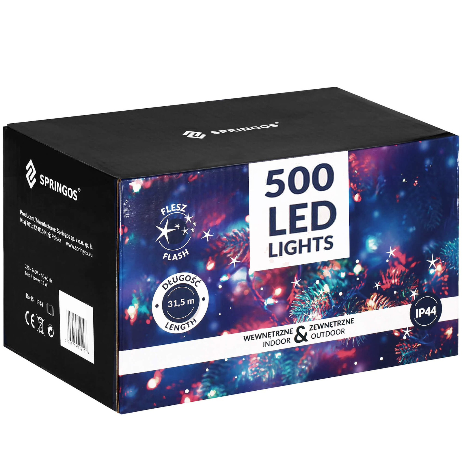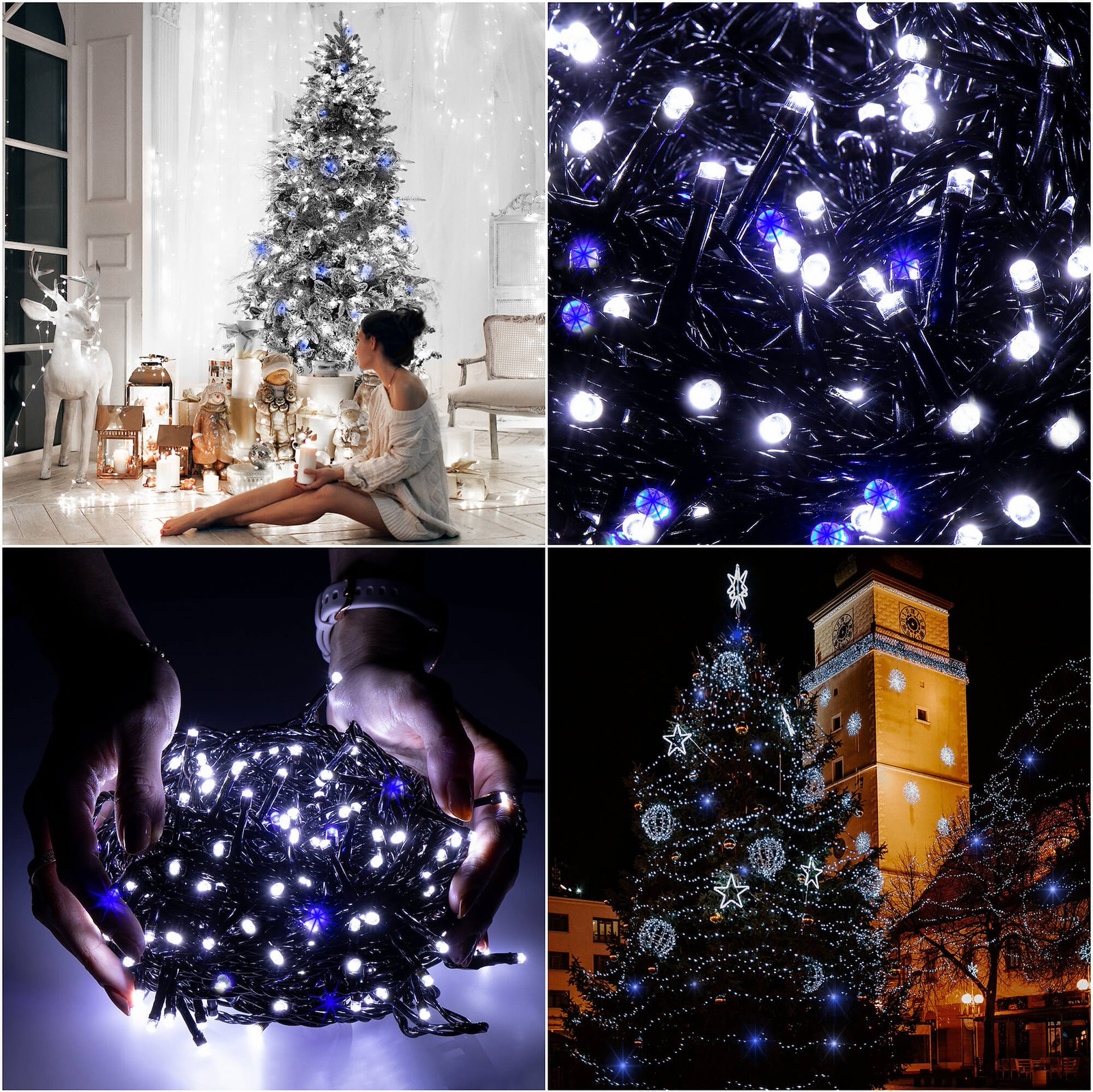 Lampki choinkowe 500 led biały zimny + niebieski flash 31,5 oświetlenie świąteczne IP44