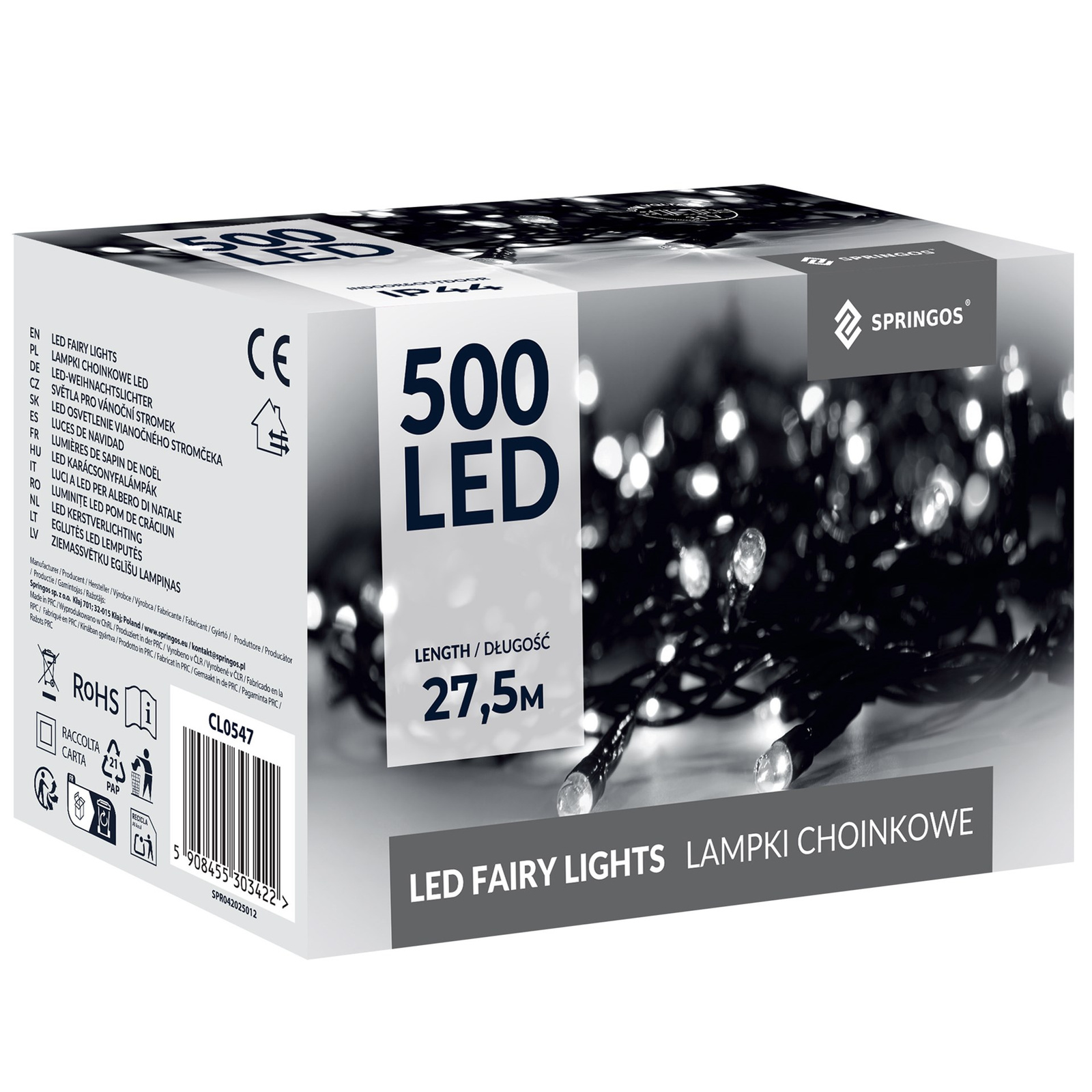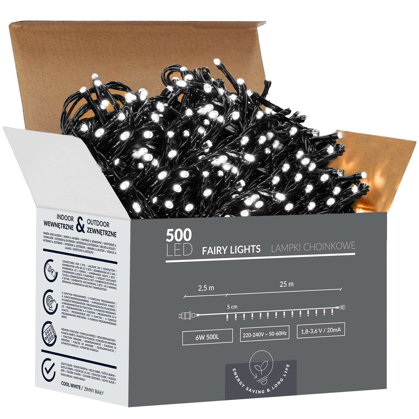 Lampki choinkowe 500 led zimny biały 27,5 m oświetlenie IP44 na prąd