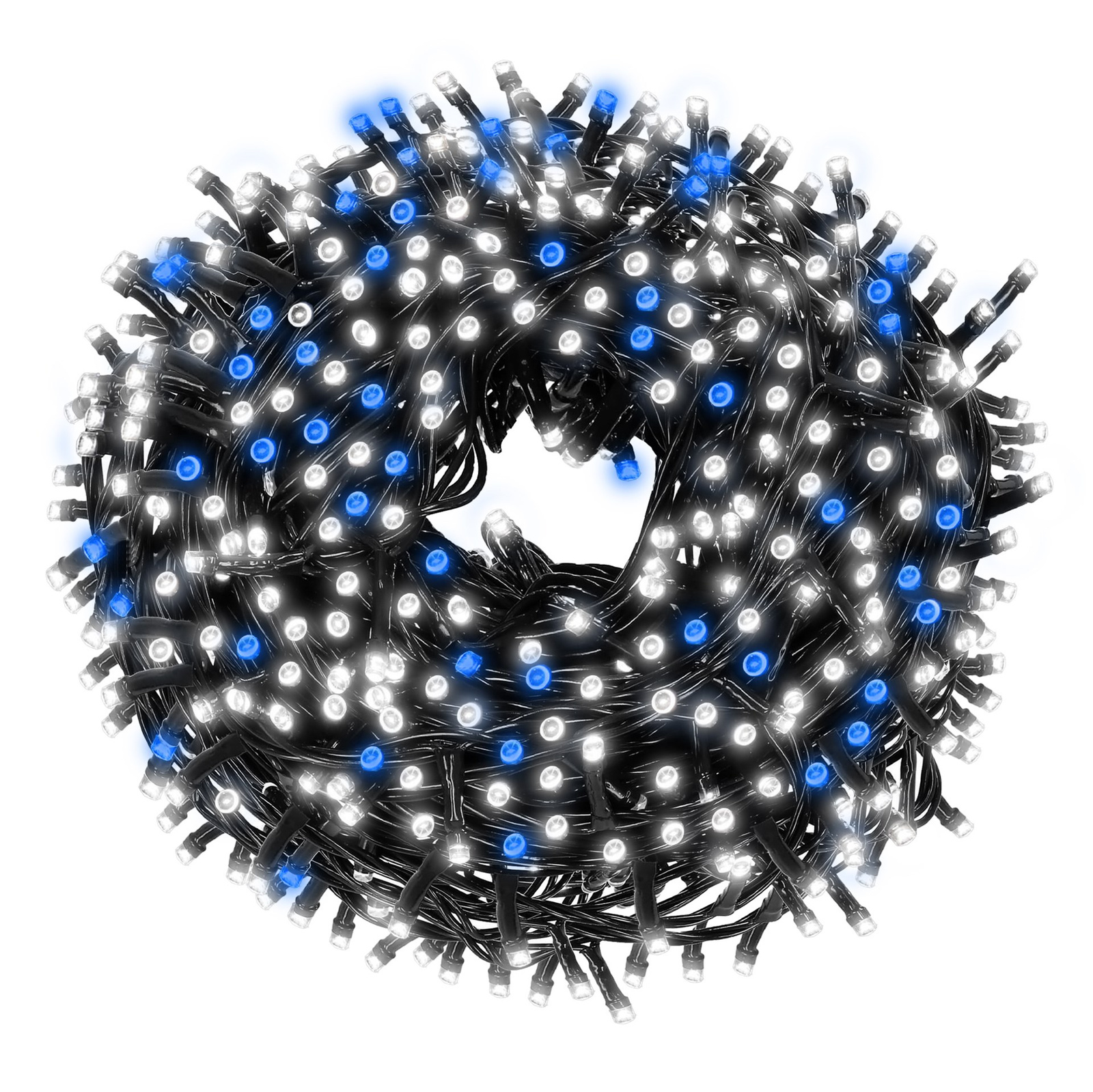 Opinie o Lampki choinkowe 500 Led zimny biały+ niebieski flash 41,5 m oświetlenie świąteczne IP44