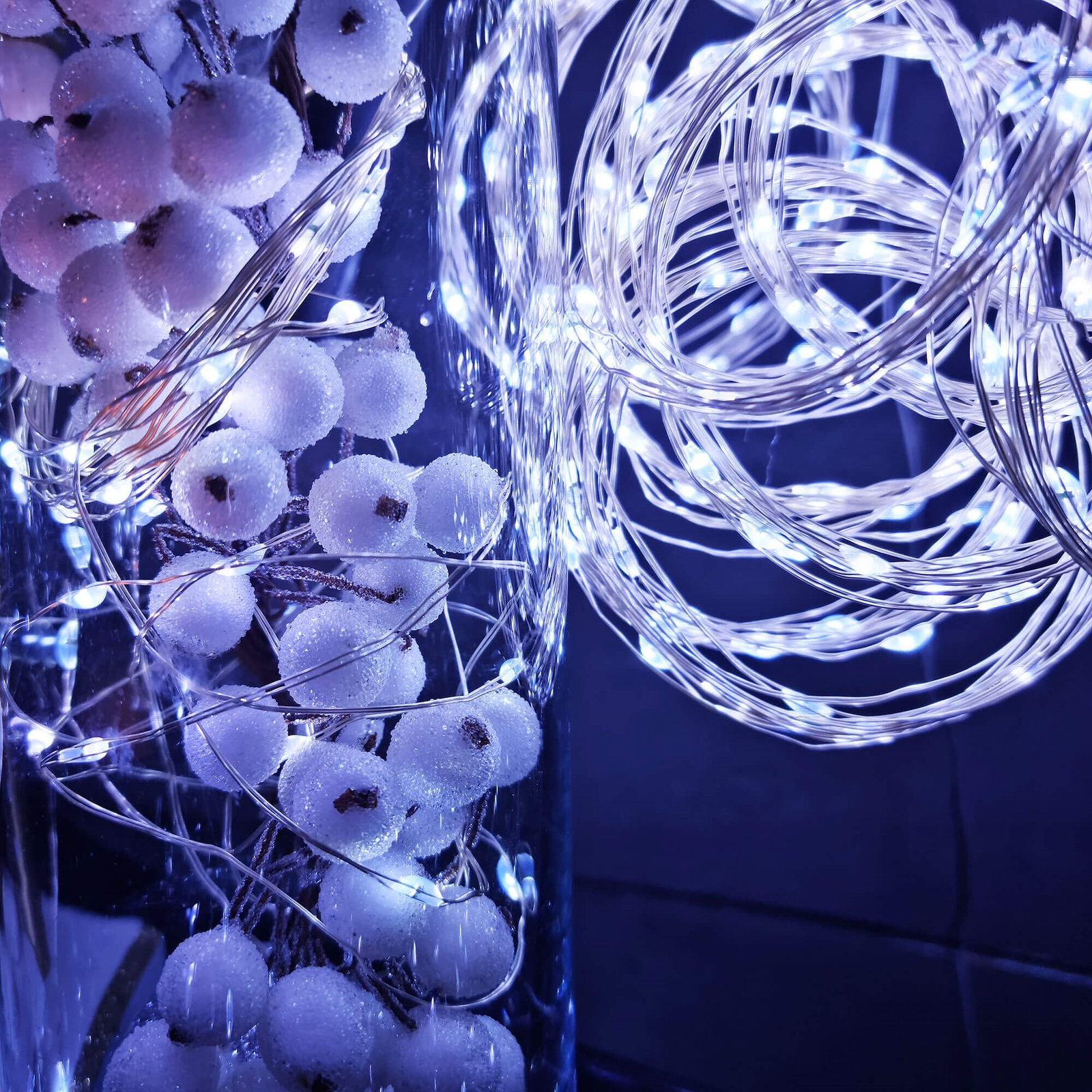 - Lampki na trwałych miedzianych przewodach w kolorze srebrnym