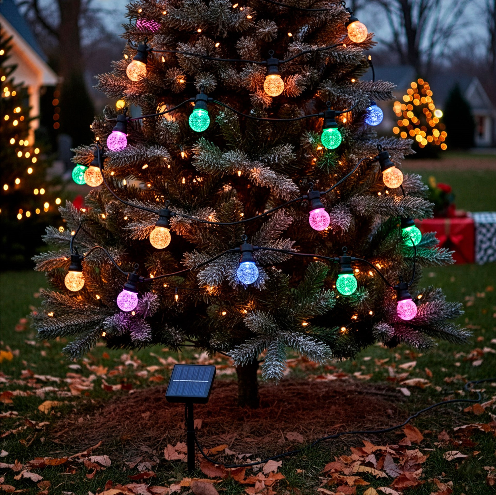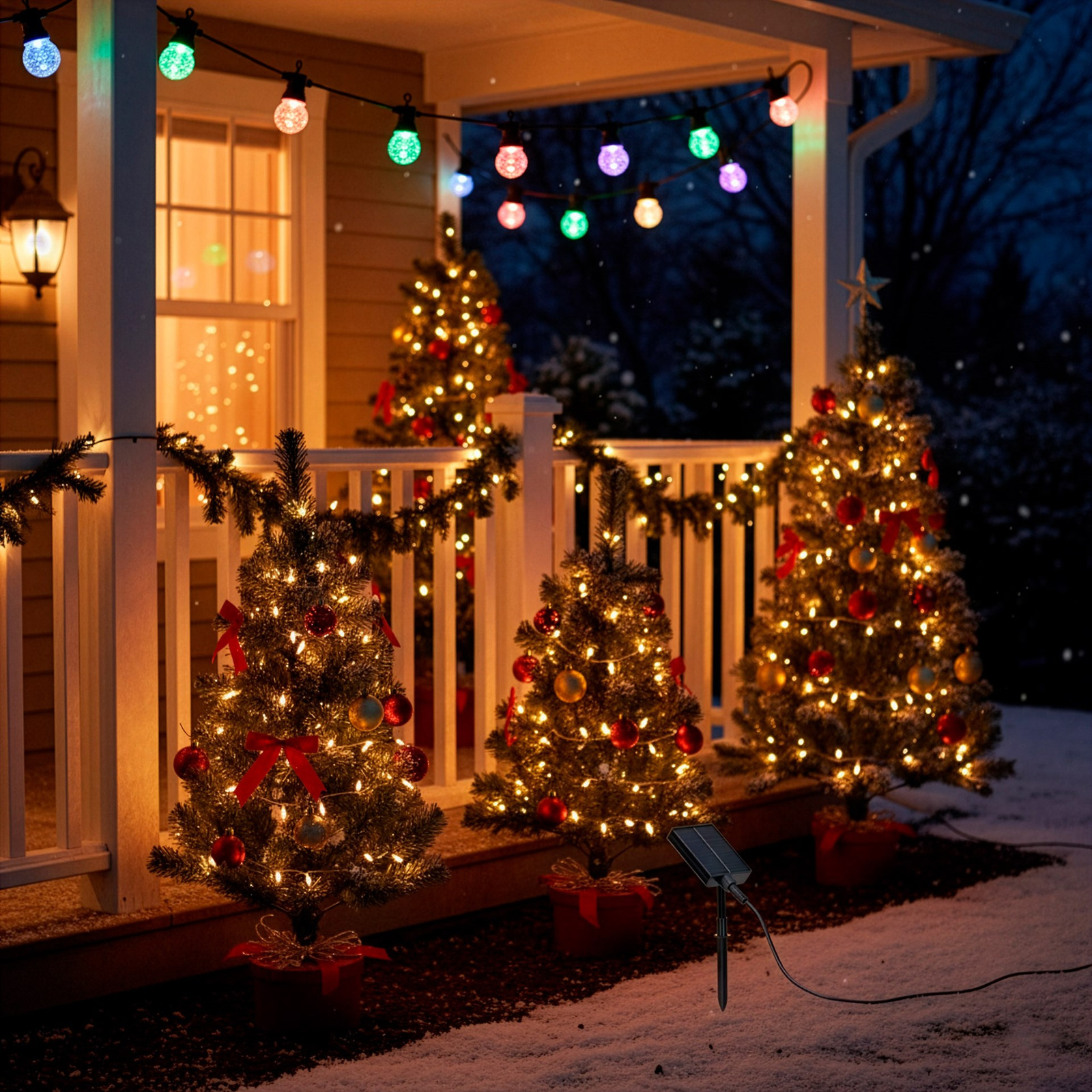 Lampki zostały wyposażone w nowoczesne ogniwo fotowoltaiczne z czujnikiem zmierzchu, dzięki czemu automatycznie włączają się po zapadnięciu ciemności. Akumulator ładuje się w ciągu 5–6 godzin, co zapewnia nawet do 10 godzin świecenia po pełnym naładowaniu. Produkt może być zasilany zarówno sieciowo, jak i akumulatorowo, co daje swobodę w rozmieszczeniu dekoracji. Dzięki klasie szczelności IP44 lampki są odporne na wilgoć i mogą być używane również na zewnątrz – na balkonie, tarasie, w ogrodzie czy przy wejściu do domu. Grube, miedziane przewody o średnicy 4 mm gwarantują trwałość i bezpieczeństwo podczas użytkowania. Ciepłe, kolorowe światło żarówek LED wprowadza przyjemną atmosferę, idealną zarówno do codziennego użytku, jak i podczas uroczystości. To produkt, który łączy nowoczesne technologie z estetycznym designem, stanowiąc niezawodny element dekoracyjny przez cały rok.