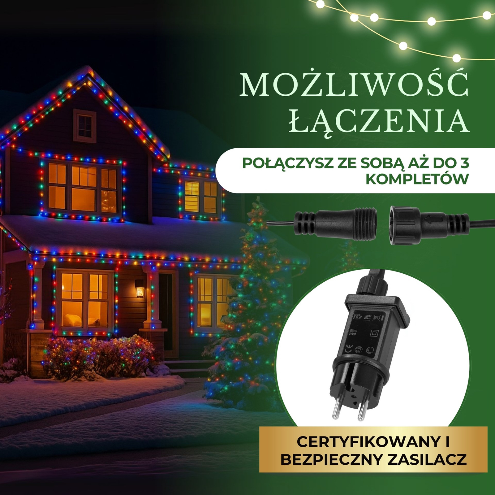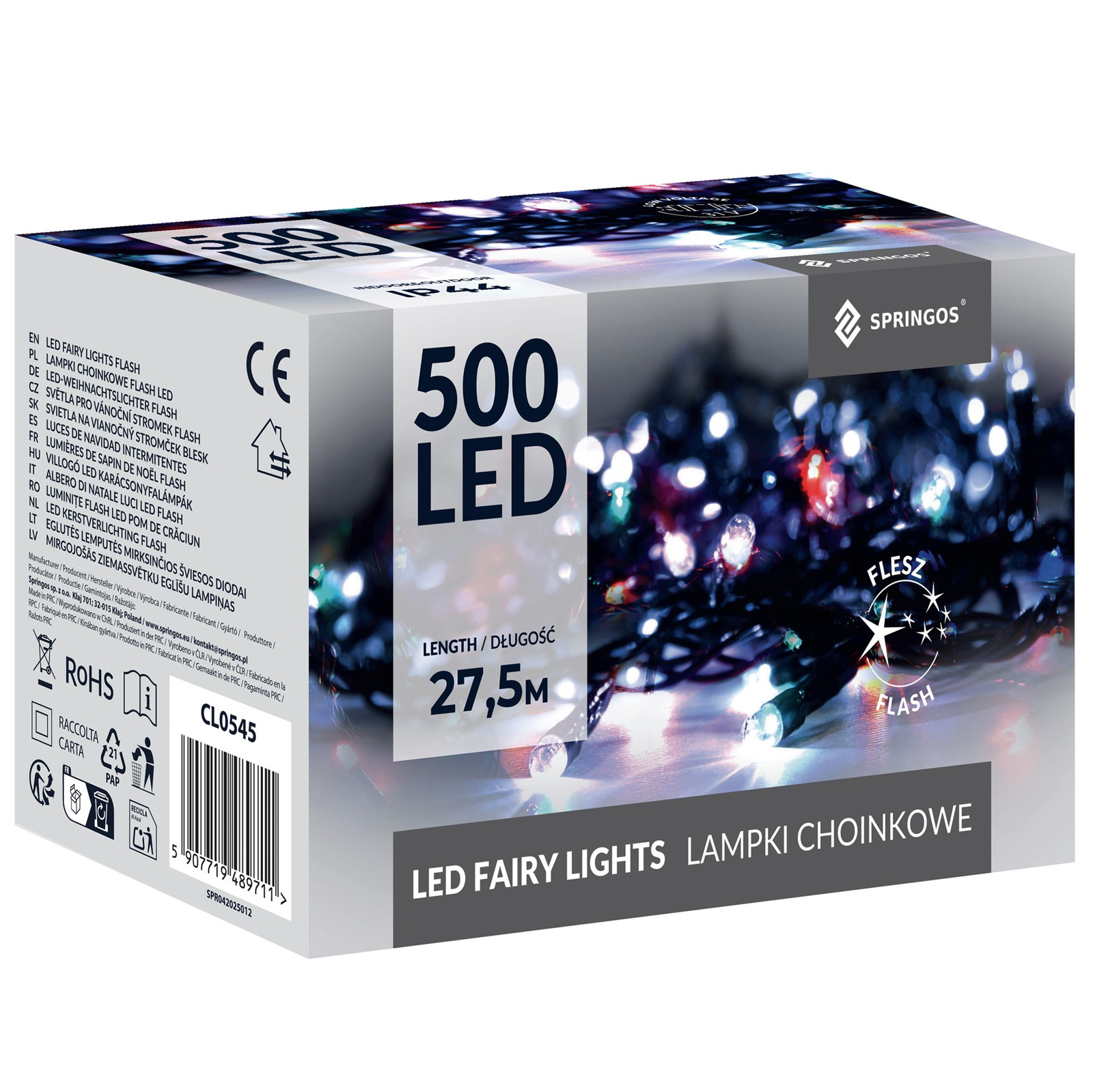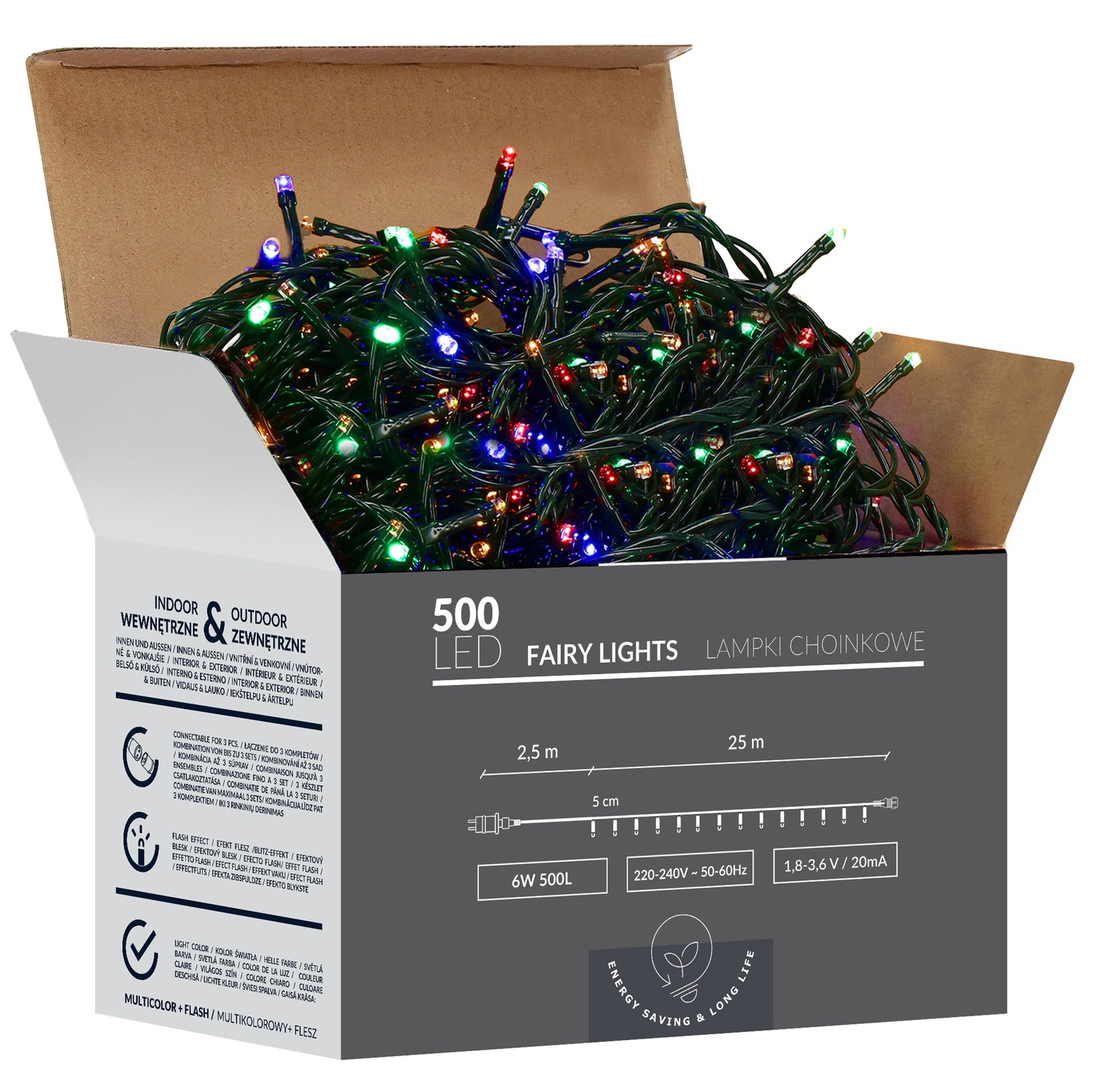 Lampki choinkowe zewnętrzne, wewnętrzne 500 led multikolor + niebieski flash 27,5 m światełka świąteczne