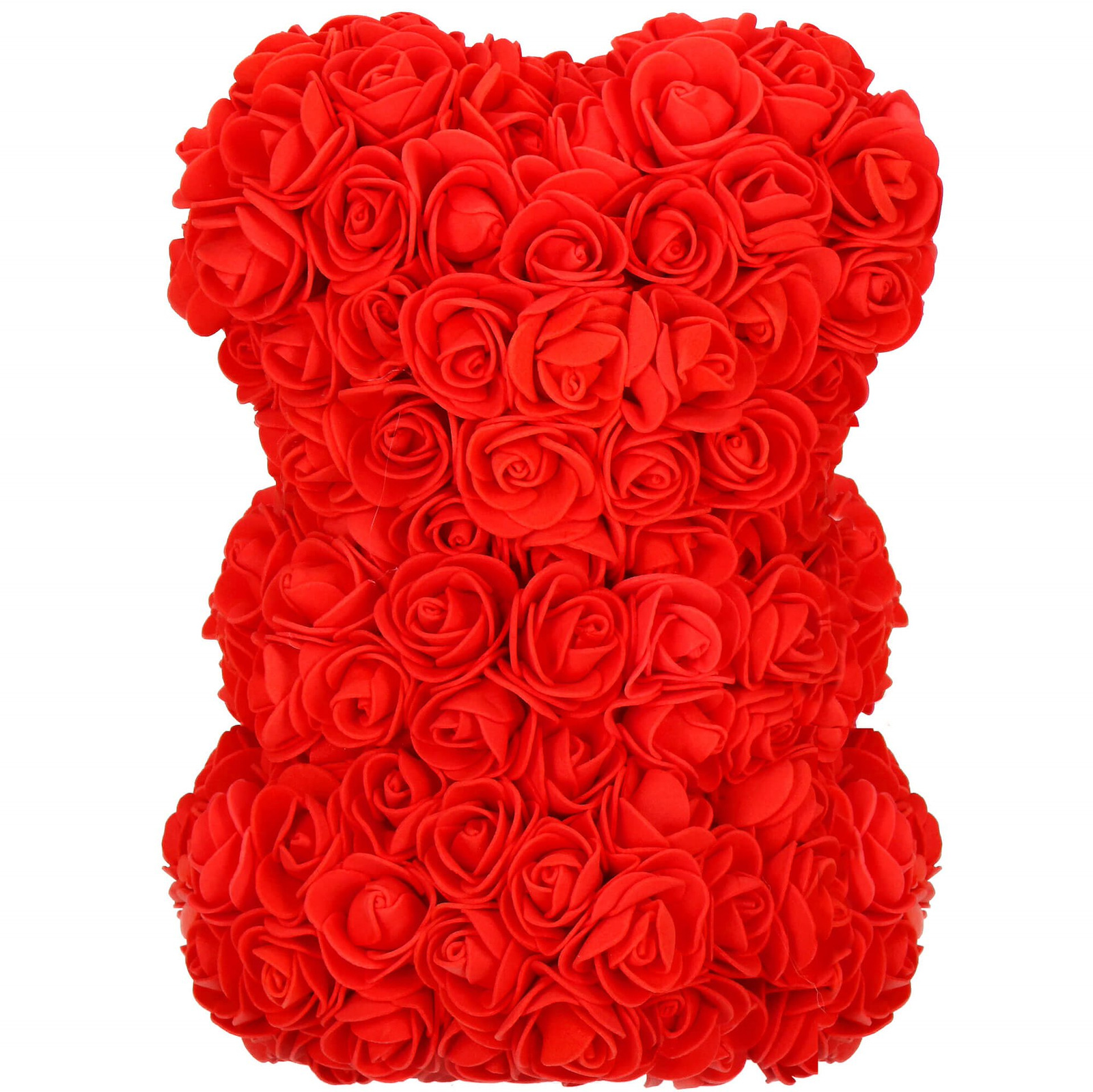 Wyraź to, co czujesz, obdarowując najbliższą Ci osobę pięknym podarunkiem! Nasz elegancki miś stworzony z setek wiecznie kwitnących róż jest doskonałym pomysłem na wytworny prezent. Sprawdzi się jako prezent walentynkowy dla ukochanej, stylowy upominek na urodziny lub imieniny oraz wyjątkowy podarek na wesele czy rocznicę ślubu. Czerwone róże to symbol miłości, namiętności, szczerych uczuć i przywiązania. Nic więc dziwnego, że to właśnie one zdobią pluszową ozdobę. Starannie wykonane kwiaty prezentują się zjawiskowo i dodają misiowi niepowtarzalnego uroku, podobnie jak dołączone do zestawu lampki LED w kolorze białym ciepłym. Obdarowana osoba może podziwiać śliczną maskotką przez wiele lat, gdyż naturalnie wyglądające róże nie wymagają żadnej pielęgnacji. Miś wykorzystany jako element dekoracyjny będzie nie tylko cieszył oko, ale i stale przypominał o ukochanej osobie.