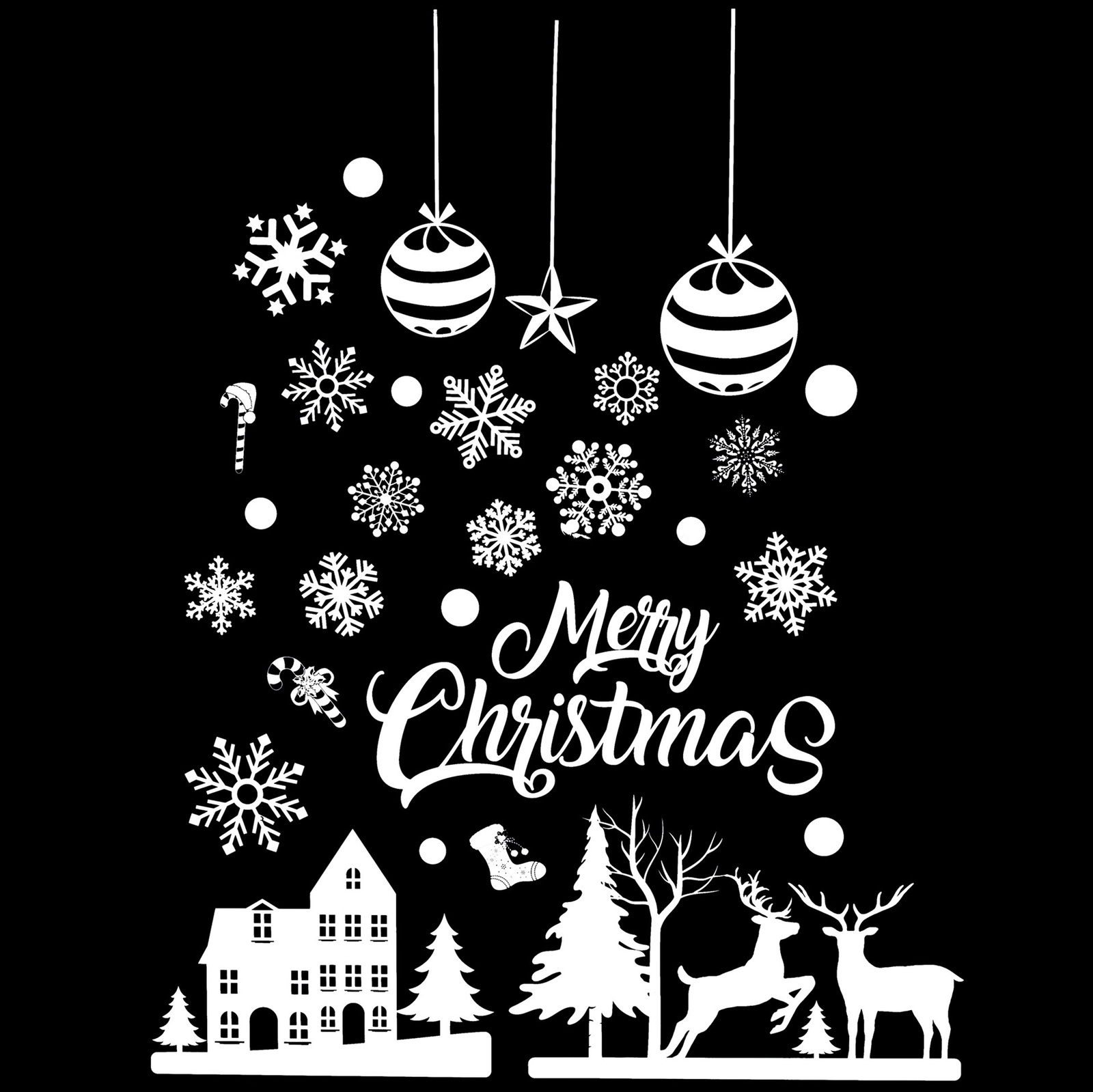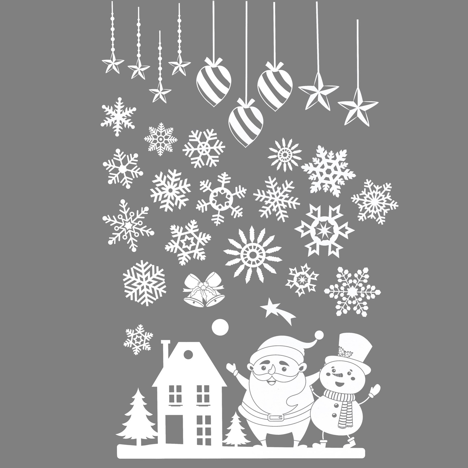 Biały zestaw 62 naklejek, który wprowadzi na okna świąteczny klimat