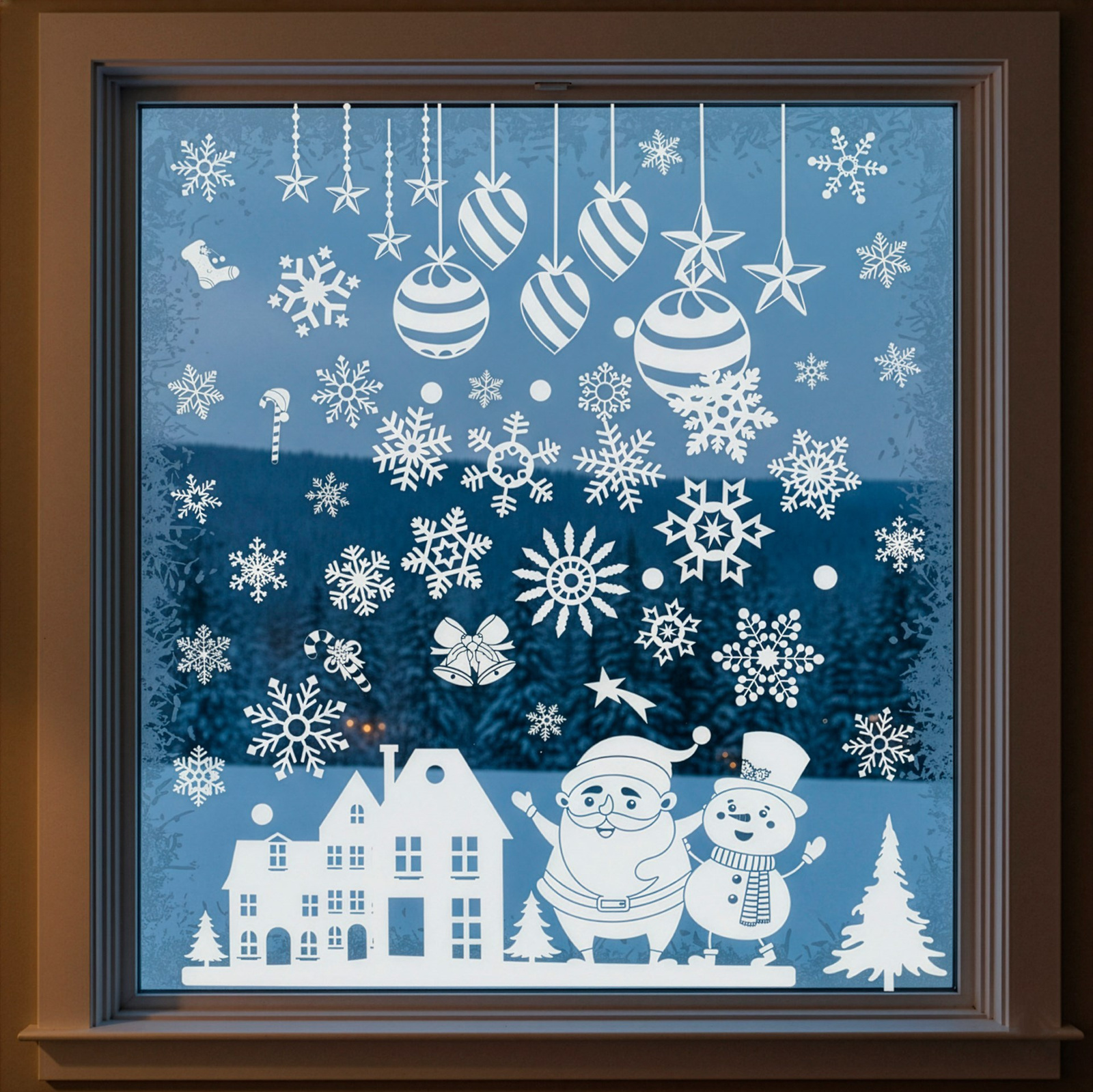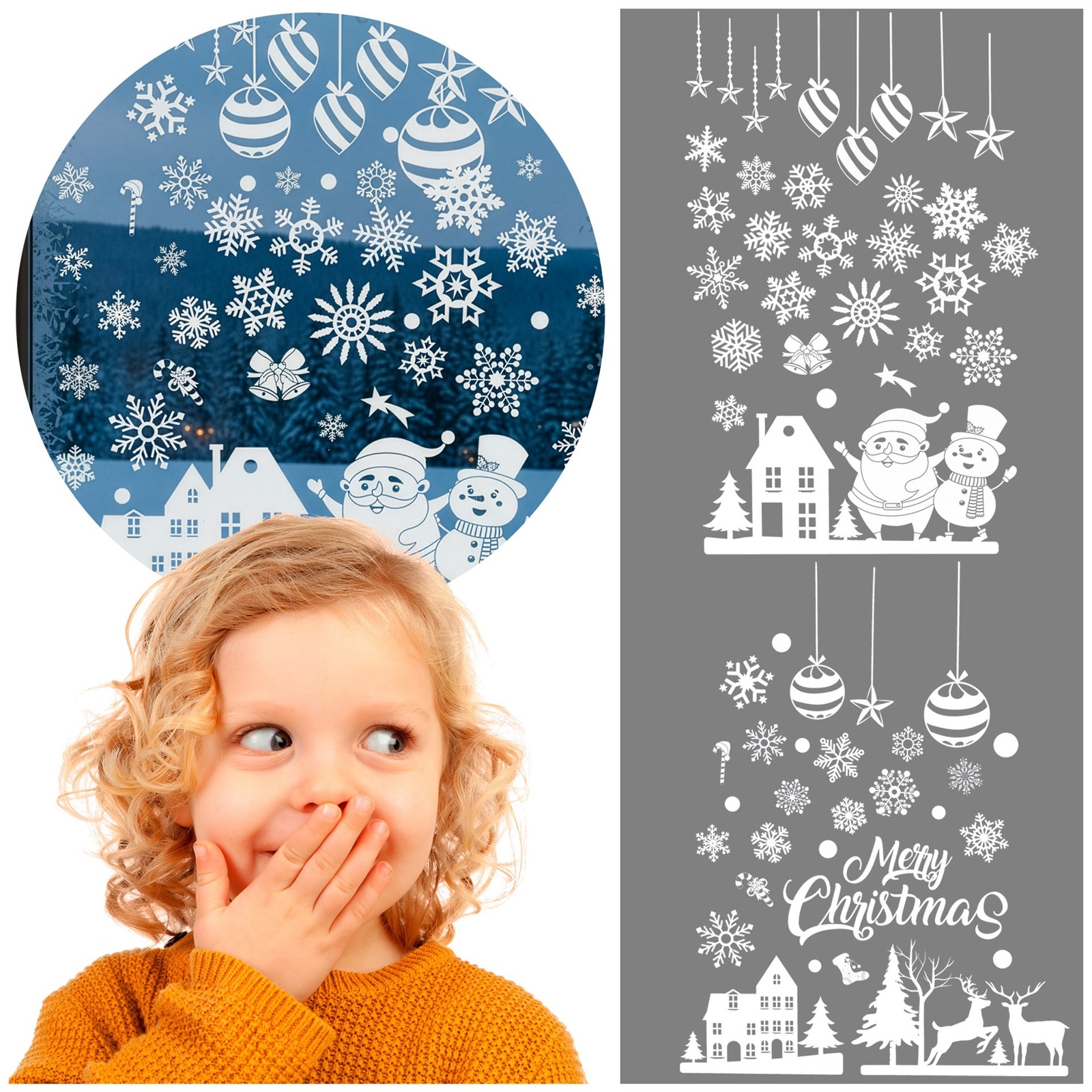 Przygotuj swoje wnętrze na świąteczny czas dzięki zestawowi 62 efektownych naklejek okiennych wykonanych z białej, transparentnej folii samoprzylepnej, która dodaje powierzchni subtelnego, zimowego charakteru. Dekoracje te idealnie sprawdzą się jako urozmaicenie świątecznej aranżacji. Zestaw zawiera różnorodne elementy, w tym śnieżynki, bombki, gwiazdy, postacie świąteczne: bałwanek, Mikołaj oraz motywy domków i drzewek, które można dowolnie łączyć, tworząc niepowtarzalne kompozycje. Folia samoprzylepna jest przyjemna w użytkowaniu naklejki łatwo przyklejają się do gładkich powierzchni, a ich usunięcie nie pozostawia śladów ani kleju. Transparentność materiału sprawia, że dekoracje wyglądają naturalnie, podkreślając zimową aurę za oknem. Naklejki są lekkie i elastyczne, dzięki czemu można je naklejać nie tylko na okna, ale również na lustra, szyby w drzwiach czy panele szklane. Biała kolorystyka dodaje elegancji, a jednocześnie zapewnia dobrą widoczność wzorów zarówno za dnia, jak i przy sztucznym oświetleniu wieczorem. Zestaw jest doskonałym rozwiązaniem dla osób, które lubią dostosowywać dekoracje do własnego stylu i kreatywnie podchodzą do aranżacji przestrzeni. Każdy element można dowolnie rozmieścić, tworząc temat przewodni lub mieszając motywy dla bardziej swobodnego efektu. Dzięki tak bogatemu zestawowi można ozdobić kilka okien, tworząc spójny świąteczny klimat w całym domu. Dekoracje te są świetnym sposobem na szybkie wprowadzenie magicznej atmosfery bez konieczności użycia dodatkowych akcesoriów. Pozwolą Ci ozdobić przestrzeń w kilka chwil i cieszyć się wyjątkowym nastrojem na długo.
