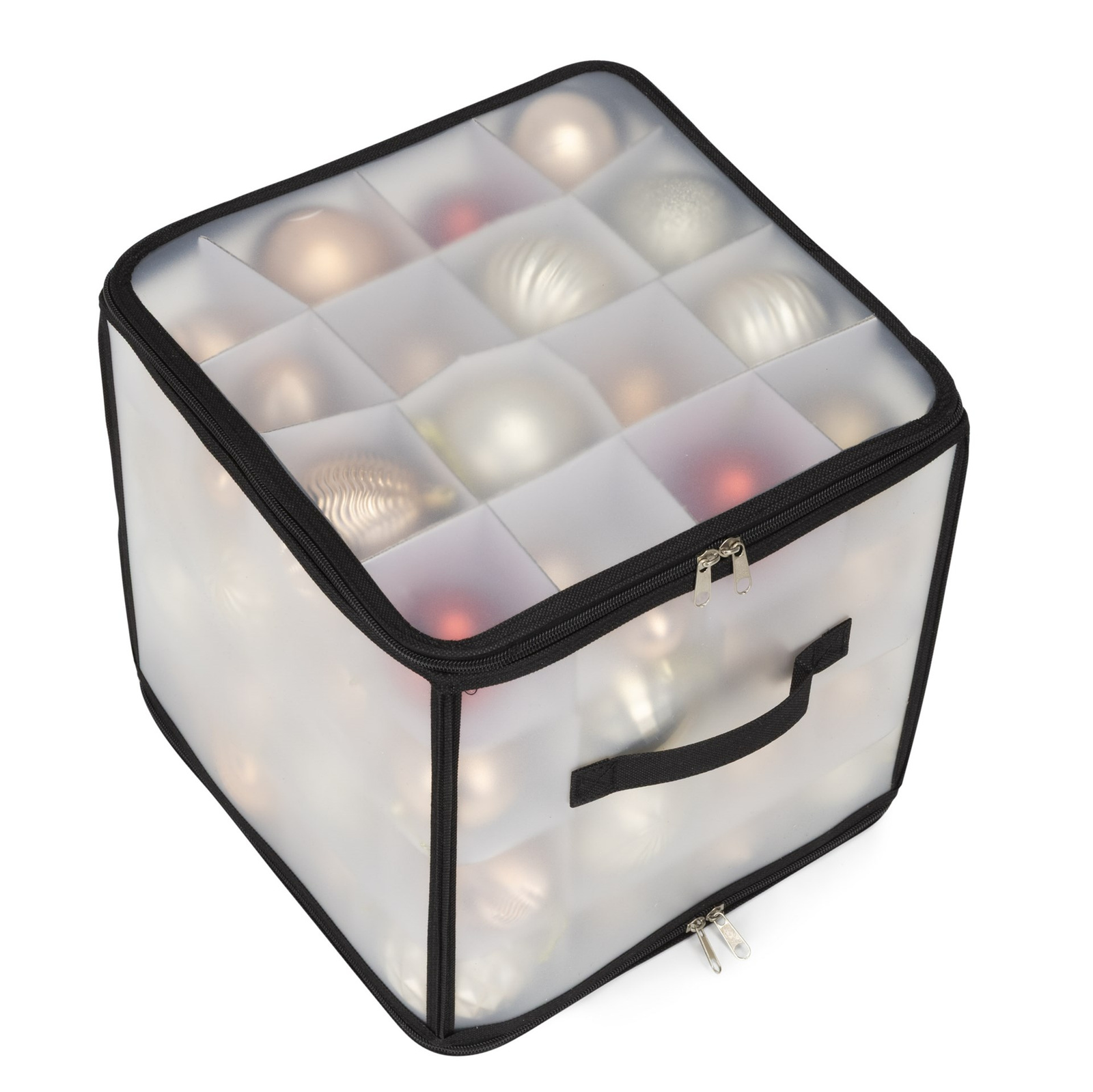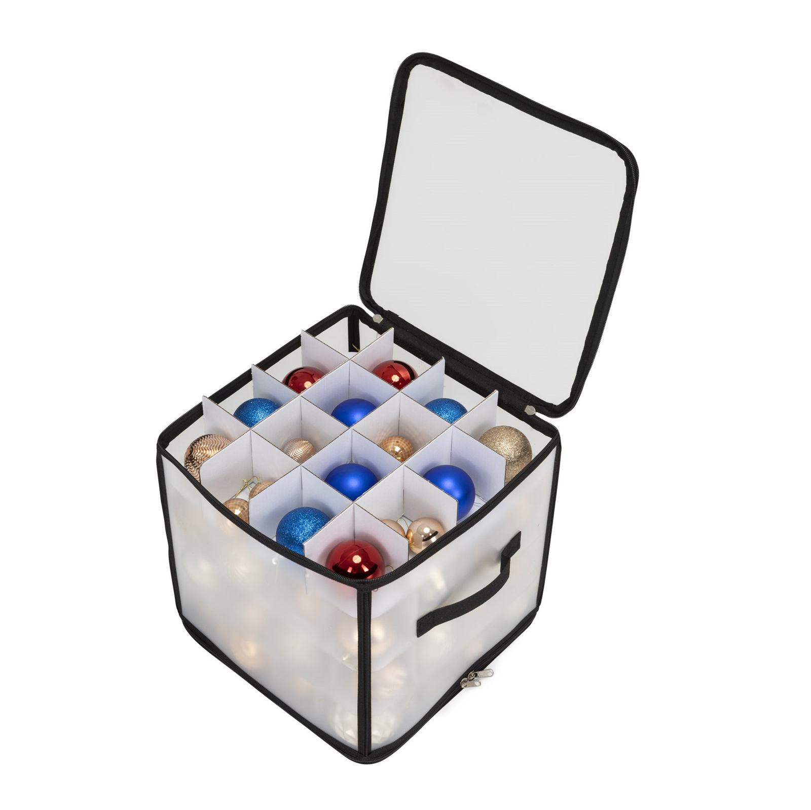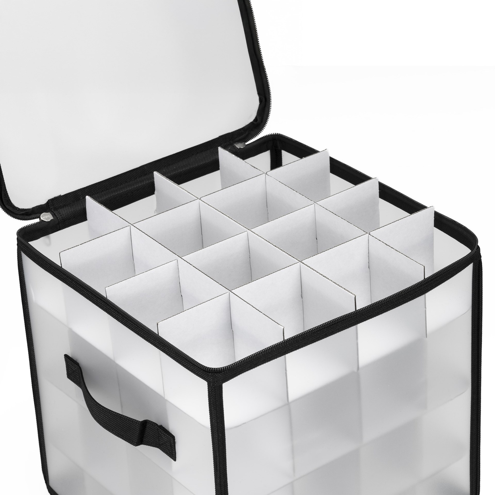 Organizer na dekoracje świateczne 64 przegródki, opakowanie, torba na bombki czarno-przeźroczysty