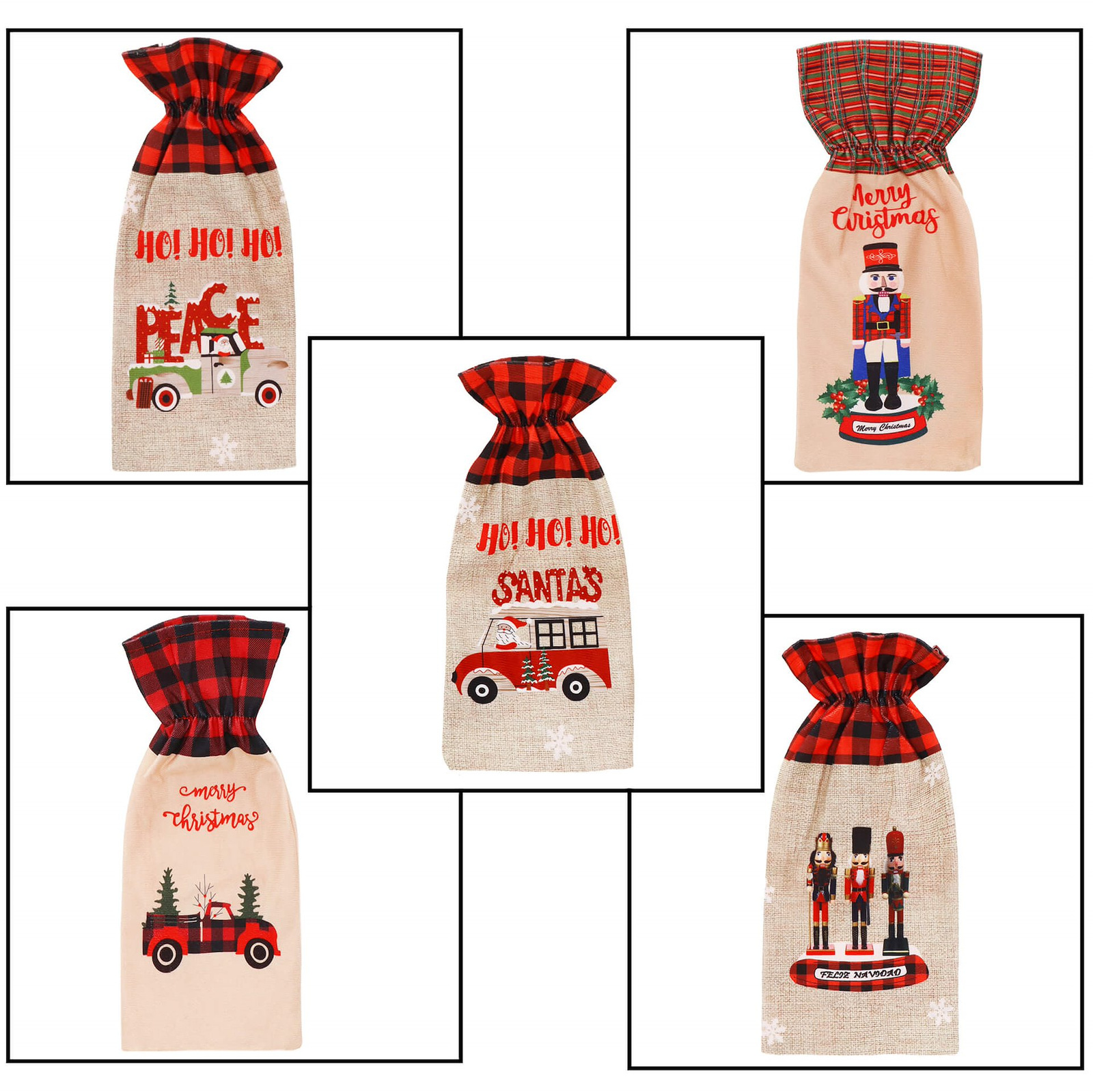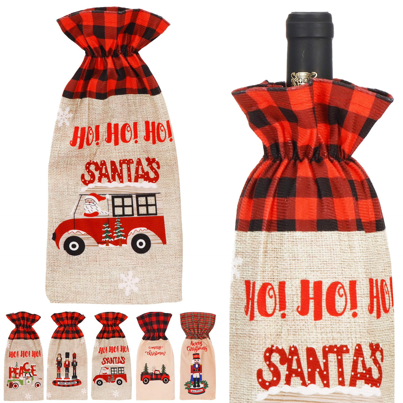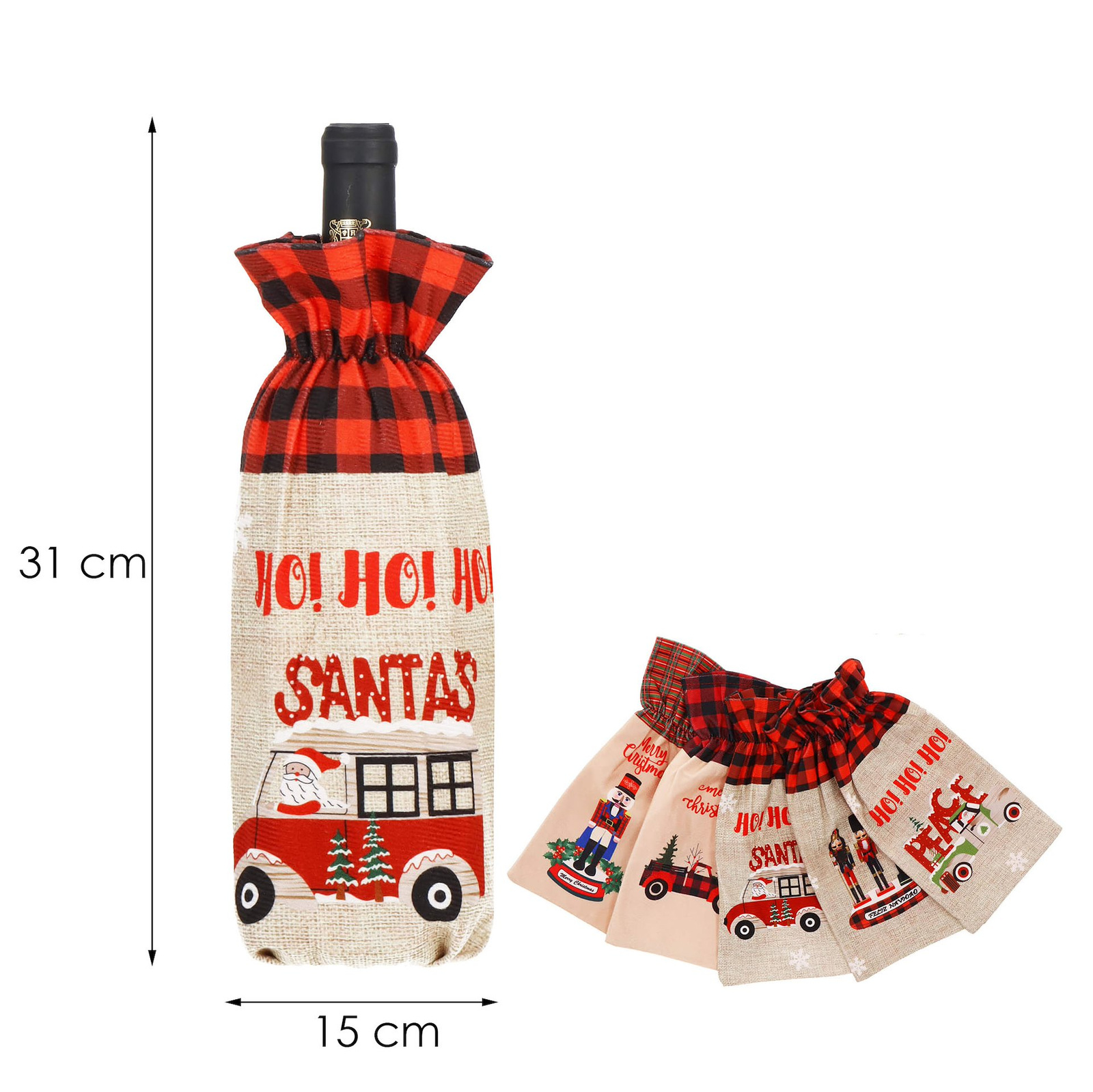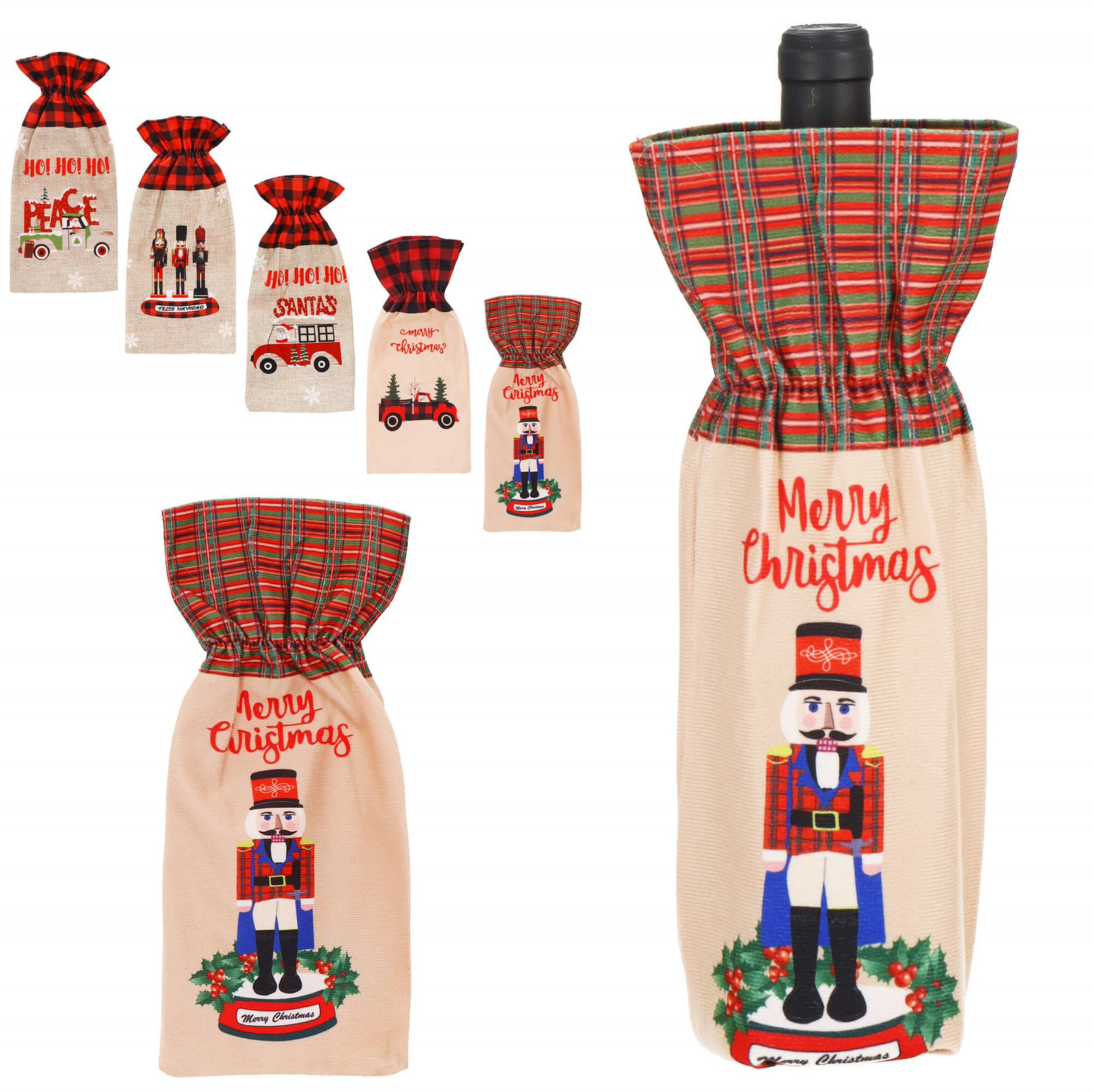 Pokrowiec na butelkę świąteczne etui na wino beżowo-czerowne