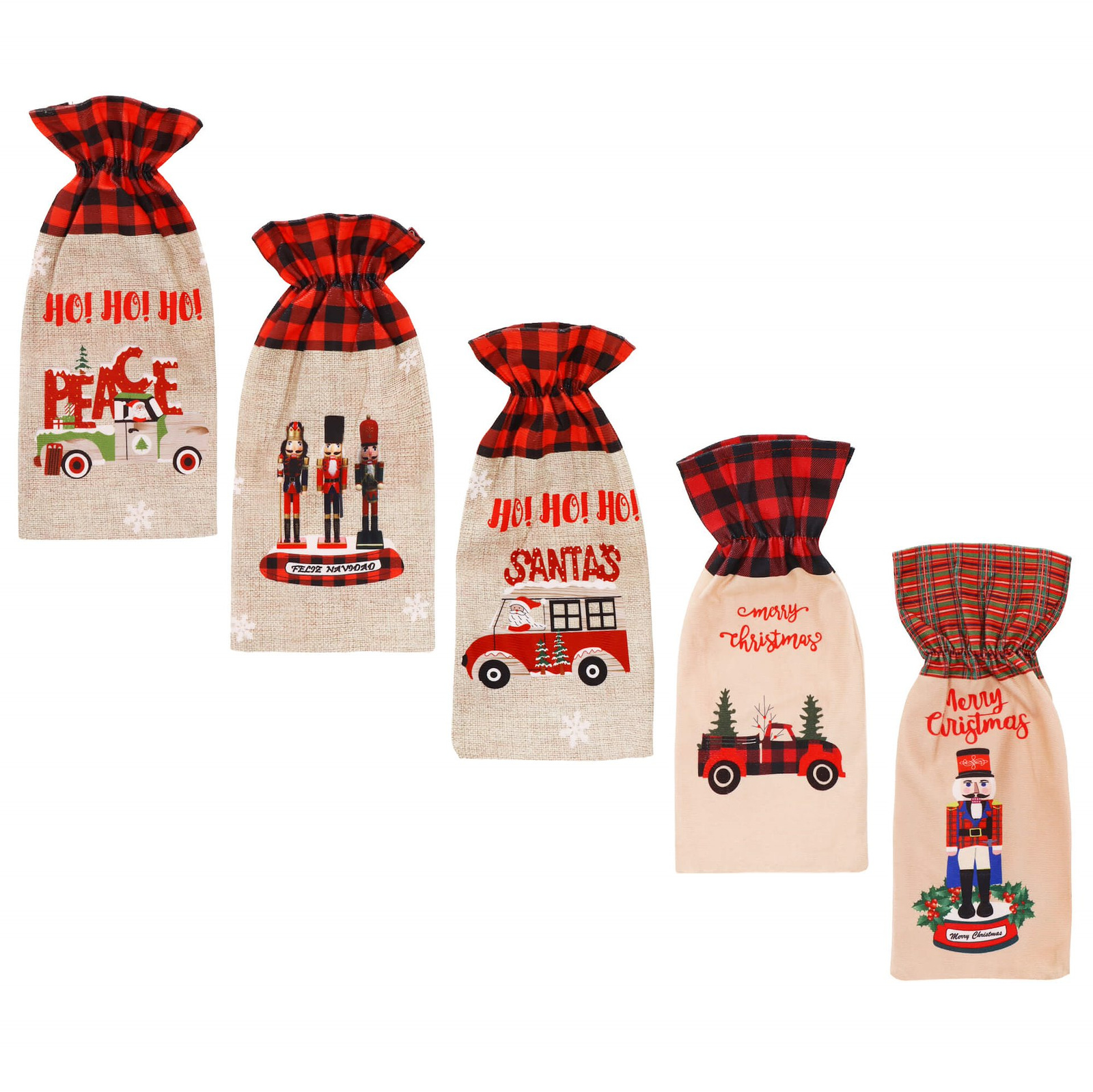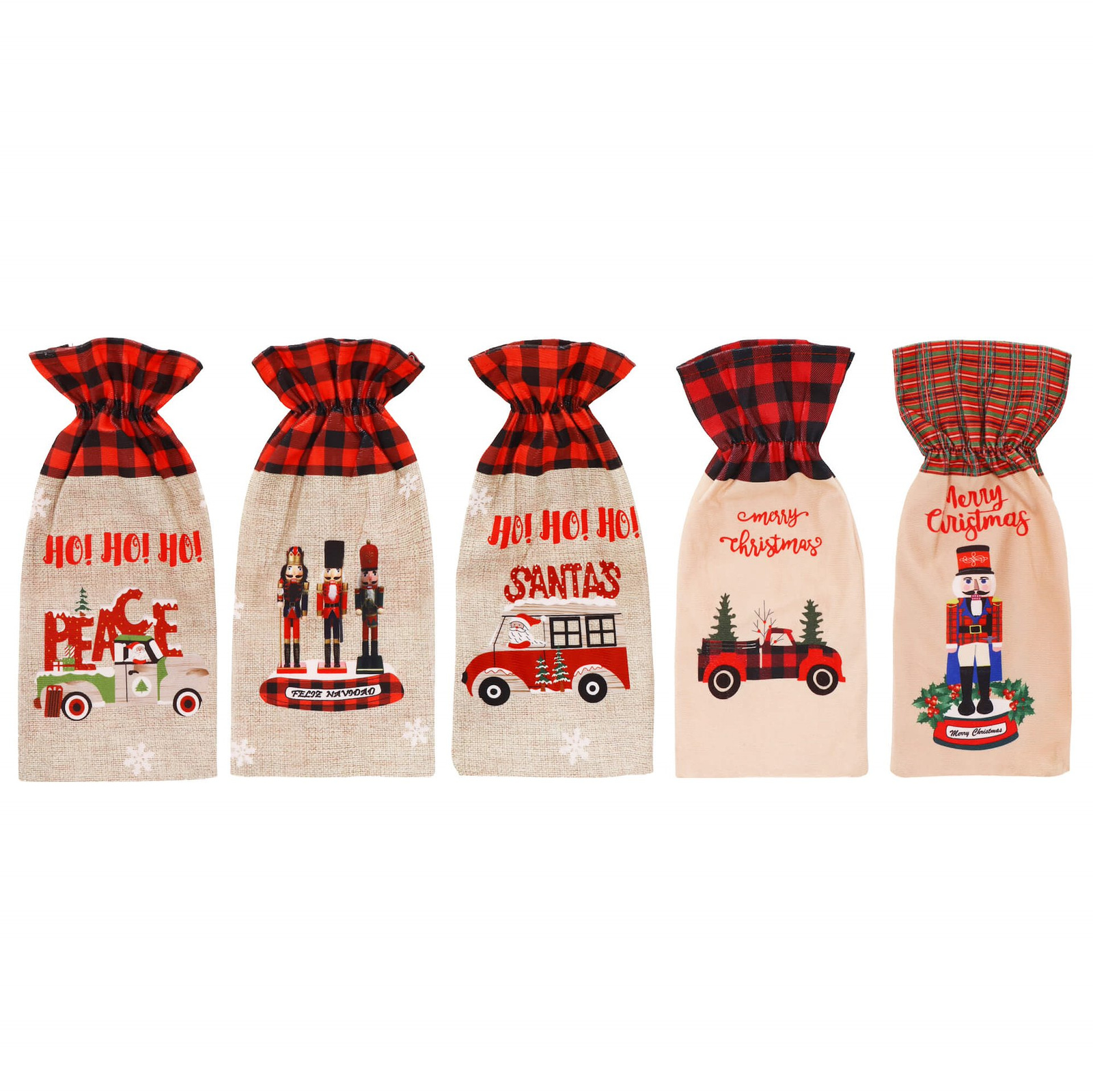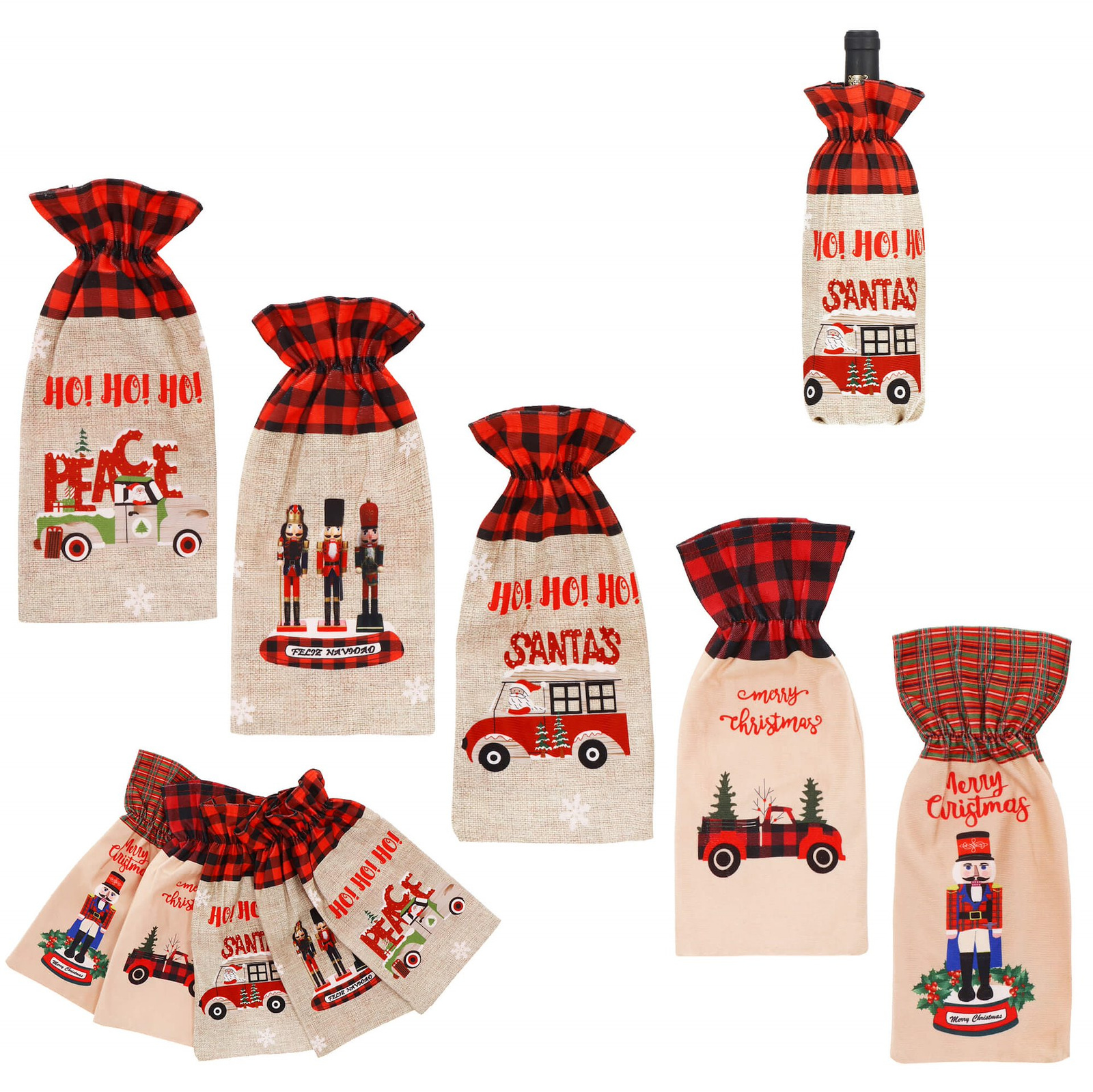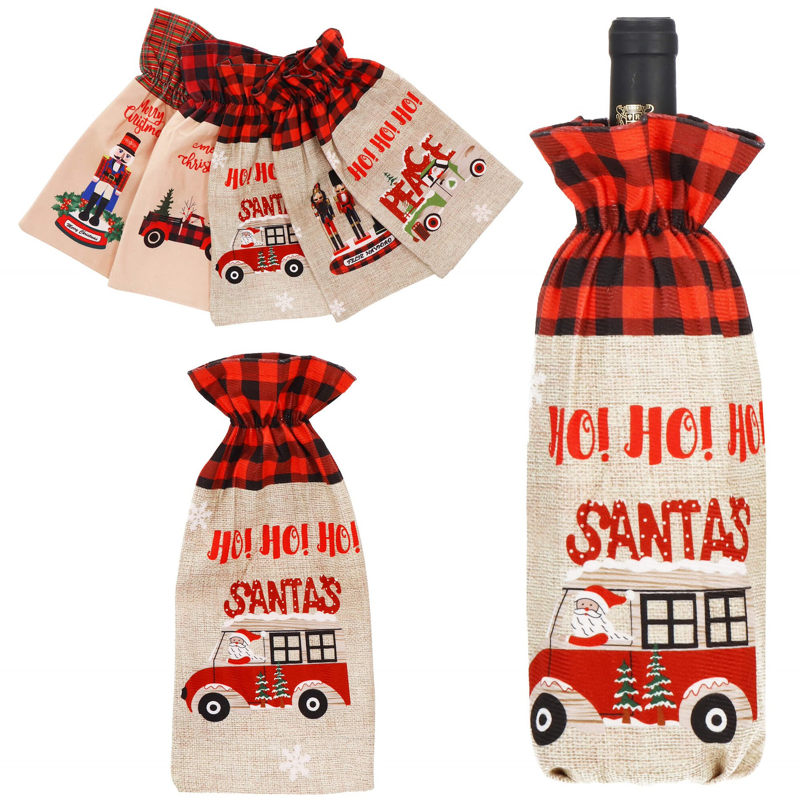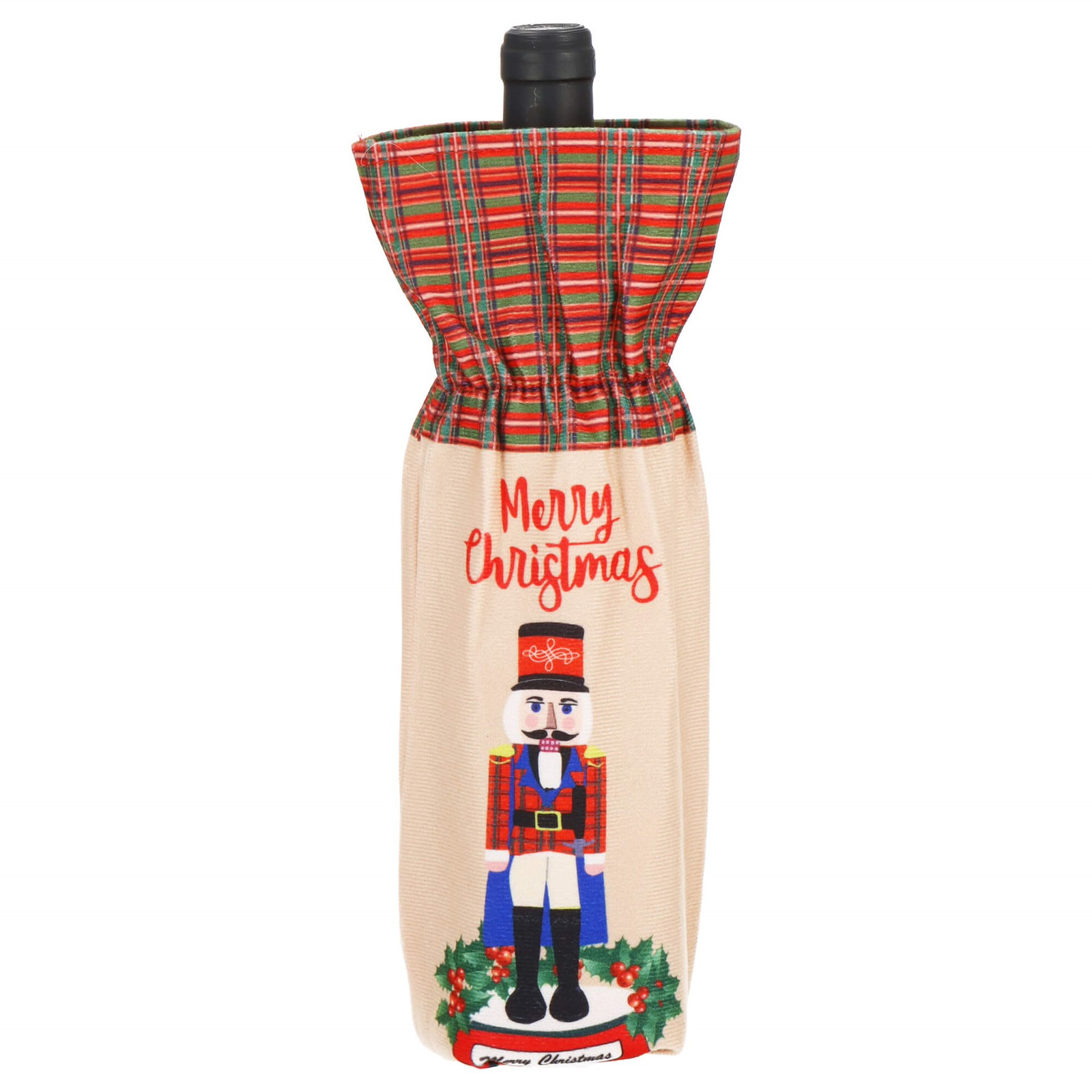 Pokrowiec na butelkę świąteczne etui na wino beżowo-czerowne