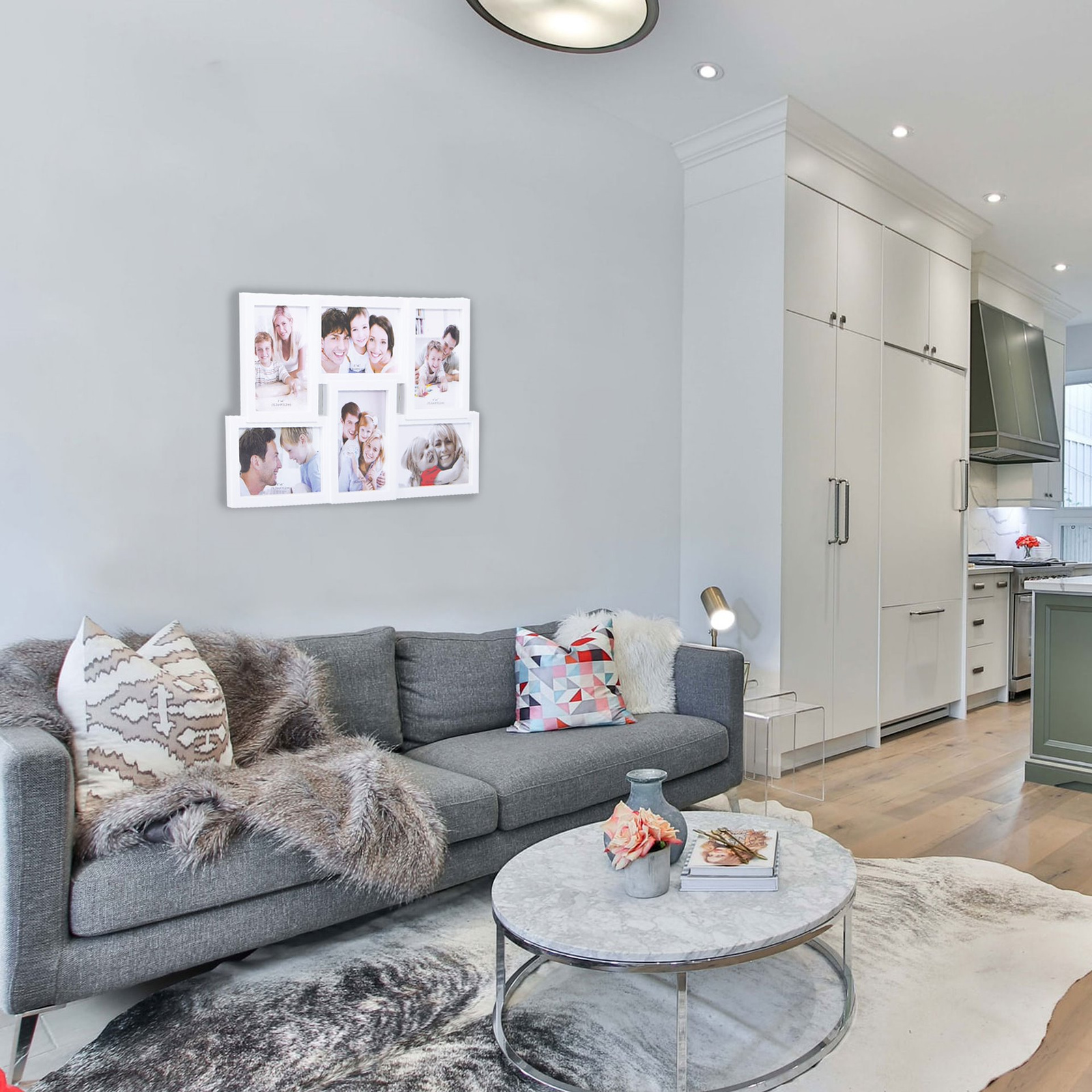 Biała multiramka marki Springos to świetny pomysł na ozdobienie wnętrza zdjęciami przynoszącymi miłe wspomnienia. Wyposażona jest ona w 6 połączonych ze sobą ramek, które tworzą efektowną kompozycję. Multiramka to szybki sposób na ekspozycję zdjęć, bez konieczności odpowiedniego rozmieszczanie każdej z ramek osobno.