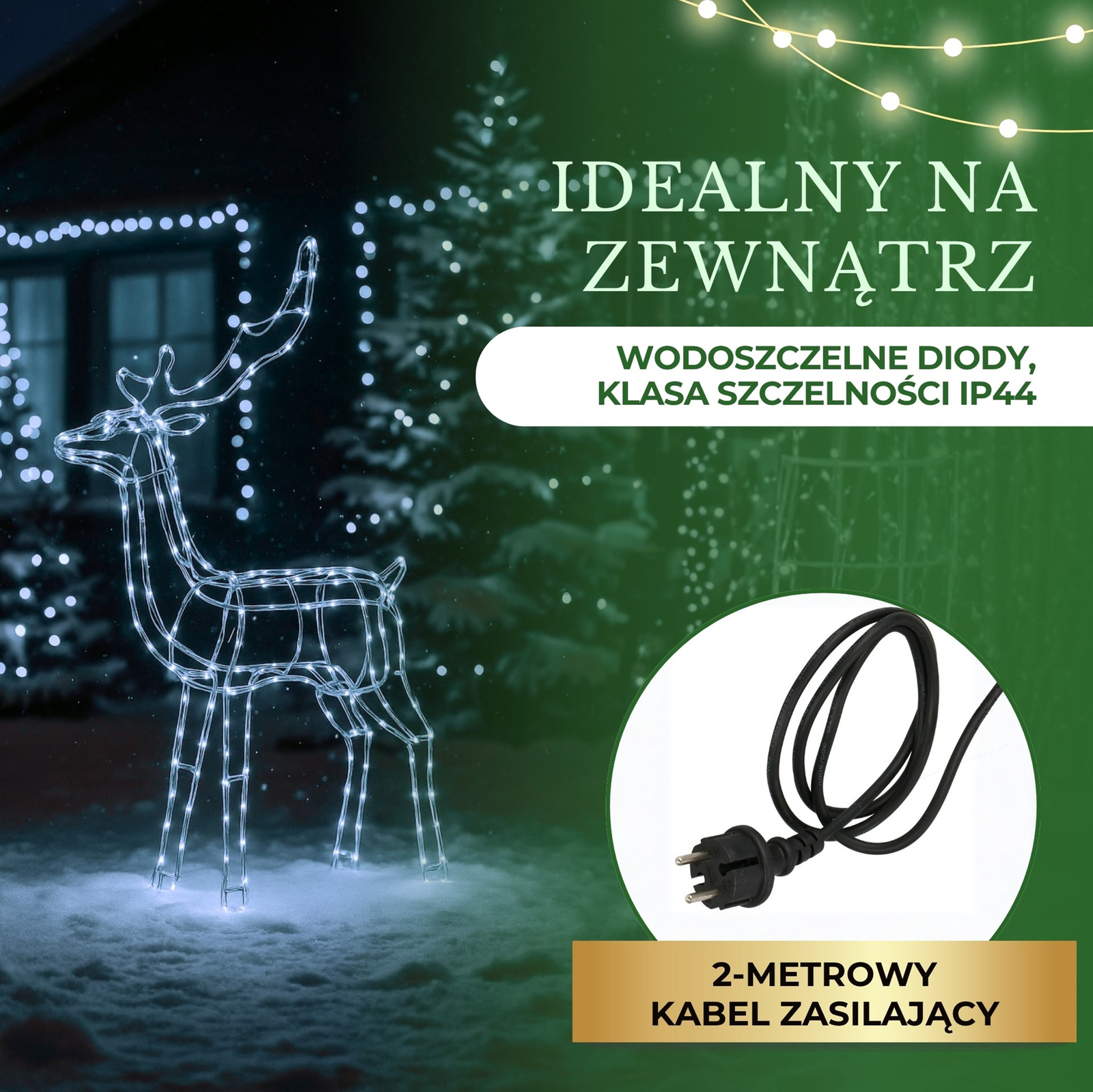Renifer Led 90 cm świąteczny, świetlna dekoracja do ogrodu biały zimny