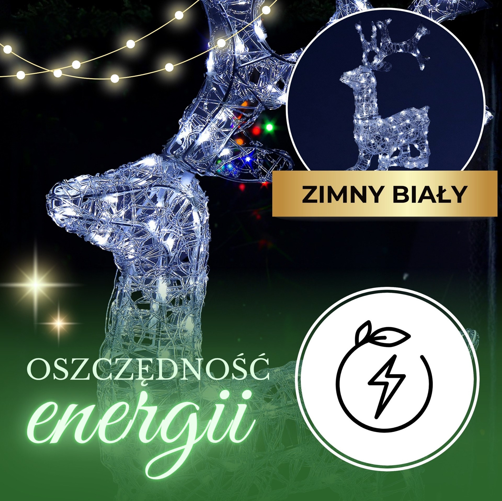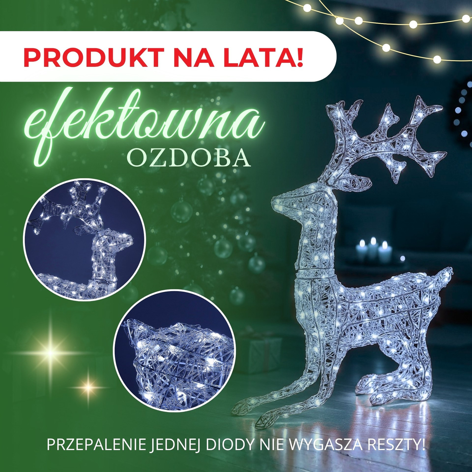 Renifer Led świąteczny 130 LED świetlna dekoracja biały zimny