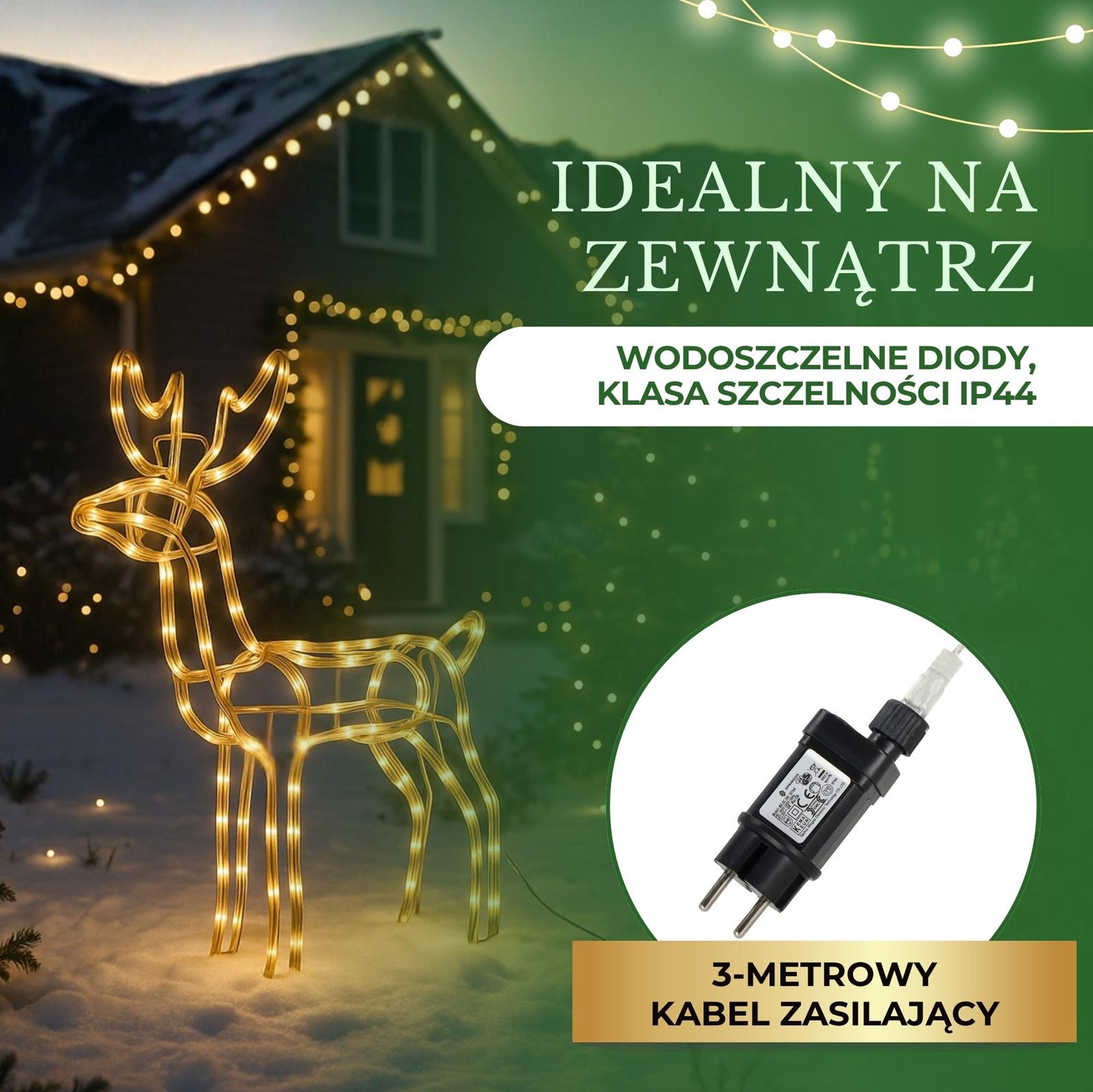 Odkryj magię świąt z naszym reniferem świetlnym Springos®! Ten unikalny produkt to coś więcej niż zwykła dekoracja. Wyposażony w energooszczędne diody LED, renifer gwarantuje nie tylko wysoką efektywność świecenia, ale i niezwykłą trwałość. Idealnie sprawdzi się zarówno w domowym zaciszu, jak i jako ozdoba ogrodowa, tworząc wyjątkową atmosferę. Nasz produkt LED to doskonały wybór dla każdego, kto pragnie nadać swojemu otoczeniu świąteczny charakter. Dzięki zasilaniu sieciowemu i klasie IP44, jest bezpieczny i wygodny w użytkowaniu zarówno wewnątrz, jak i na zewnątrz. Światło o ciepłym, białym kolorze tworzy przytulną i magiczną atmosferę. Długi kabel zasilający pozwala na umieszczenie produktu w dowolnie wybranym przez siebie miejscu. Co ważne, przepalenie jednej diody nie wpływa na działanie całego zestawu, dlatego renifer posłuży przez wiele sezonów, zachwycając domowników i gości.