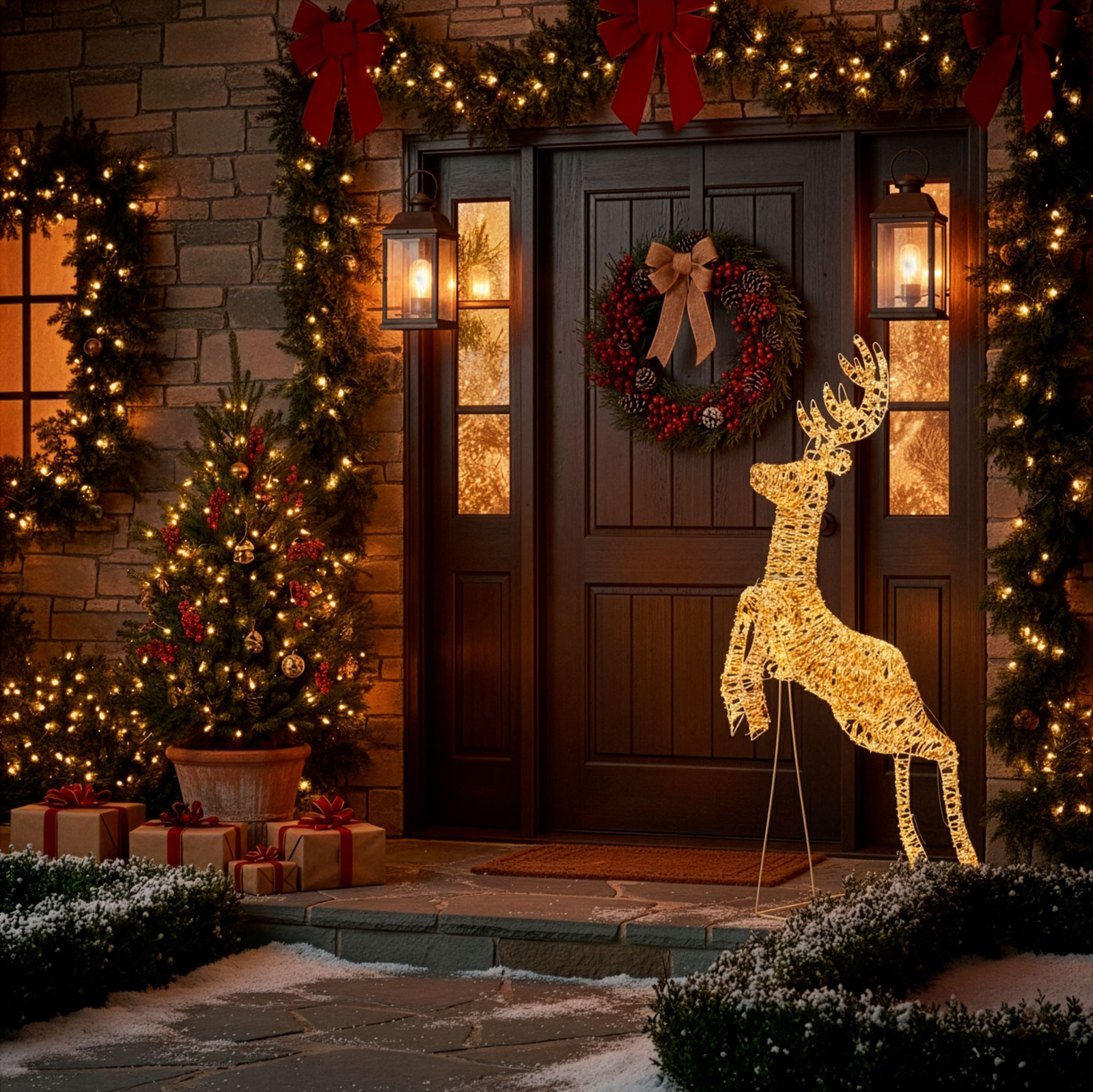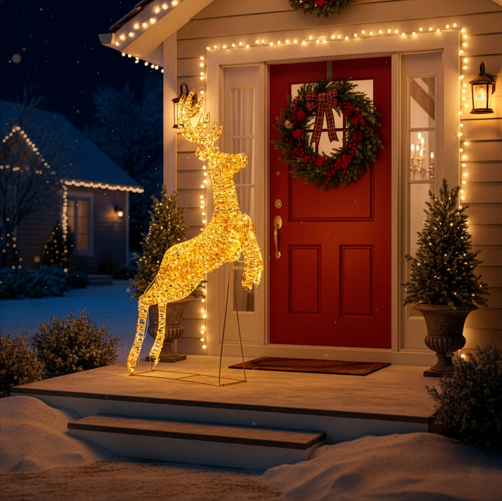 Renifer świąteczny z 120 diodami LED, wysokość 145 cm - efektowna iluminacja na zewnątrz