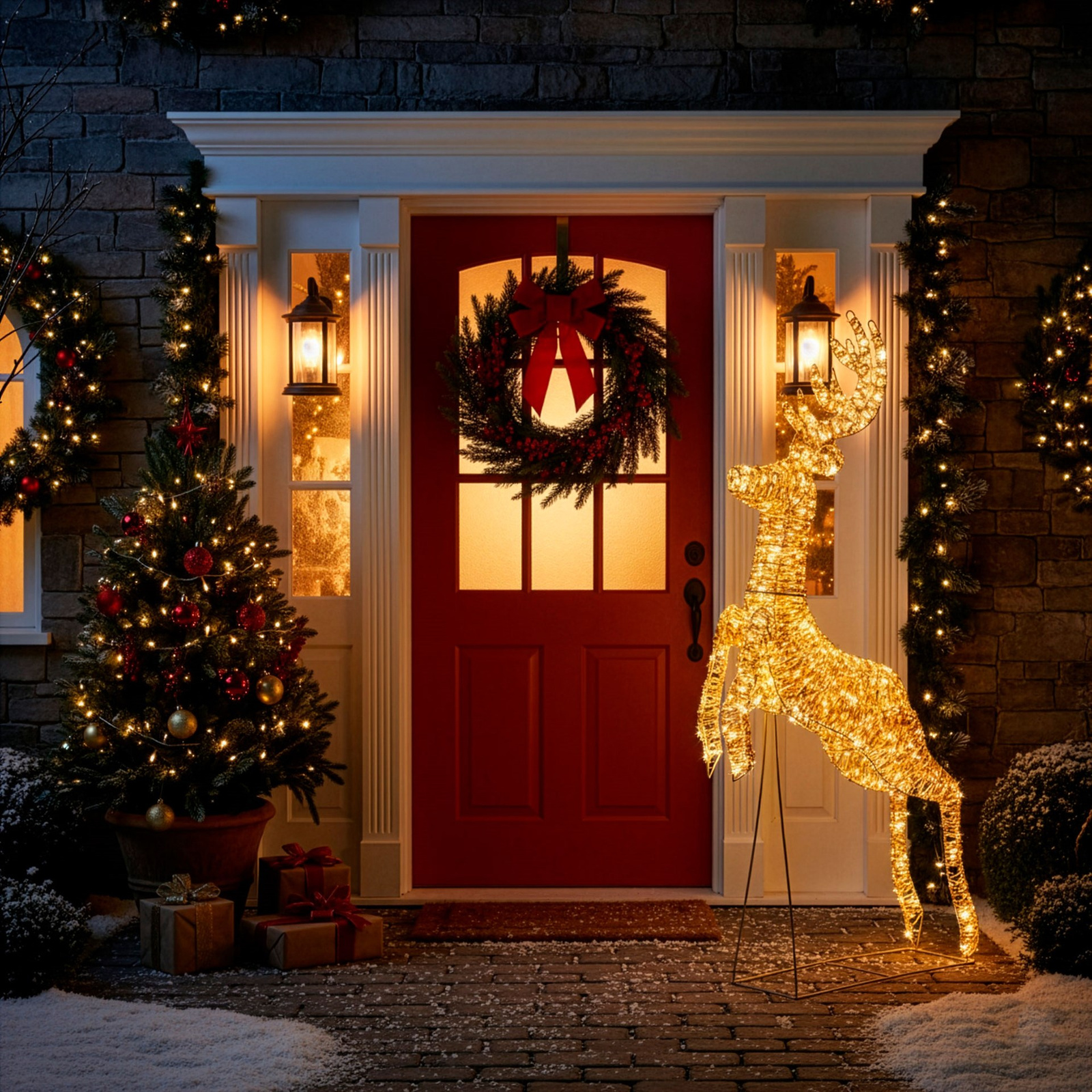 Wprowadź do swojej zimowej aranżacji efektowny akcent w postaci renifera świetlnego o wysokości 145 cm, wyposażonego w 120 ciepłych diod LED, które tworzą wyjątkowo przyjemny, miękki blask. Ta dekoracja świetlna łączy w sobie elegancję smukłej sylwetki renifera z nastrojowym światłem, które pięknie prezentuje się w zimowej scenerii. Dzięki starannemu wykonaniu każdy element figury przewodzi światło w sposób harmonijny, tworząc spójny i estetyczny efekt. Konstrukcja renifera jest lekka, a jednocześnie stabilna, co ułatwia jego ustawienie w wybranym miejscu. Ciepły odcień światła LED nadaje całej dekoracji przytulności i charakteru, sprawiając, że idealnie wtapia się w zimowy krajobraz. Diody LED są rozmieszczone tak, aby podkreślić kontury i nadać całości eleganckiej wyrazistości. Przewód zasilający umożliwia swobodne dopasowanie lokalizacji dekoracji, co daje wiele możliwości aranżacyjnych. Renifer, dzięki swojej wysokości, jest widoczny z daleka i tworzy efekt przestrzennego, świetlnego akcentu. To dekoracja, która potrafi zbudować świąteczny nastrój już od pierwszego spojrzenia. Energooszczędne diody sprawiają, że można cieszyć się iluminacją przez długi czas, bez obaw o zużycie prądu. Renifer świetlny pozwala odmienić przestrzeń, nadając jej ciepło, spokojny blask i nutę świątecznej magii. Dzięki tej dekoracji zimowe wieczory zyskują zupełnie nowy wymiar, pełen światła i nastrojowej atmosfery.