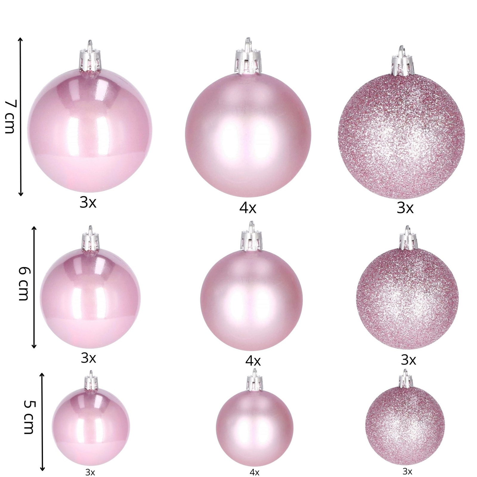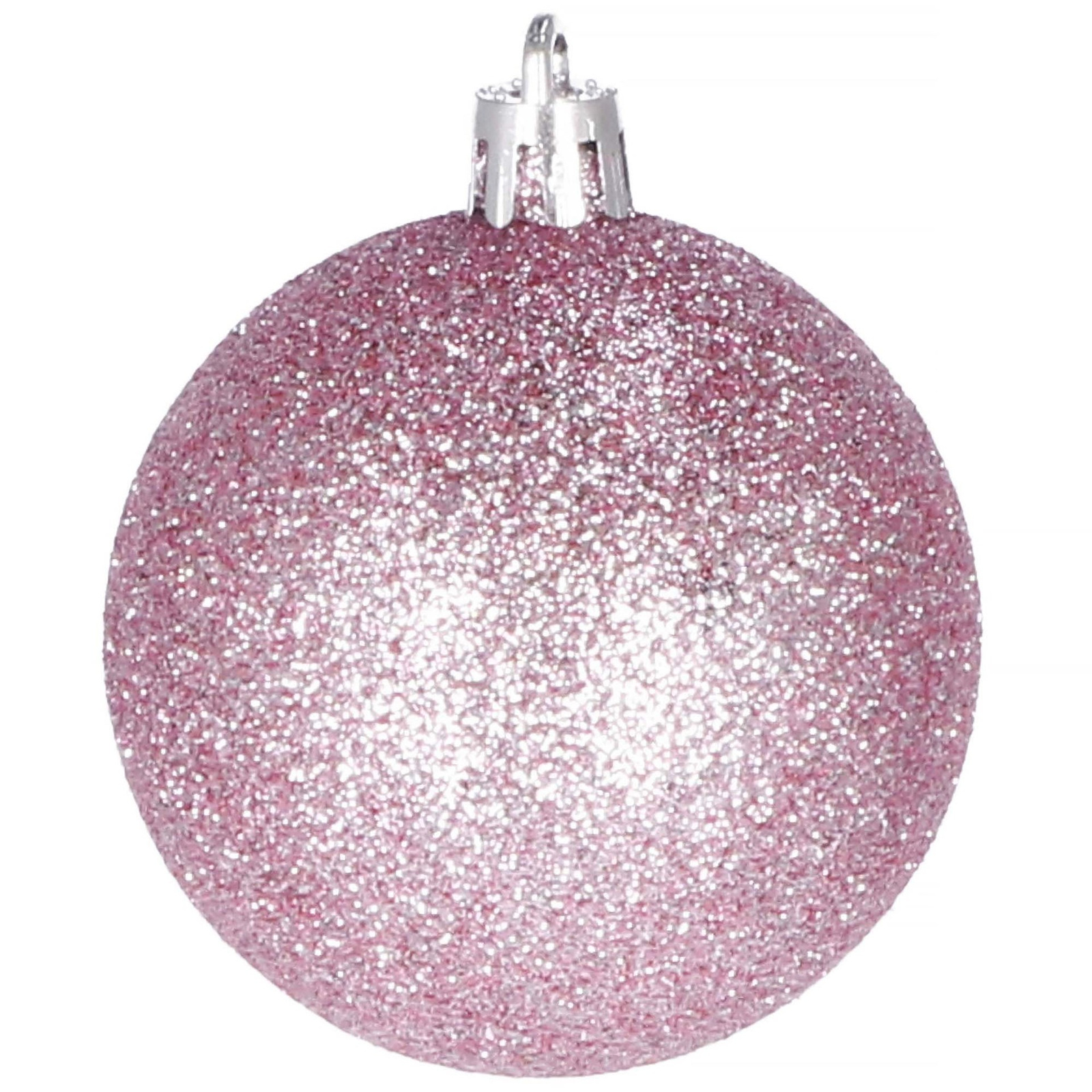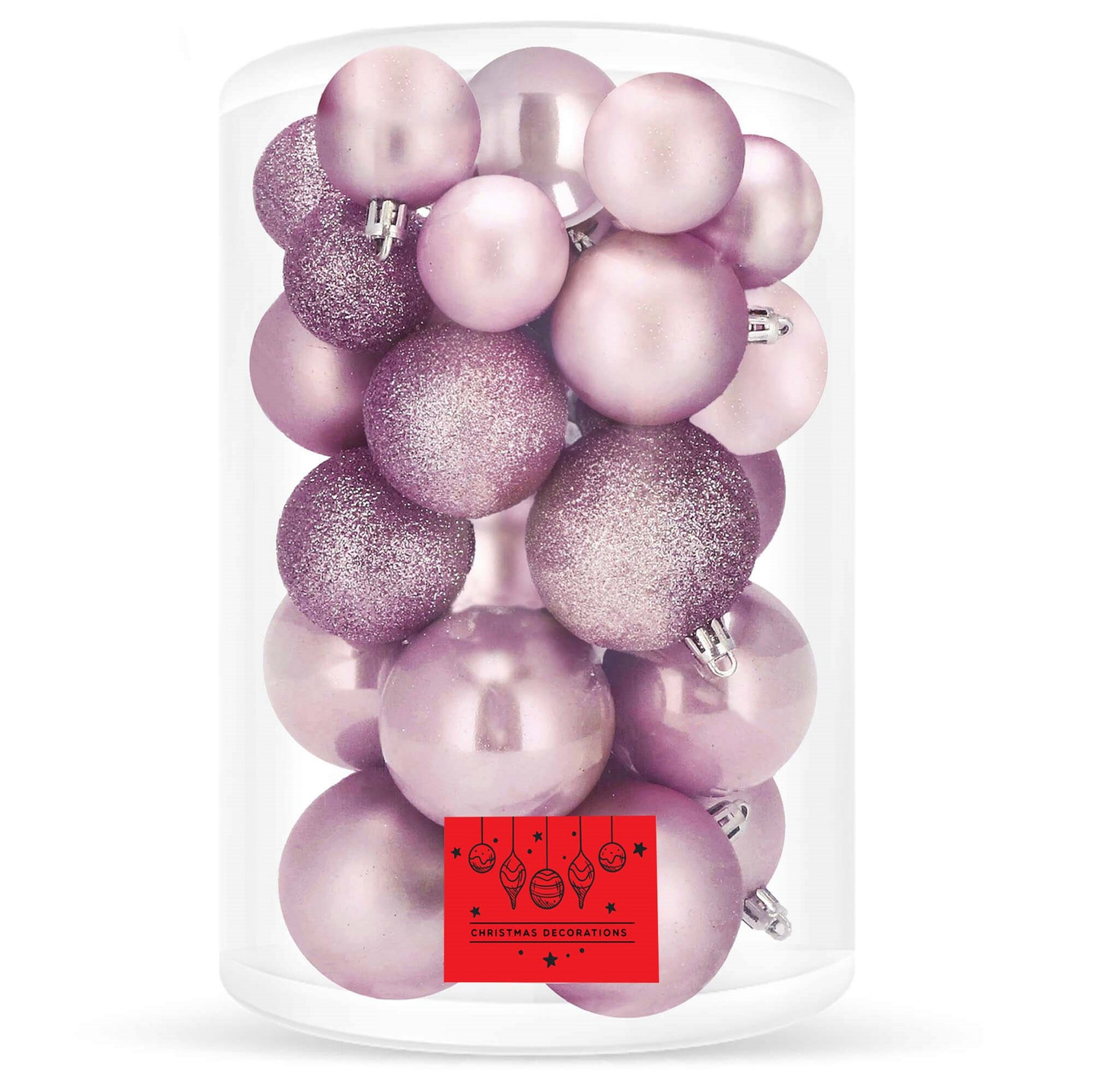 Różowe bombki choinkowe 30 szt. ozdoby świąteczne deroracje brokatowe nietłukące mix