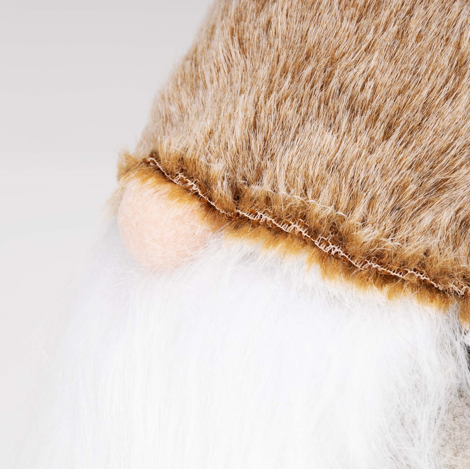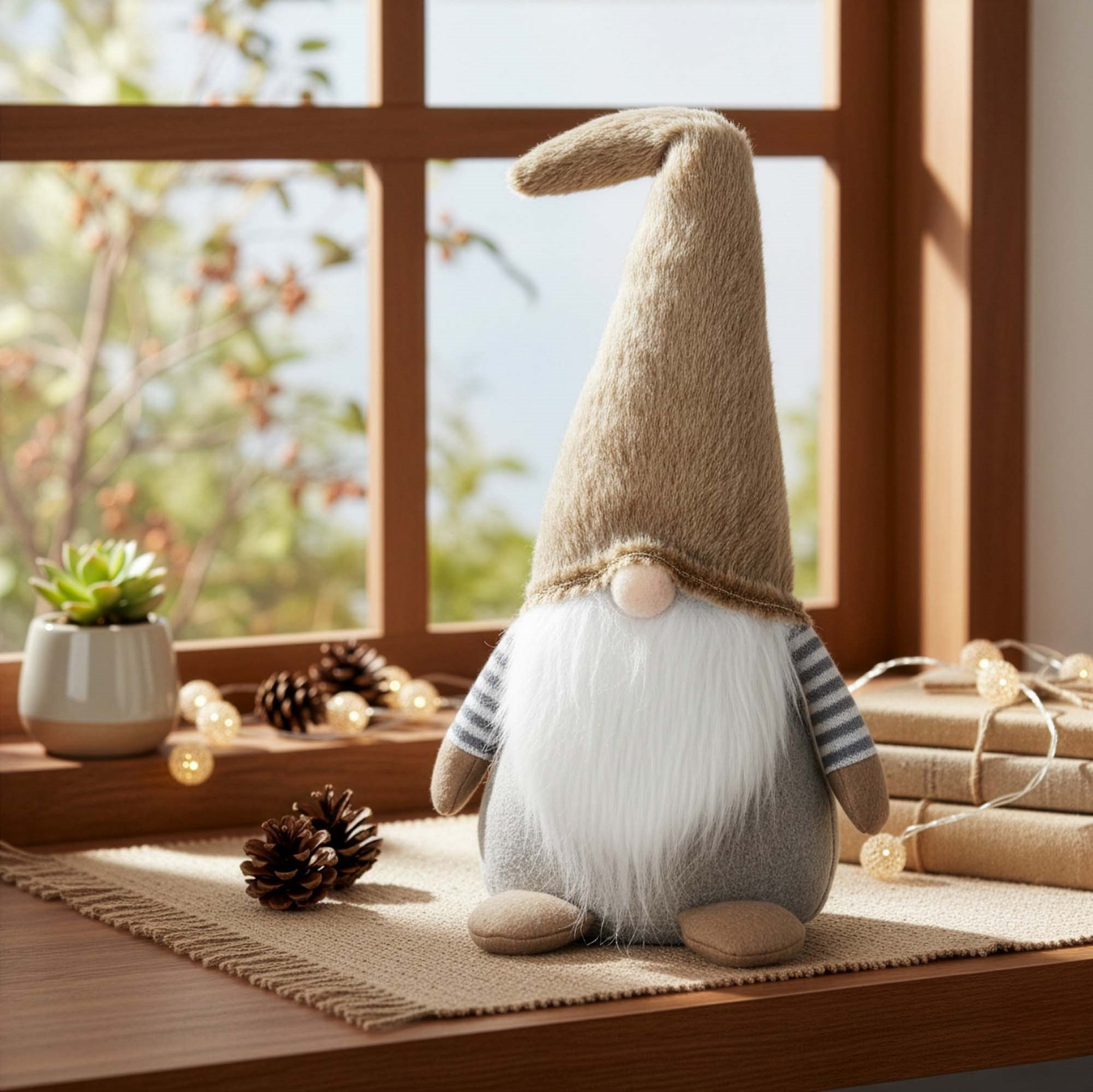 Ten wyjątkowy krasnal świąteczny został wykonany z trwałych materiałów, w tym z bawełny, co zapewnia wytrzymałość i miękkość w dotyku. Dzięki czapce z wbudowanym drucikiem możesz dowolnie formować jej kształt, nadając skrzatowi indywidualny charakter – raz może mieć zabawnie przekrzywioną czapkę, innym razem wyprostowaną do góry. Figurka wyróżnia się starannym wykończeniem i stonowaną kolorystyką, która świetnie komponuje się z nowoczesnymi oraz klasycznymi aranżacjami świątecznymi. Gnom doskonale nadaje się do ustawienia na półce, komodzie lub pod choinką, stanowiąc subtelną, ale efektowną ozdobę wnętrza. Dzięki stabilnej podstawie figurka pewnie stoi na powierzchni, co pozwala ustawić ją w dowolnym miejscu. To dekoracja, która wniesie do domu przytulność i świąteczny urok, a jednocześnie będzie świetnym pomysłem na prezent.