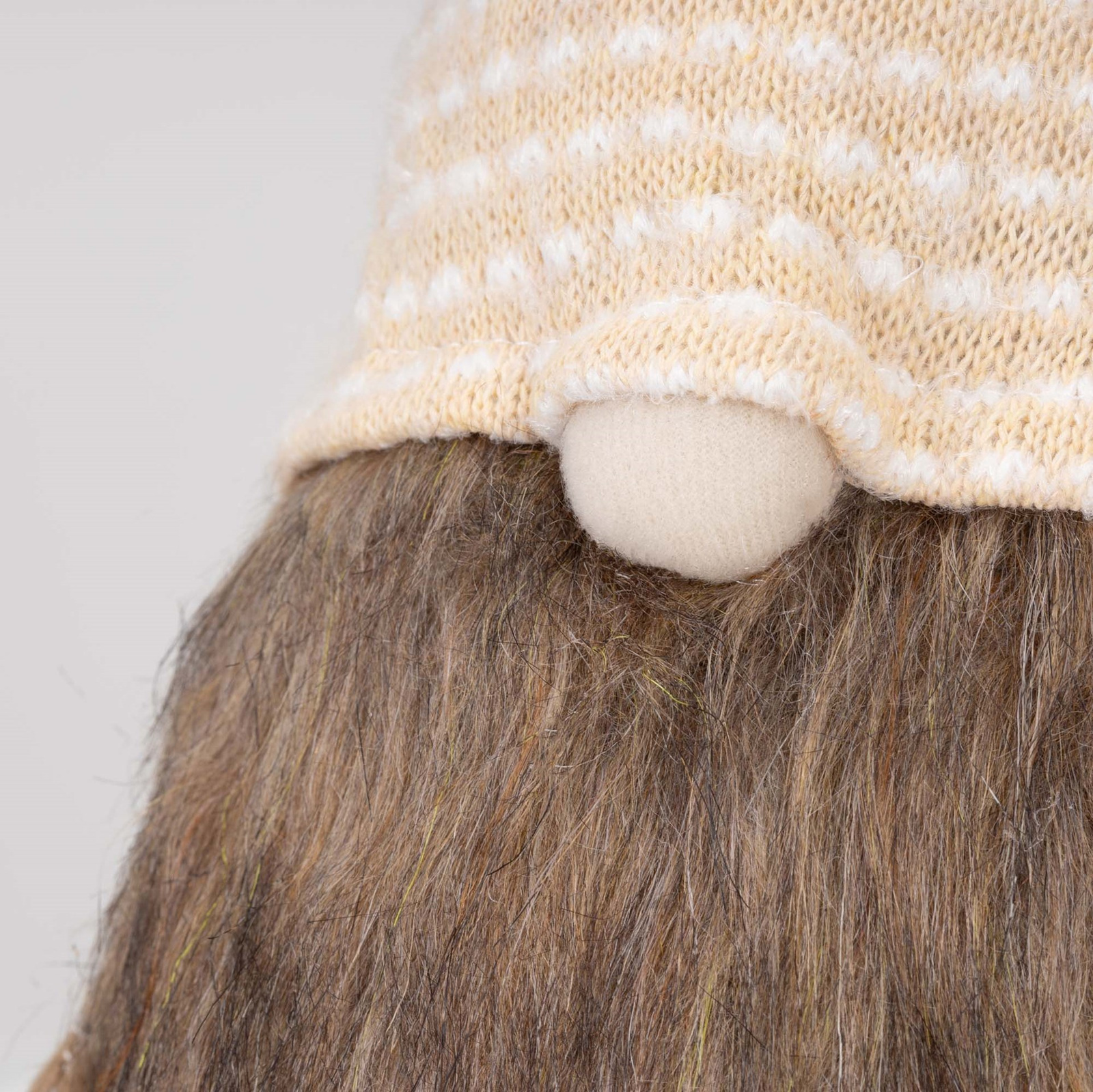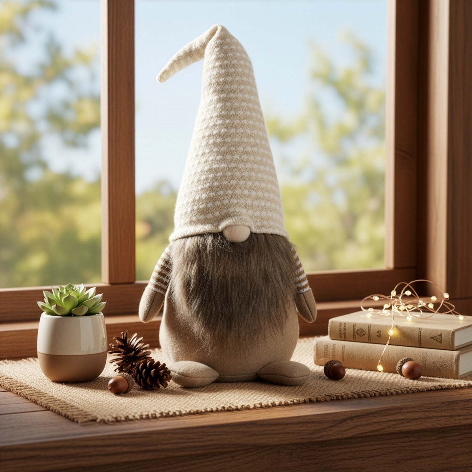 Ten wyjątkowy krasnal świąteczny został wykonany z trwałych materiałów, w tym z bawełny, co zapewnia wytrzymałość i miękkość w dotyku. Dzięki czapce z wbudowanym drucikiem możesz dowolnie formować jej kształt, nadając skrzatowi indywidualny charakter – raz może mieć zabawnie przekrzywioną czapkę, innym razem wyprostowaną do góry. Figurka wyróżnia się starannym wykończeniem i stonowaną kolorystyką, która świetnie komponuje się z nowoczesnymi oraz klasycznymi aranżacjami świątecznymi. Gnom doskonale nadaje się do ustawienia na półce, komodzie lub pod choinką, stanowiąc subtelną, ale efektowną ozdobę wnętrza. Dzięki stabilnej podstawie figurka pewnie stoi na powierzchni, co pozwala ustawić ją w dowolnym miejscu. To dekoracja, która wniesie do domu przytulność i świąteczny urok, a jednocześnie będzie świetnym pomysłem na prezent.