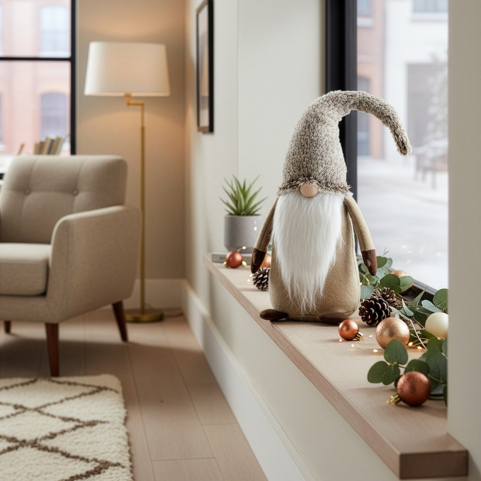 Świąteczny gnom 60 cm to dekoracja, która w subtelny sposób odmienia przestrzeń i nadaje jej wyjątkowego klimatu. Wymiary sprawią, że łatwo go ustawić nawet w mniejszych pomieszczeniach. Wykonany z połączenia poliestru i bawełny, posiada miłą w dotyku powierzchnię i solidną konstrukcję idealną na wiele sezonów. Kolory w tonacjach kremu, bieli, szarości i brązu sprawiają, że gnom wpisuje się w różnorodne kolekcje świątecznych ozdób. Czapka z drucikiem pozwala na lekką modyfikację ustawienia można ją delikatnie przechylić, co dodaje figurce ekspresji i zabawnego charakteru. Gnom może stanąć przy choince, na komodzie, w holu lub jako część stołowej dekoracji wszędzie wprowadzi odrobinę magii i świątecznego uroku. To także świetny pomysł na drobny, ale elegancki prezent na Mikołajki, Święta lub jako część upominkowego zestawu. Figurka zachęca do wspólnego tworzenia dekoracji rodzinnych dzieci mogą pomagać w ustawianiu gnoma obok innych ozdób i lampek. Prosta forma sprawia, że gnom nie dominuje przestrzeni, lecz subtelnie wkomponowuje się i tworzy atmosferę oczekiwania na Święta. To dekoracja, która oprócz estetyki niesie ze sobą radość i przyjemność z przygotowań do świąt. Łatwa w ustawieniu, zachwycająca i gotowa do wprowadzenia do wnętrza od razu po wyjęciu z opakowania. Gnom 60 cm to wybór dla tych, którzy pragną, aby ich dom odzwierciedlał ducha świąt w prosty, ale efektowny sposób.