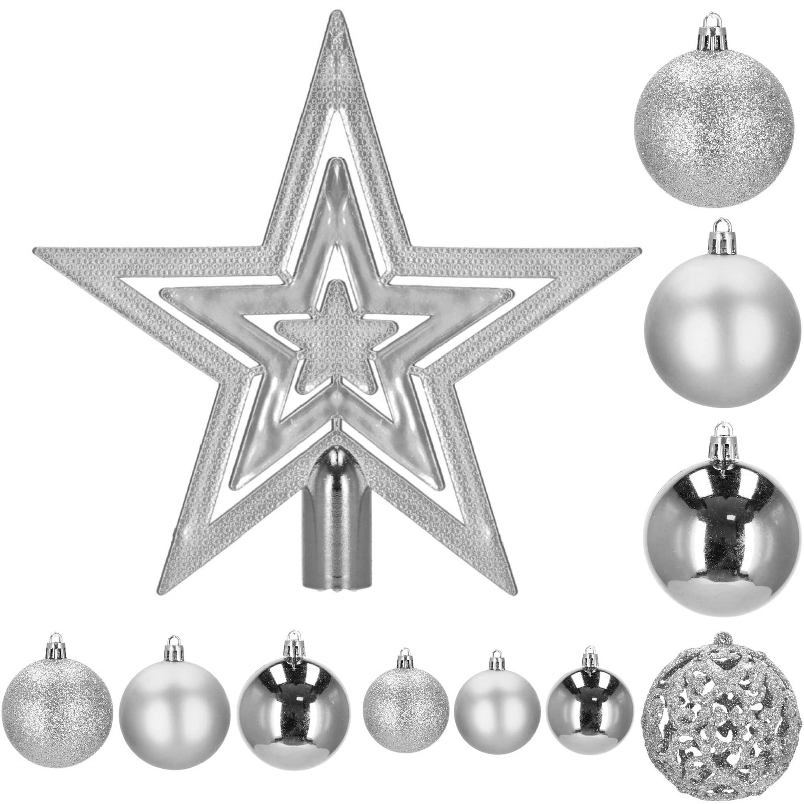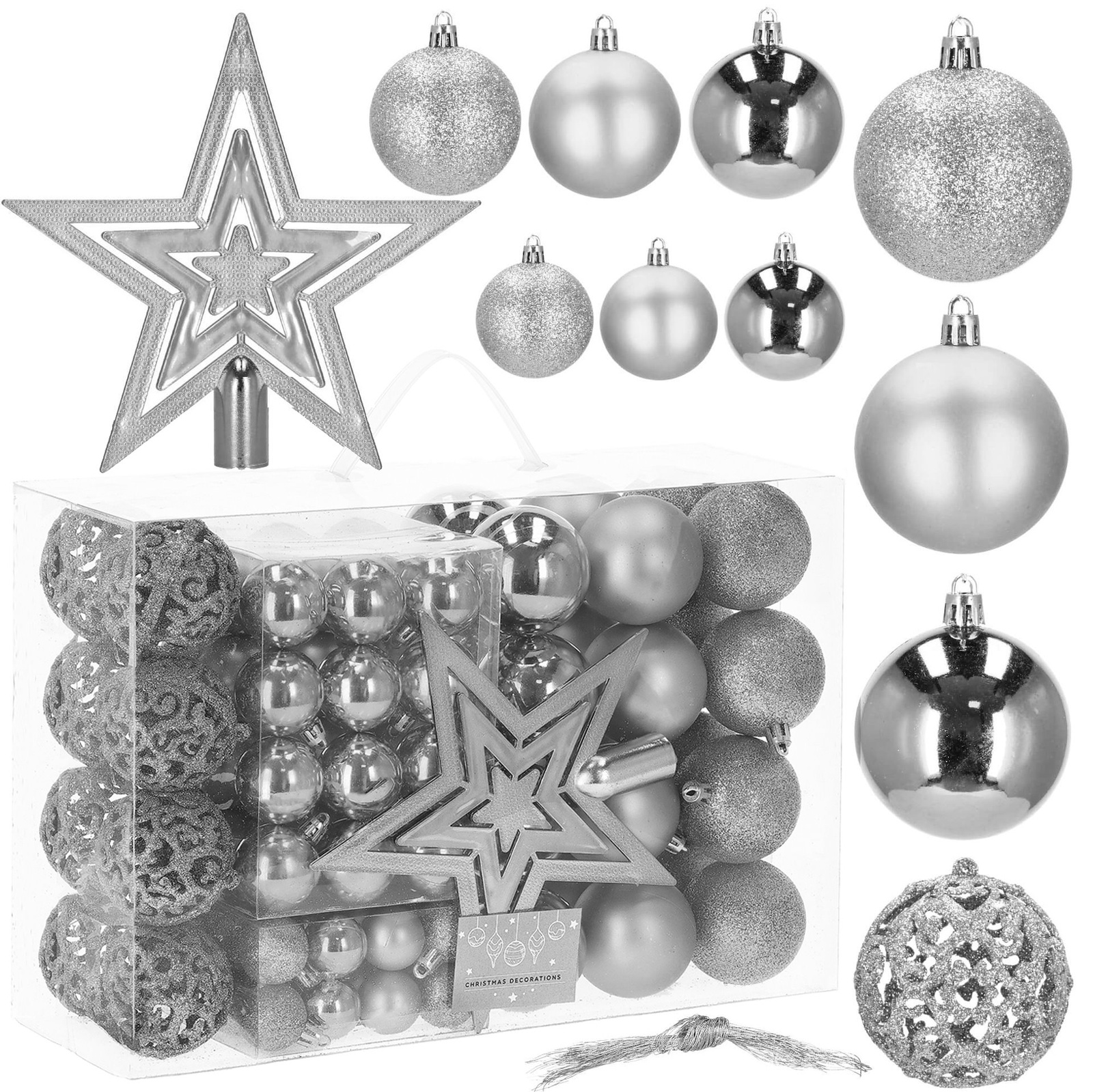 - Liczba sztuk: 100 bombek + 1 gwiazda na czubek choinki