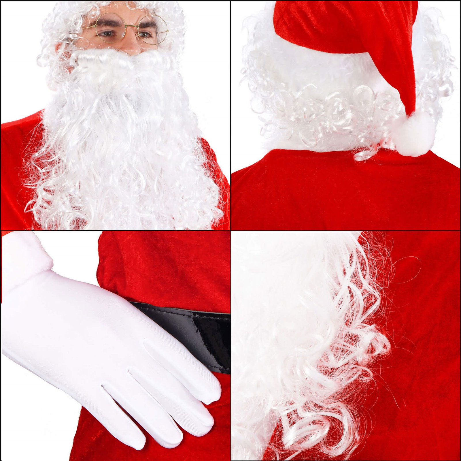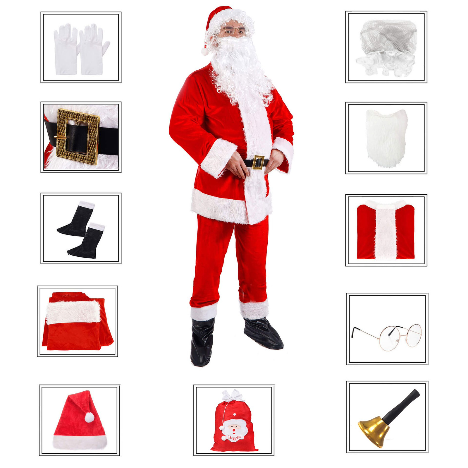 Broda Świętego Mikołaja i peruka to najważniejsze elementy stroju. To właśnie dzięki nim można całkowicie zmienić swój wygląd, aby dzieci nie poznały osoby kryjącej się za białymi lokami. Zamontowana gumka brody utrzymuje ją w odpowiednim miejscu, aby uroczystość spotkania z Mikołajem odbyła się z ukryciem prawdziwej tożsamości. Prawdziwy Mikołaj miał przy sobie dzwonek, którym ogłaszał swoje przyjście. W zestawie od firmy Springos znajduje się złoty dzwonek z czarną rączką.