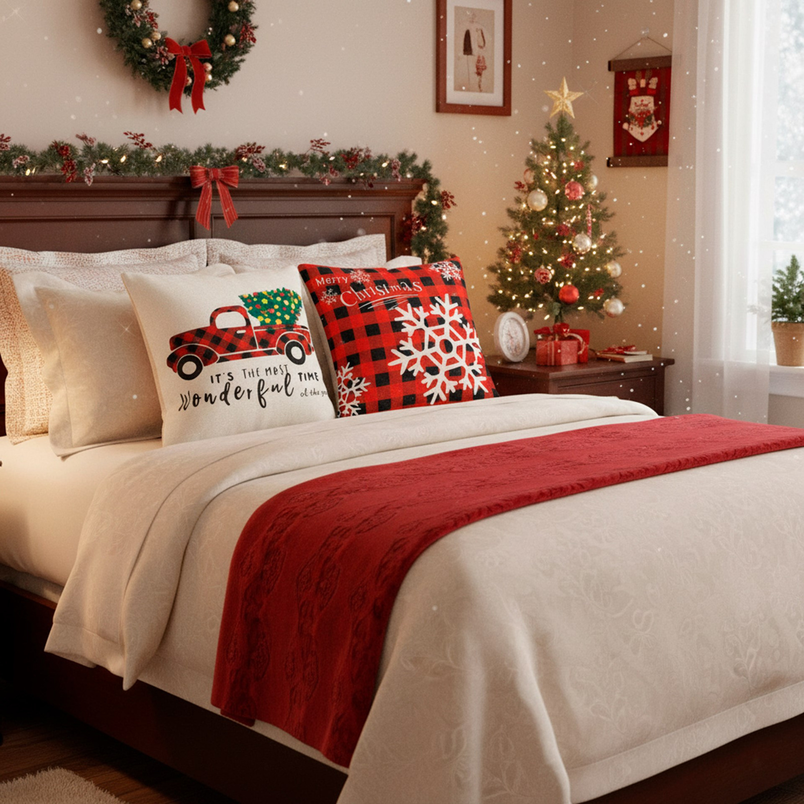 ⭐ Dekoracyjne poszewki dodają pomieszczeniu głębi i elegancji, podkreślając świąteczną atmosferę.