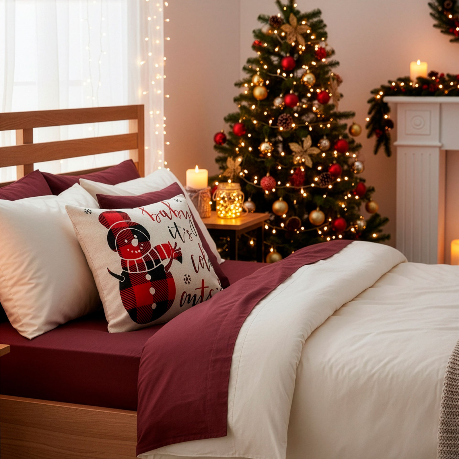 Dekoracyjne poszewki dodają pomieszczeniu głębi i elegancji, podkreślając świąteczną atmosferę.
