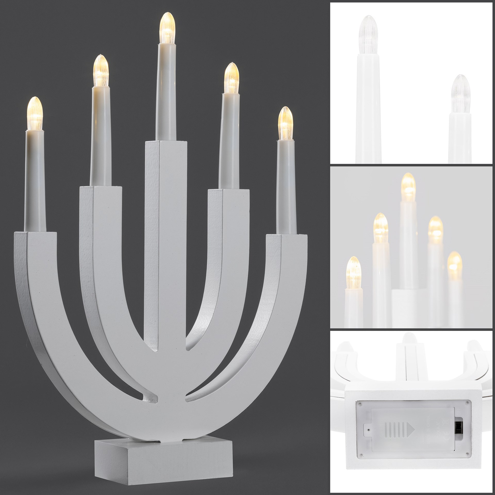 Świecznik adwentowy z 5 świecami Led bożonarodzeniowy świąteczny na baterie biały
