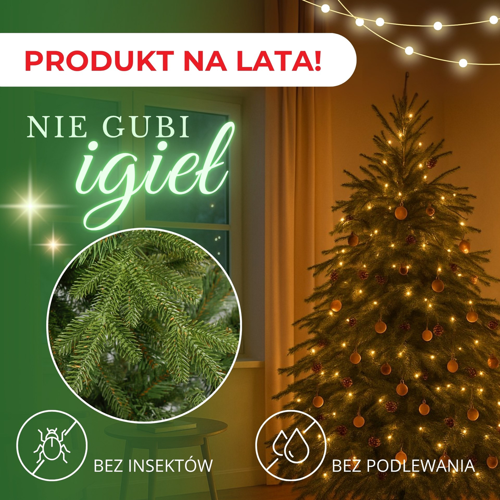 ⭐ Bezproblemowe użytkowanie – Sztuczna choinka nie gubi igieł i nie wymaga regularnego podlewania, co czyni ją wygodnym wyborem na świąteczne dekoracje.