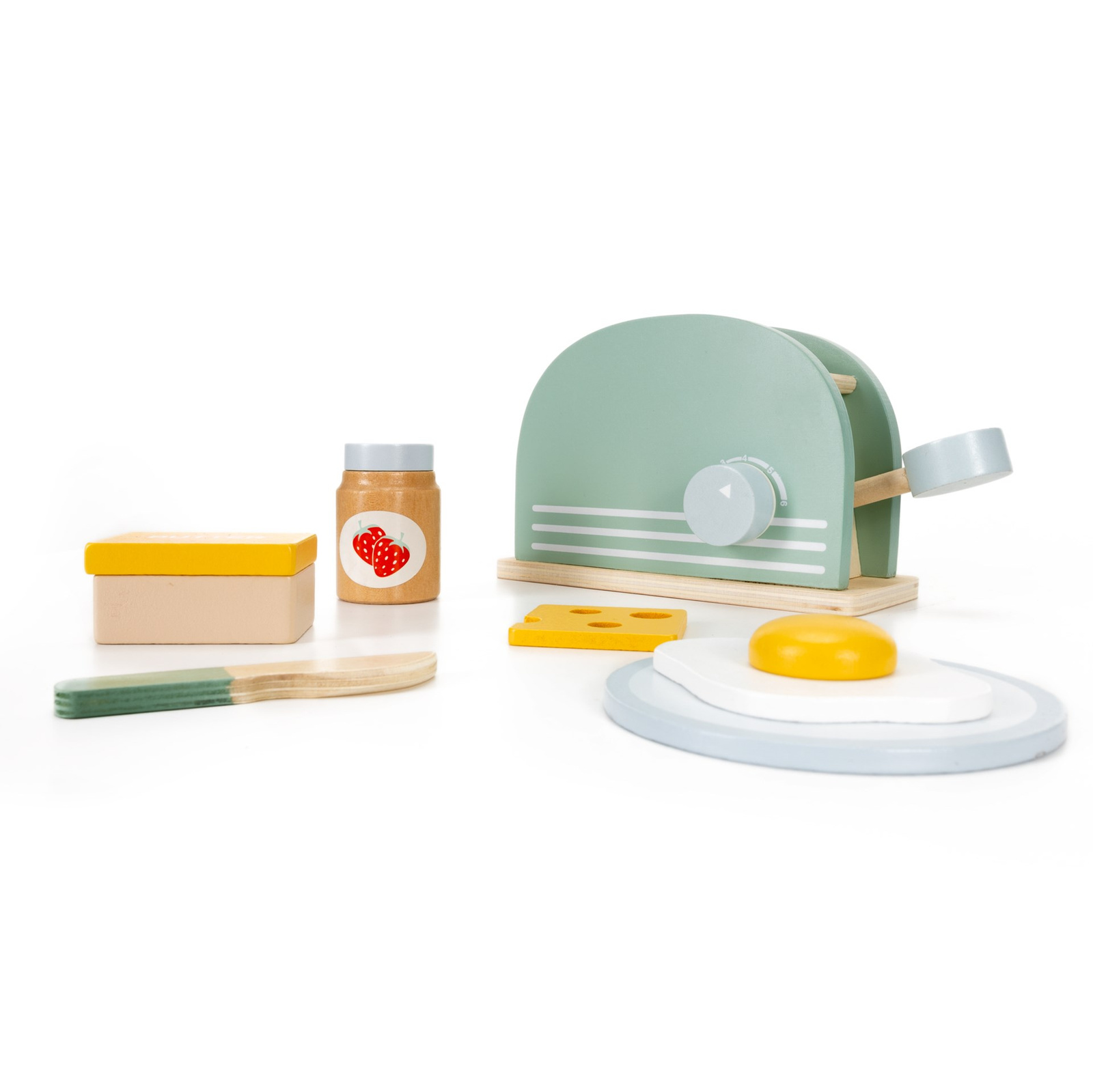 Toster drewniany z akcesoriami śniadaniowymi 9 el. zabawka dla dzieci, multikolor