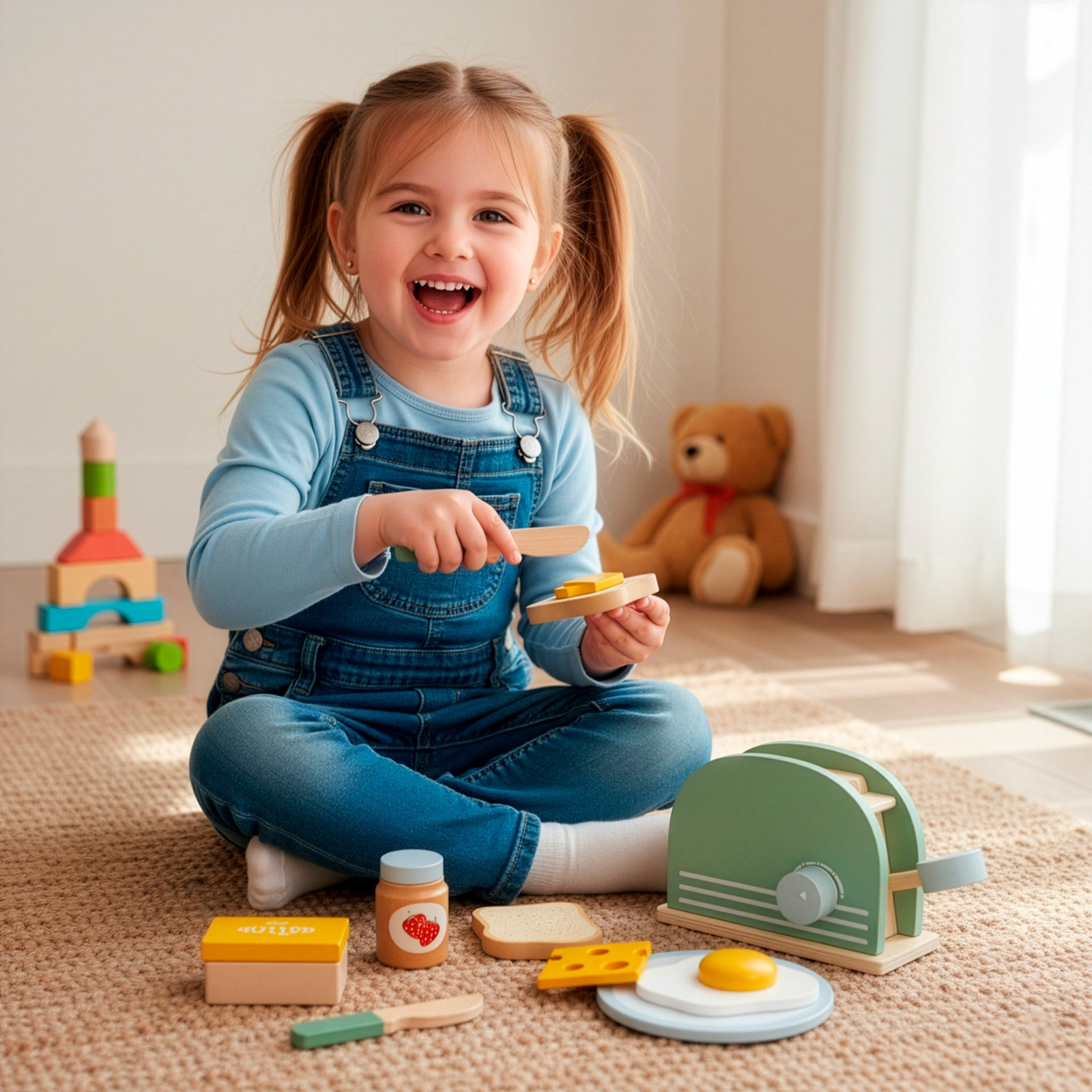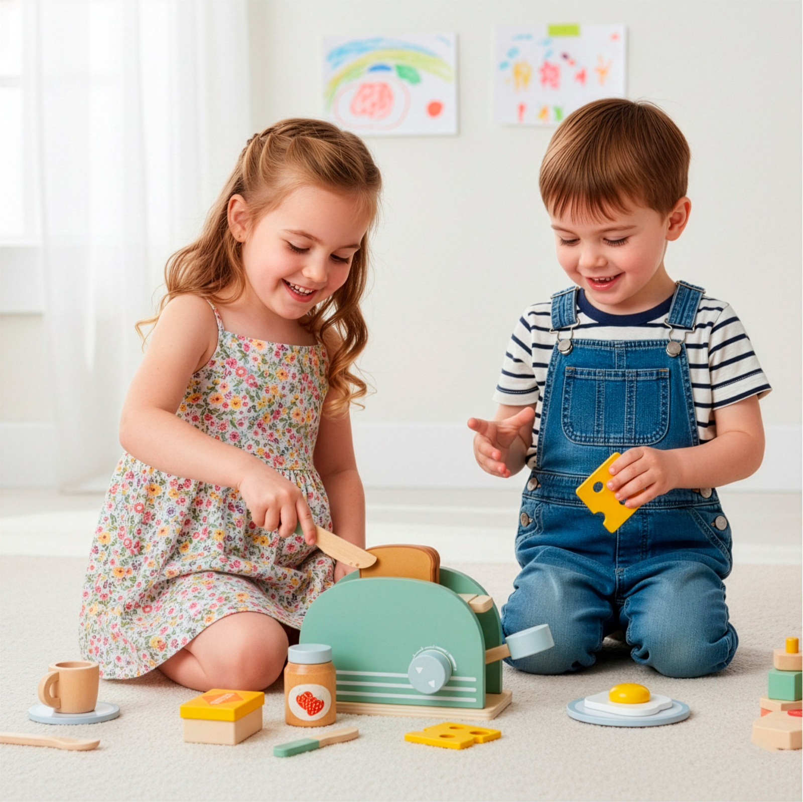 Śniadaniowa zabawa z drewnianym tosterem dla dzieci