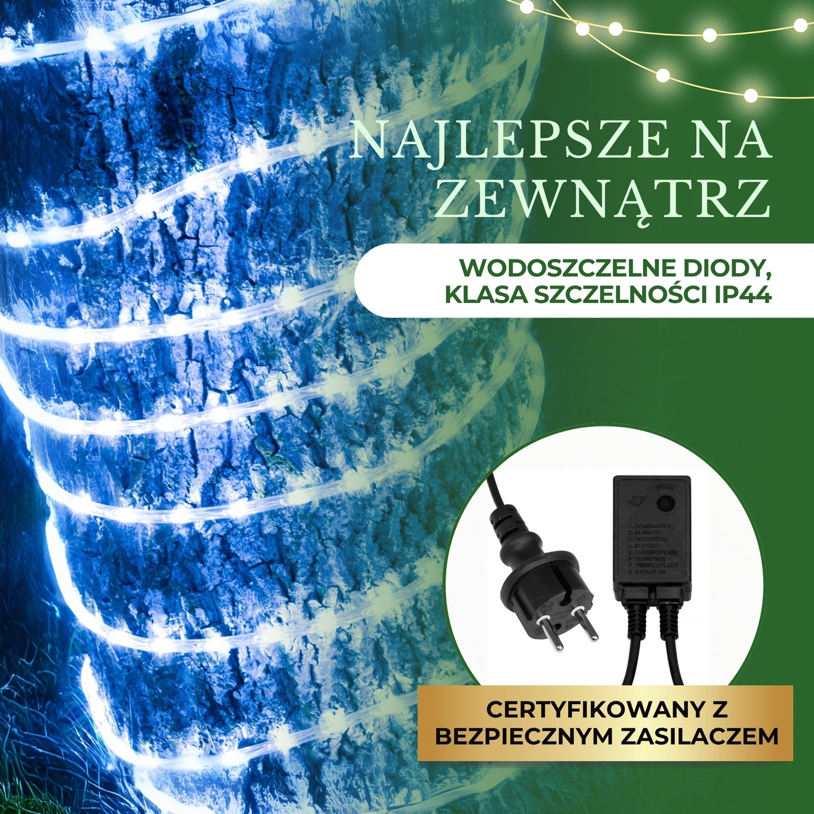 - Długość zestawu: 21,5m (odcinek świecący 20m + kabel + wtyczka)