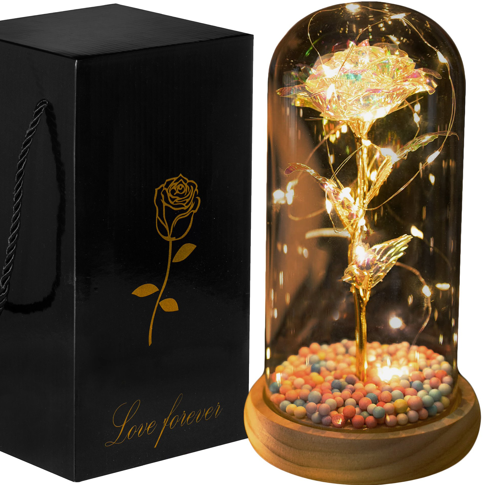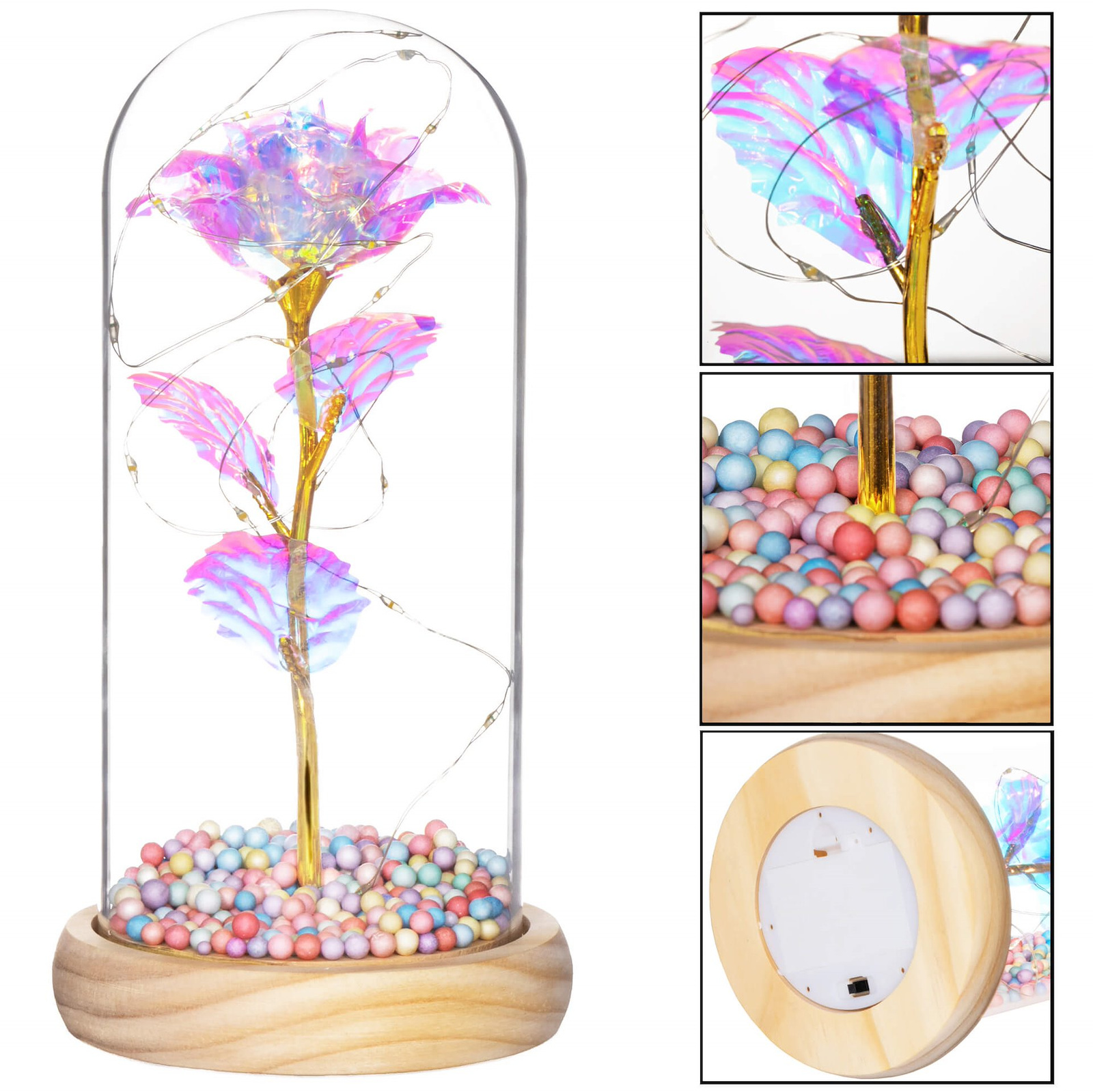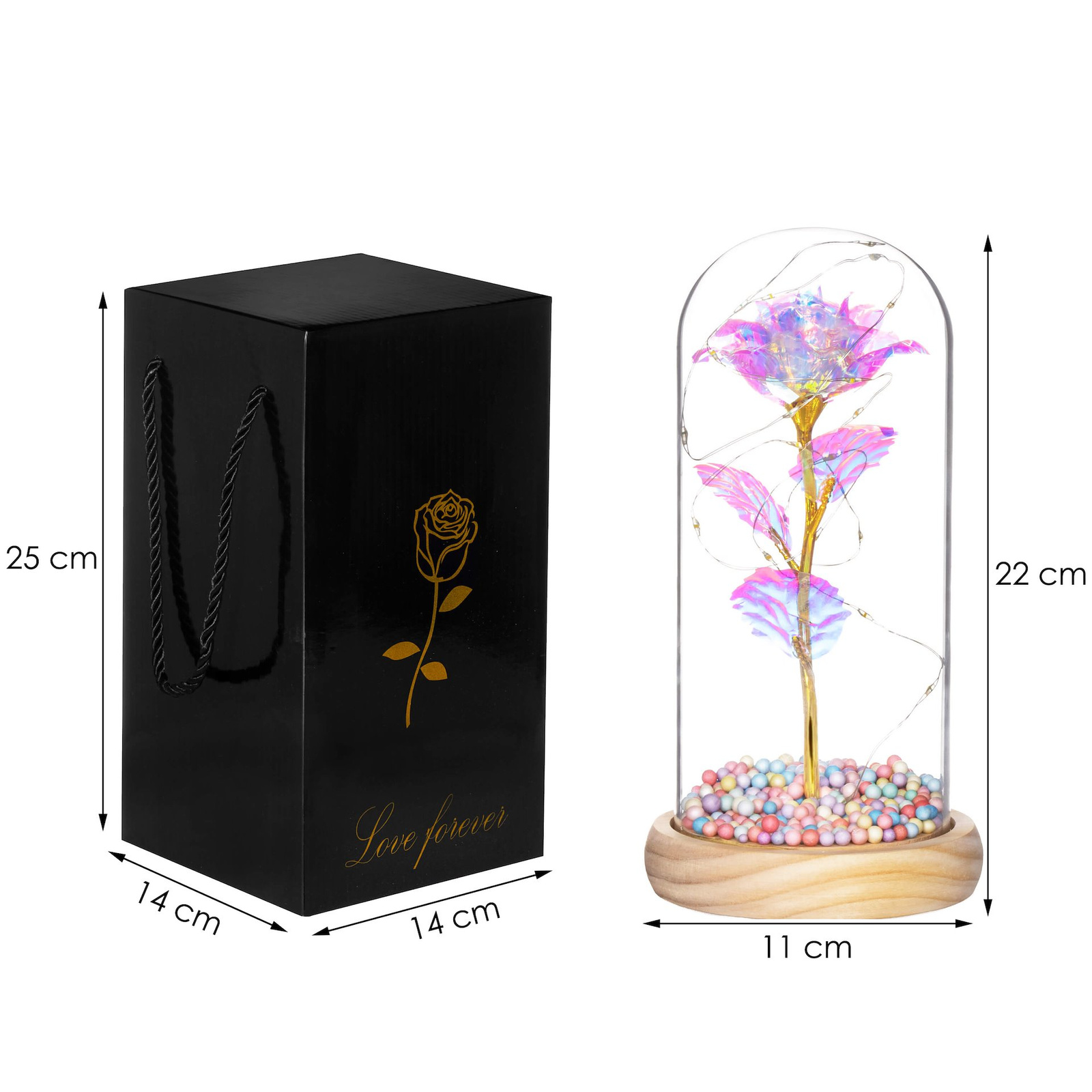 Wieczna róża w kloszu 22 cm świecąca ozdoba LED prezent kryształowa