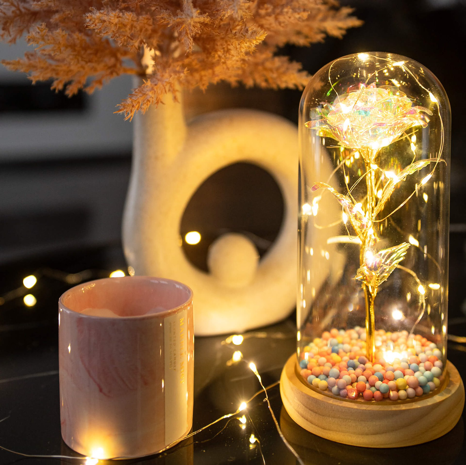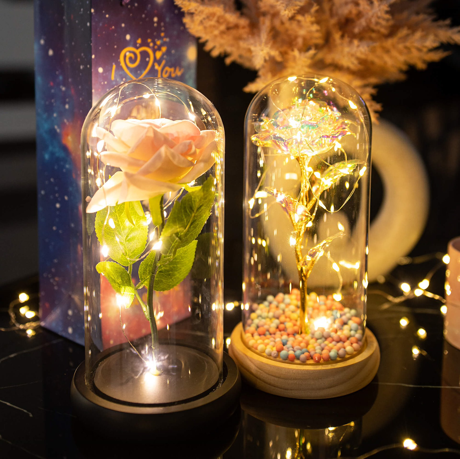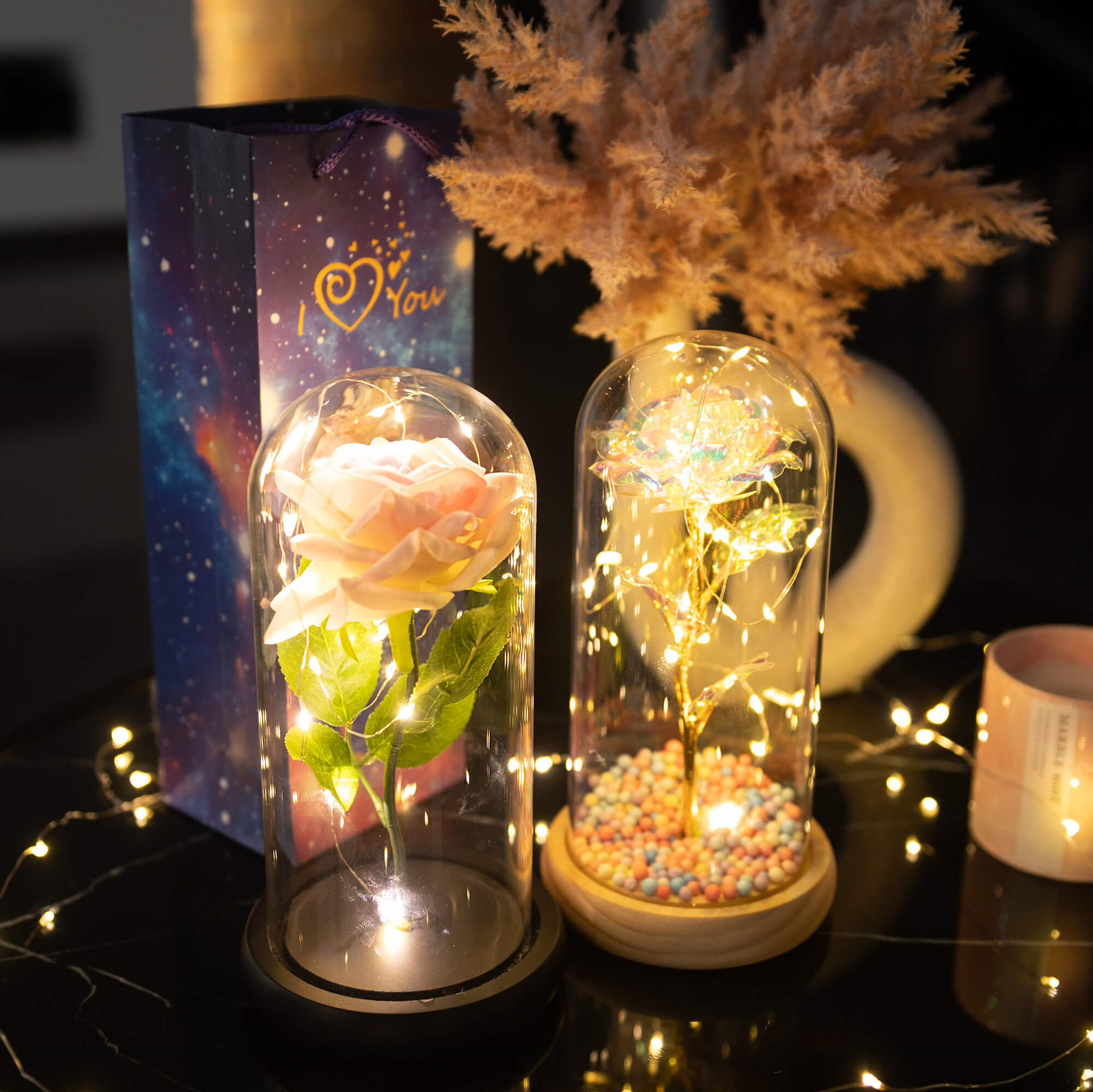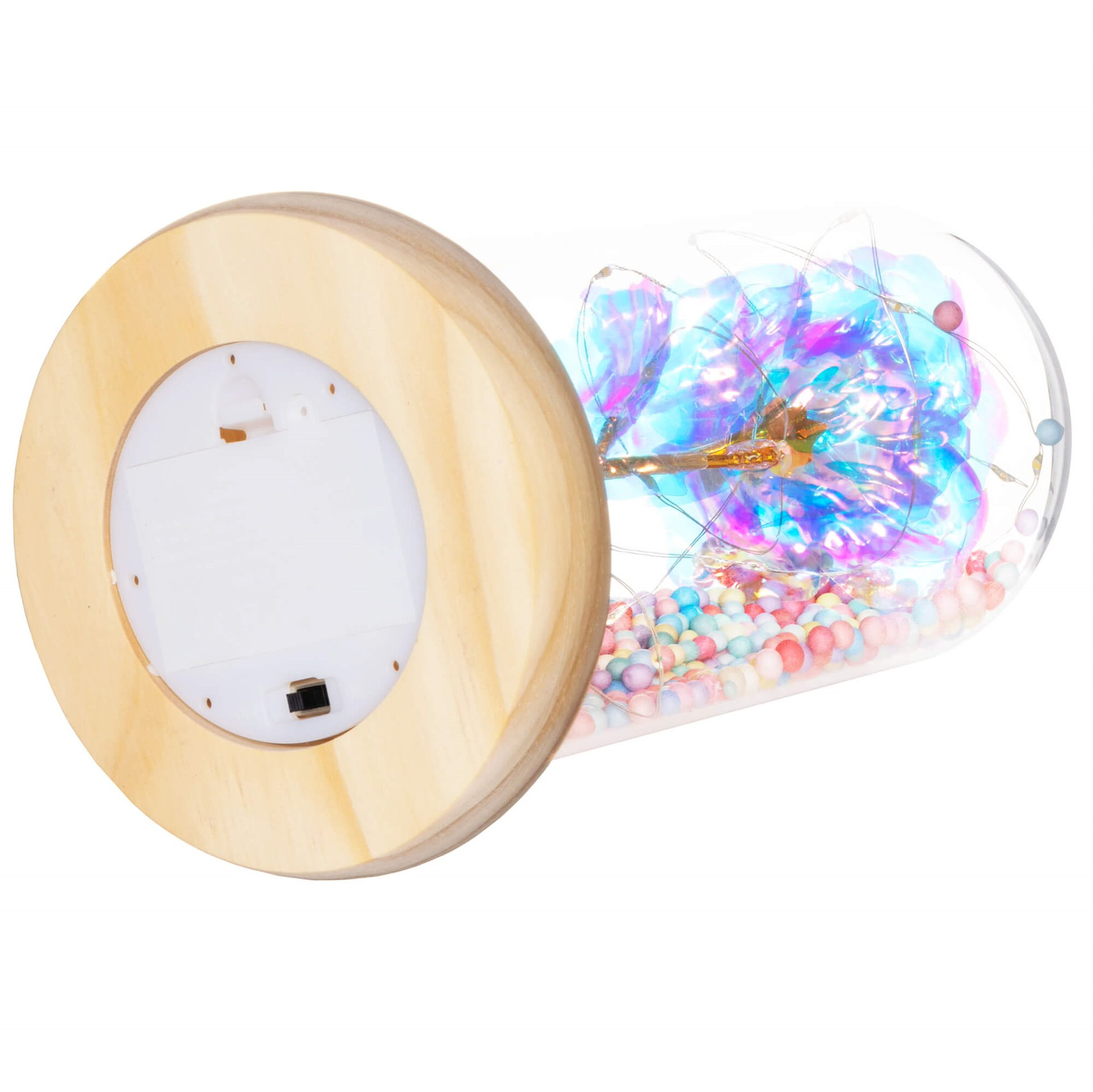 Wieczna róża w kloszu 22 cm świecąca ozdoba LED prezent kryształowa