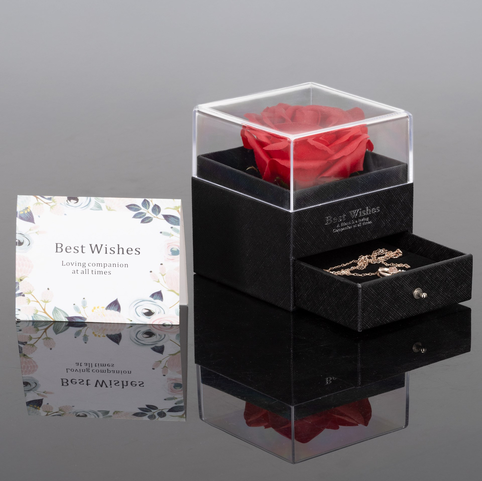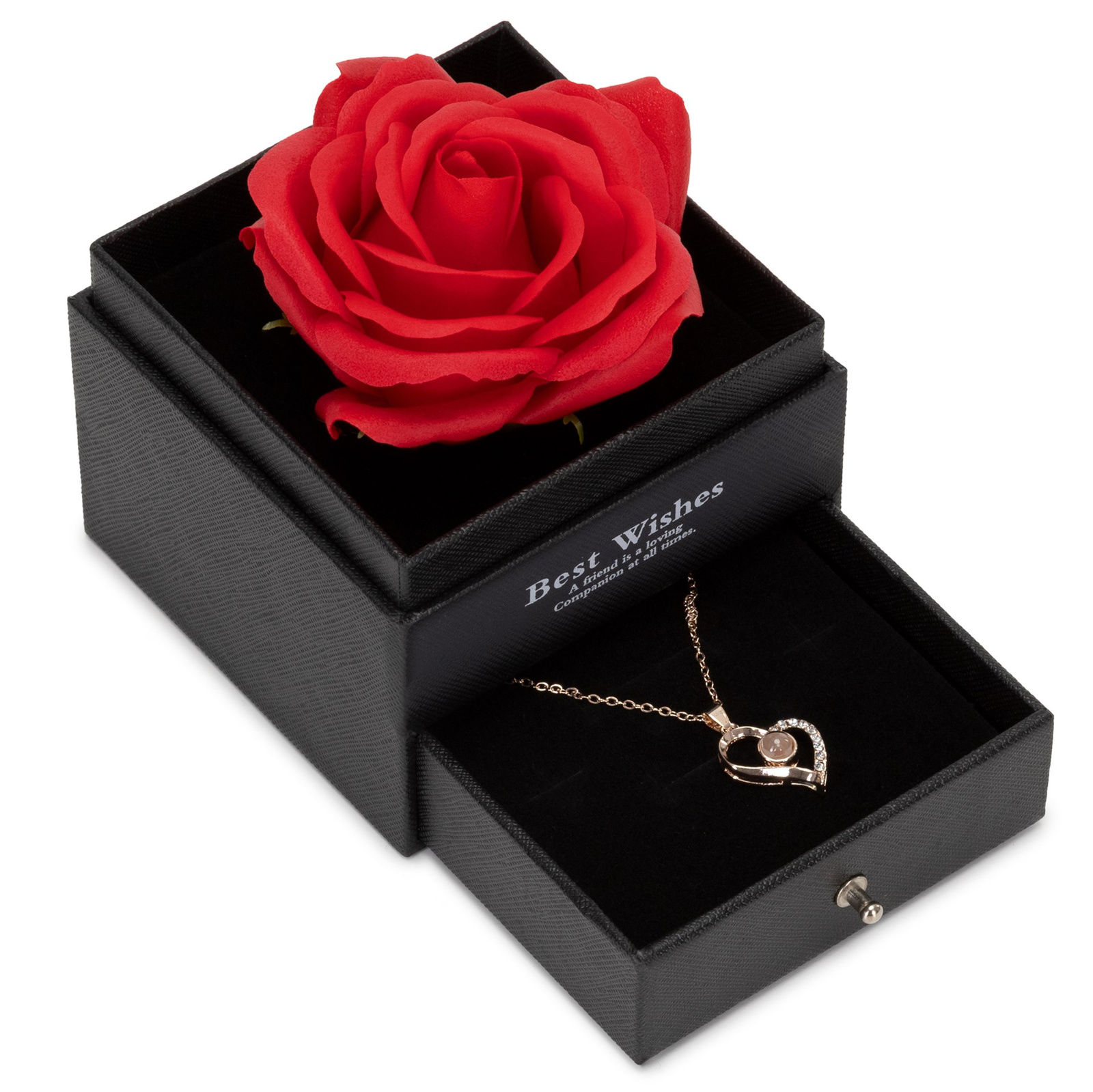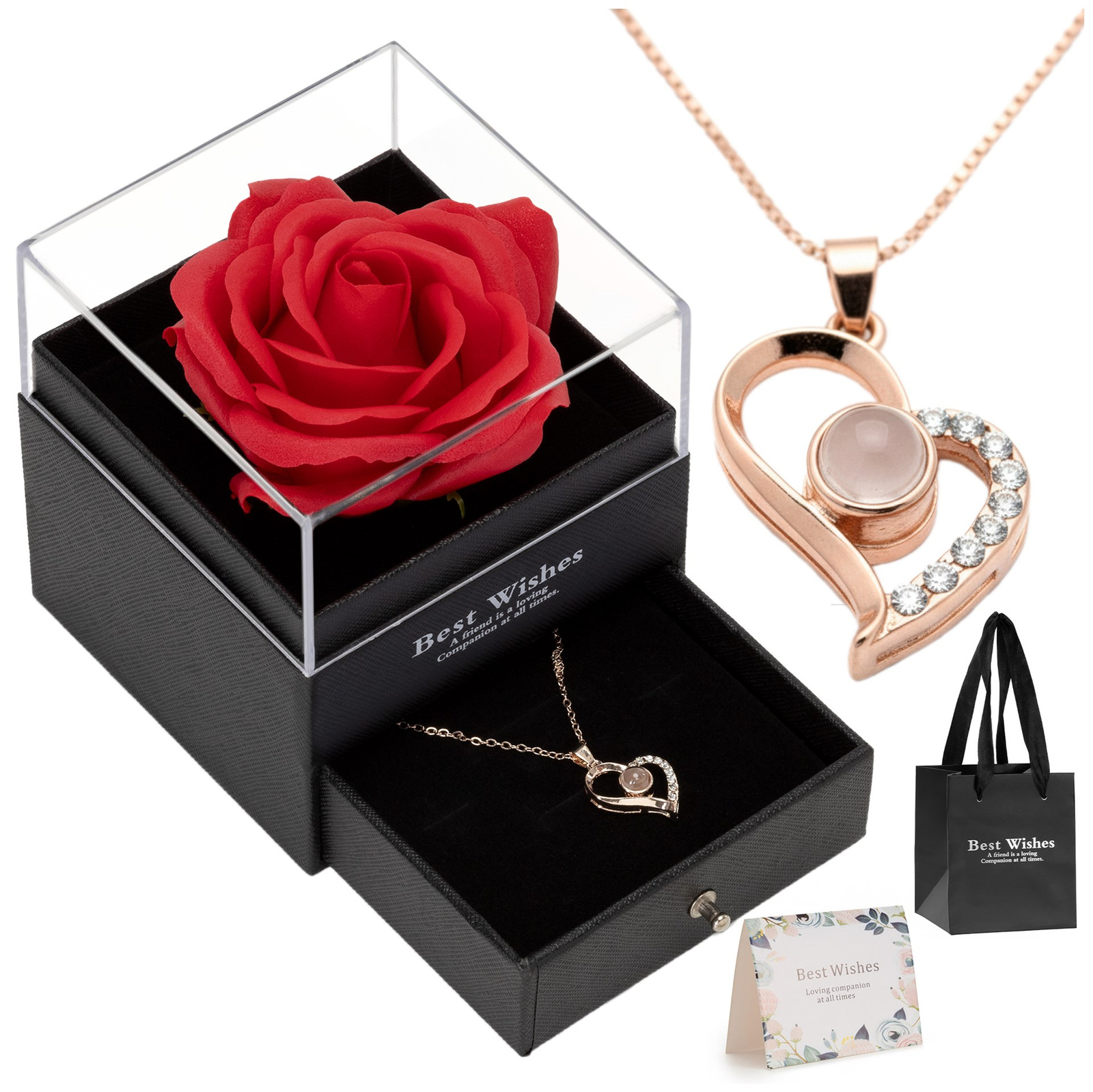 Wieczna róża z naszyjnikiem i pudełkiem prezentowym na dzień kobiet walentynki dla niej