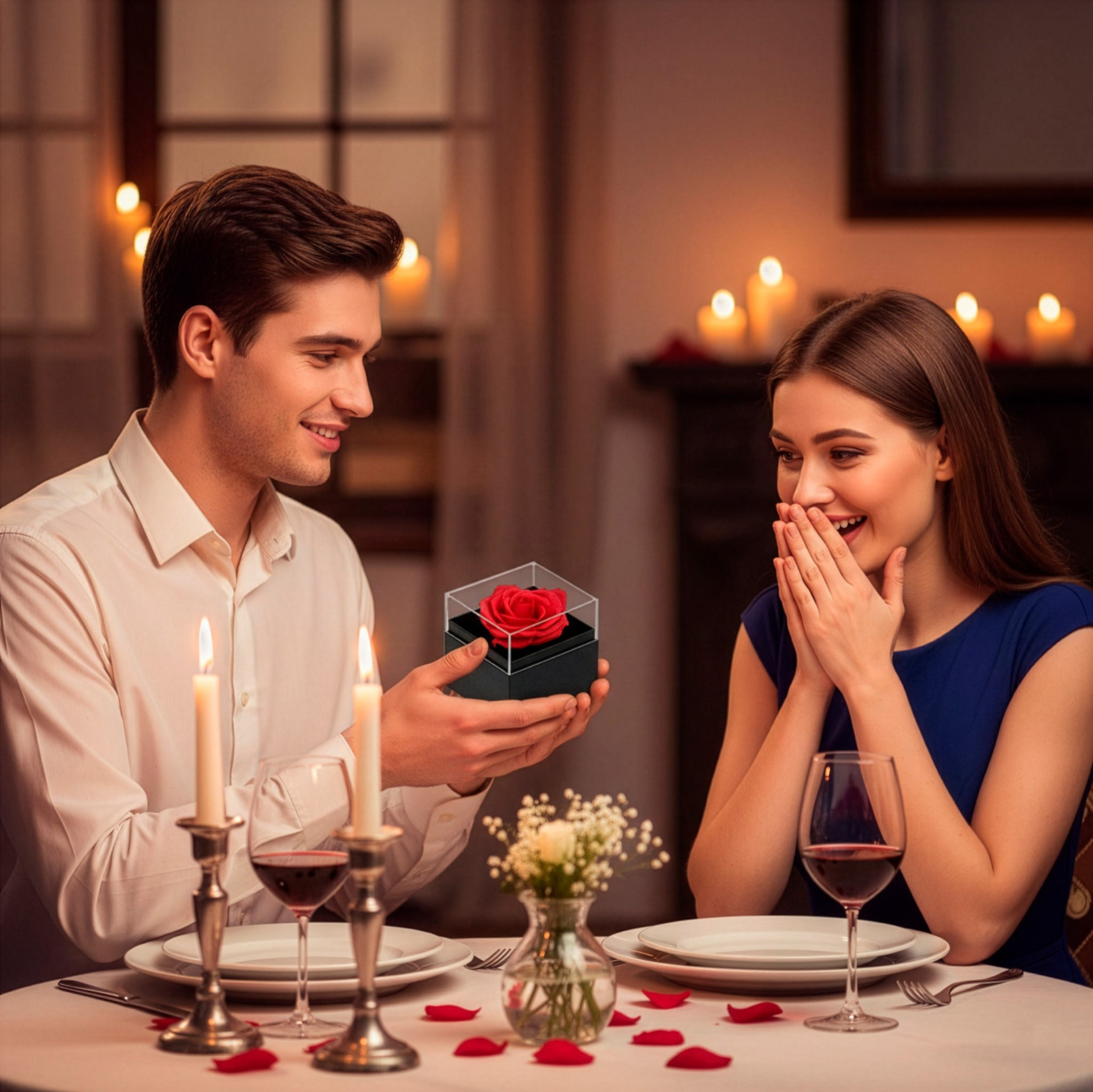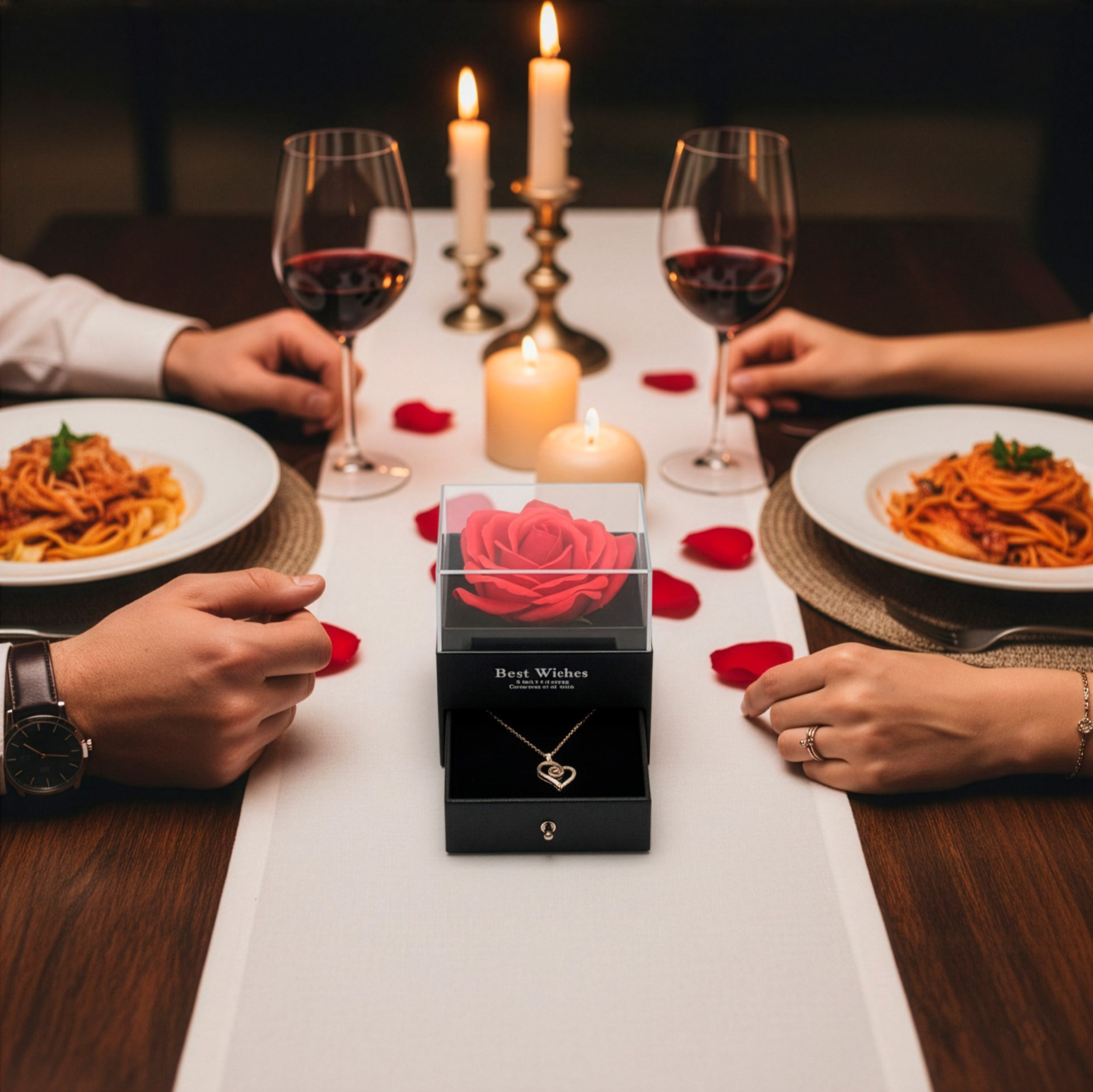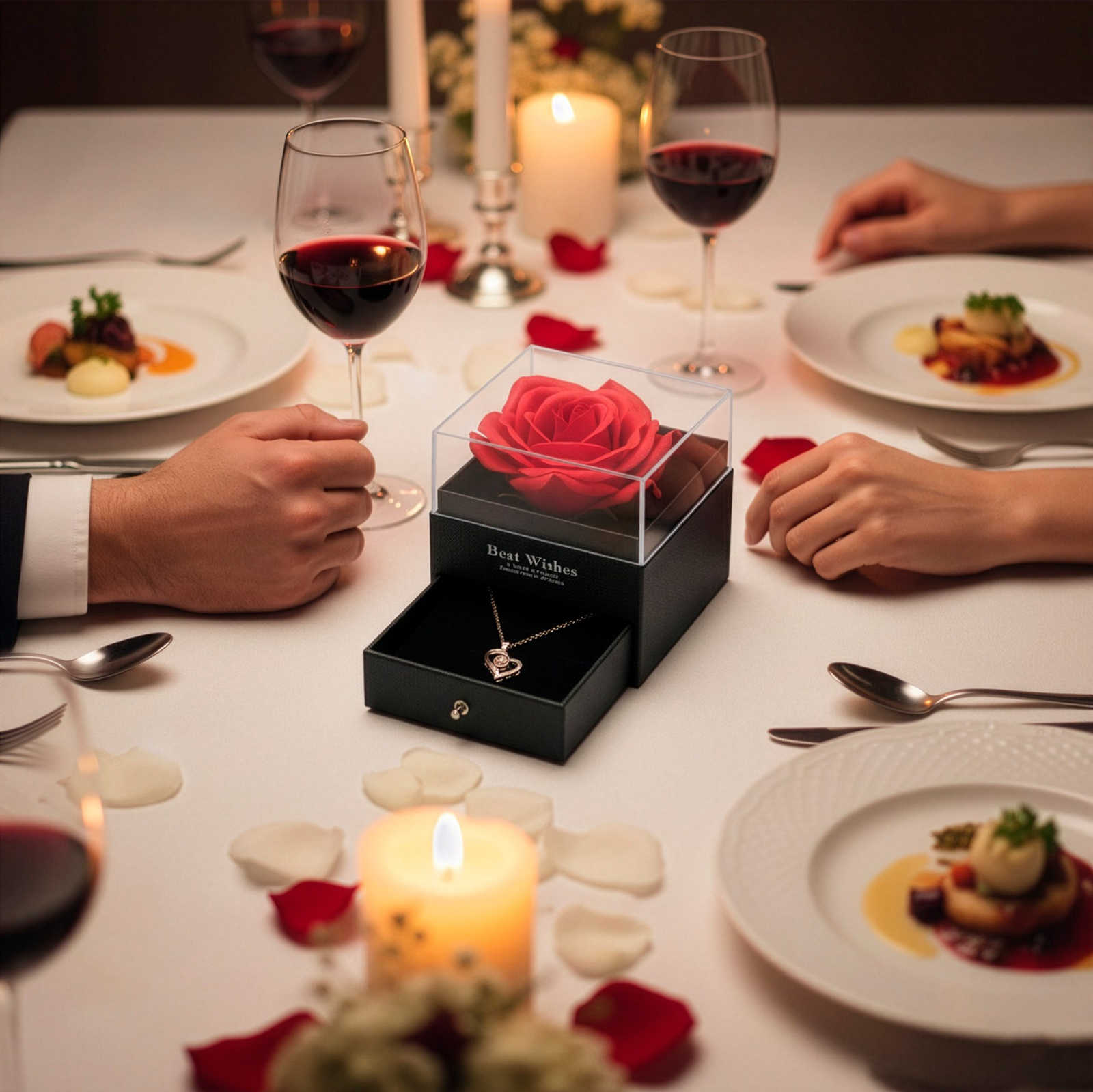 Biżuteria z tego zestawu została stworzona z myślą o osobach, które lubią niespodziani. Odkrywanie ukrytej wiadomości w kamieniu zawieszki to wyjątkowy moment, który na długo zapada w pamięć. Naszyjnik można nosić na co dzień lub zakładać na specjalne okazje, ponieważ jego uniwersalny design pasuje do wielu stylizacji. Wieczna róża dodaje całości romantycznego charakteru i stanowi piękną dekorację wnętrza. Komplet doskonale sprawdzi się jako prezent dla ukochanej osoby, żony, partnerki lub bliskiej osoby, której chcesz przekazać coś wyjątkowego. To propozycja, która łączy biżuterię, dekorację i emocjonalny przekaz w jednym zestawie. Dzięki starannemu wykonaniu i eleganckiej oprawie prezent wygląda luksusowo i ponadczasowo. Taki upominek podkreśla wagę chwili i sprawia, że obdarowana osoba czuje się naprawdę wyjątkowo.
