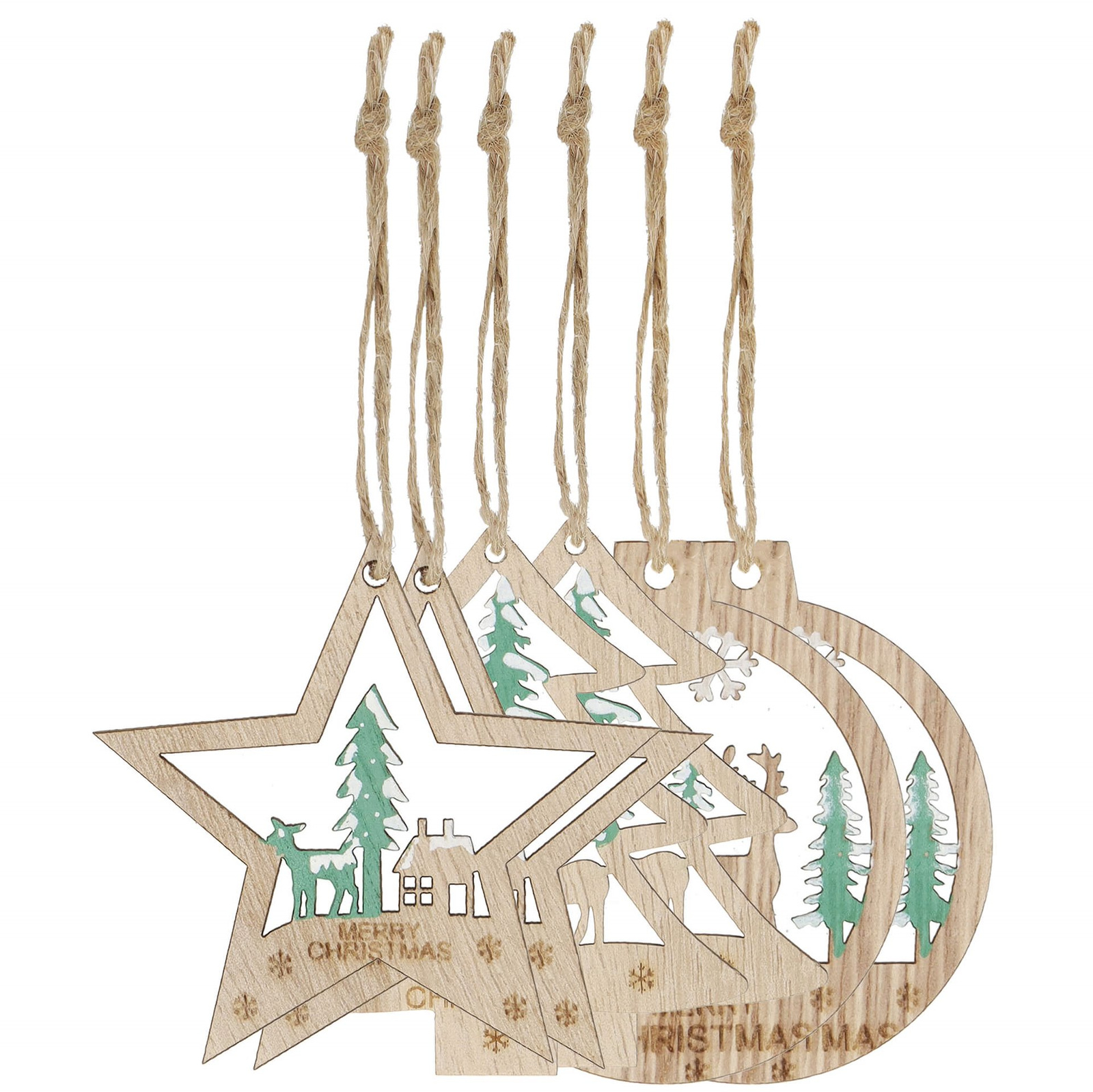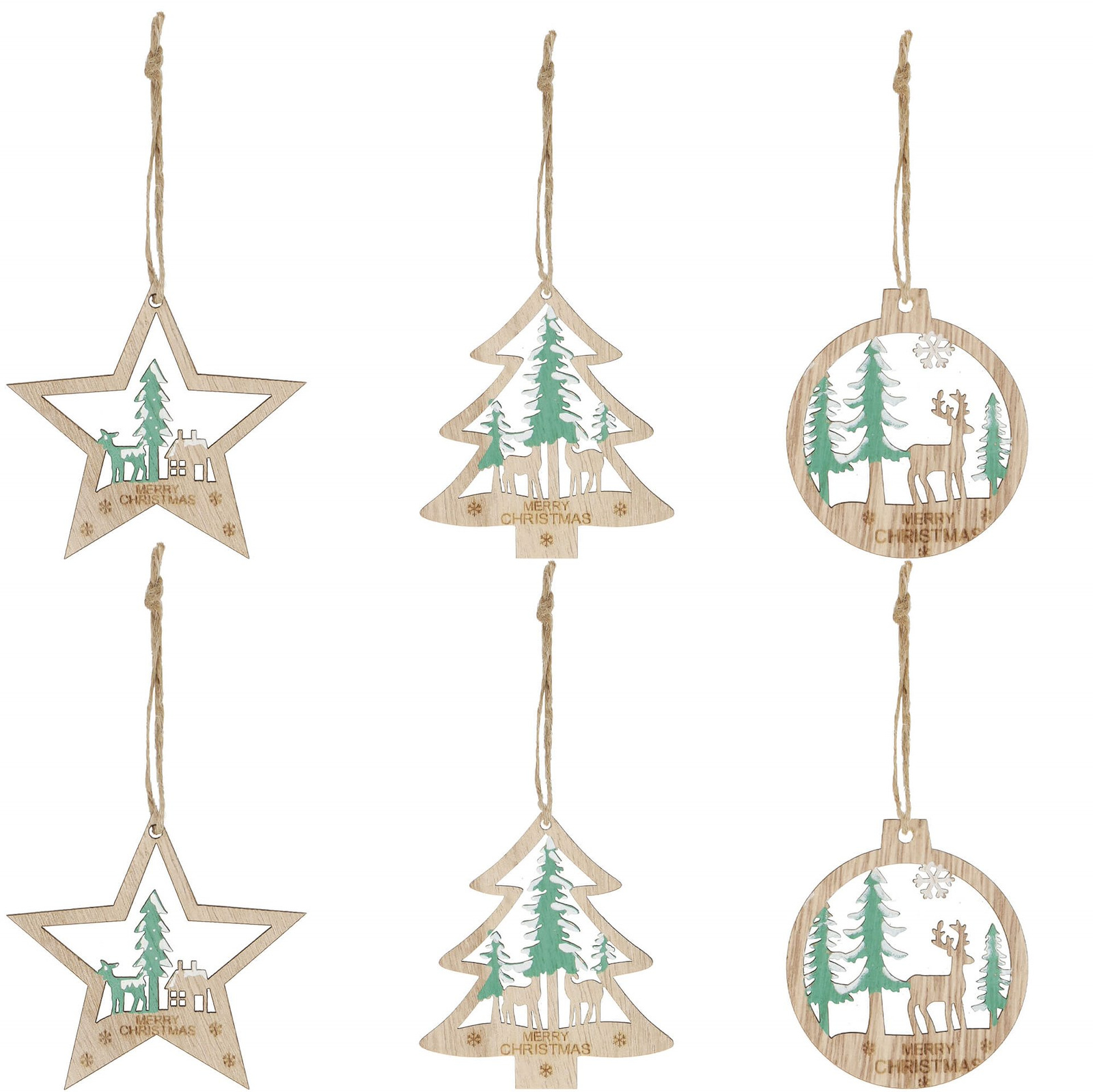 Opinie o Zawieszki choinkowe 6 sztuk drewniane ozdoby świateczne