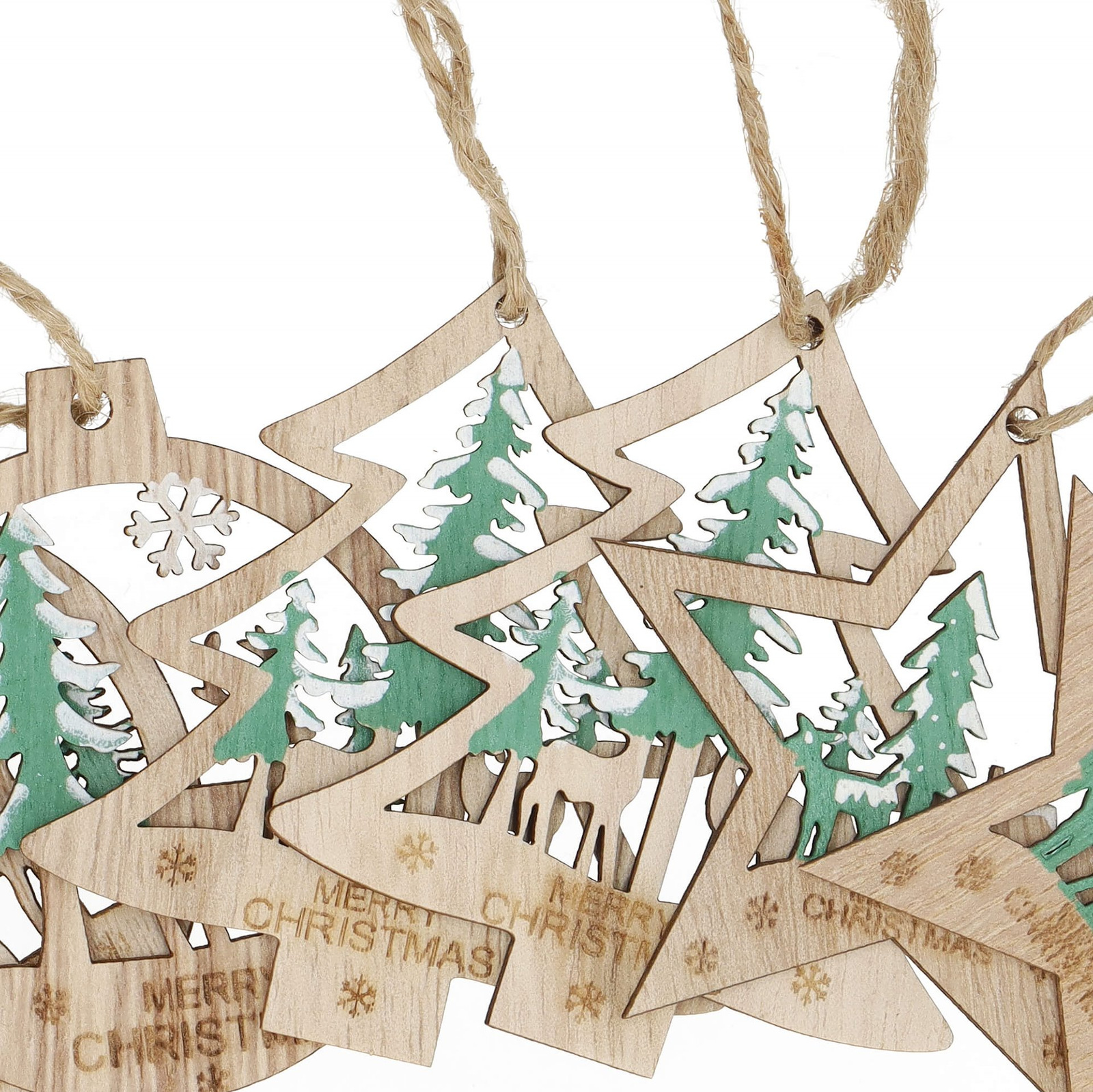 Zawieszki choinkowe 6 sztuk drewniane ozdoby świateczne