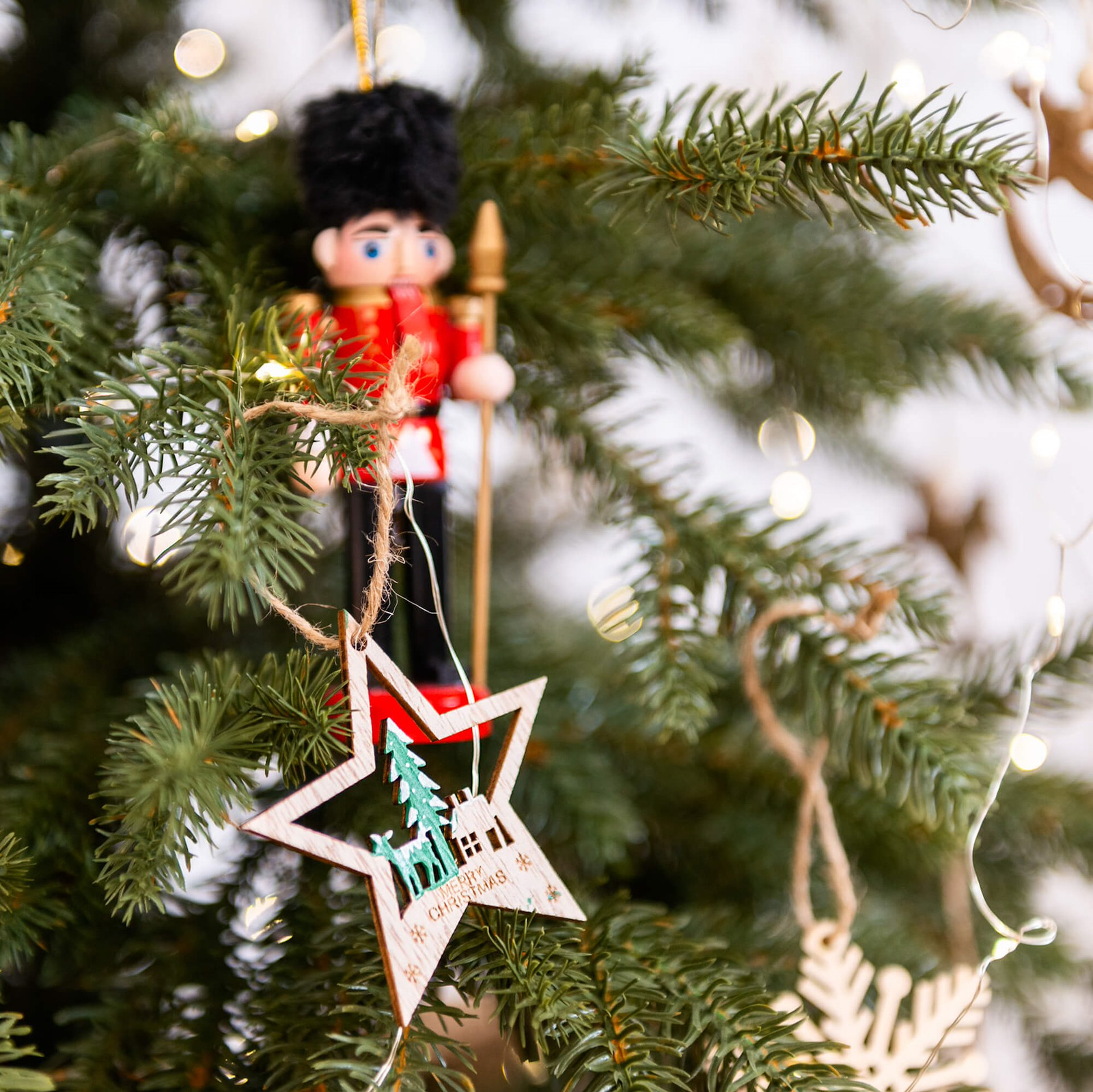 Zawieszki świąteczne to jedne z najpiękniejszych dekoracji bożonarodzeniowych. Łączy je oryginalny wygląd i wysoka jakość wykonania. Nasz zestaw zawieszek składający się z 6 drewnianych ozdób wprowadzi do każdego domu ciepły, rodzinny klimat świąt. Komplet dekoracji w formie gwiazdek, choinek i okręgów będzie pasować do choinek przyozdobionych w różnych stylach: tradycyjnym, boho czy vintage. Ponadczasowe zawieszki wspaniale prezentują się w świetle lampek choinkowych dodając drzewku wyjątkowego uroku.