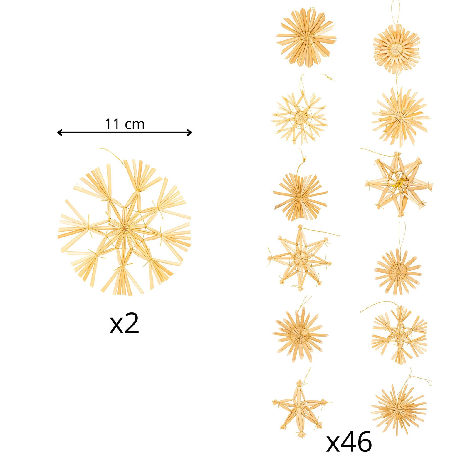 Zawieszki choinkowe z słomy, naturalne dekoracje świąteczne 48 szt. bombki, brązowe