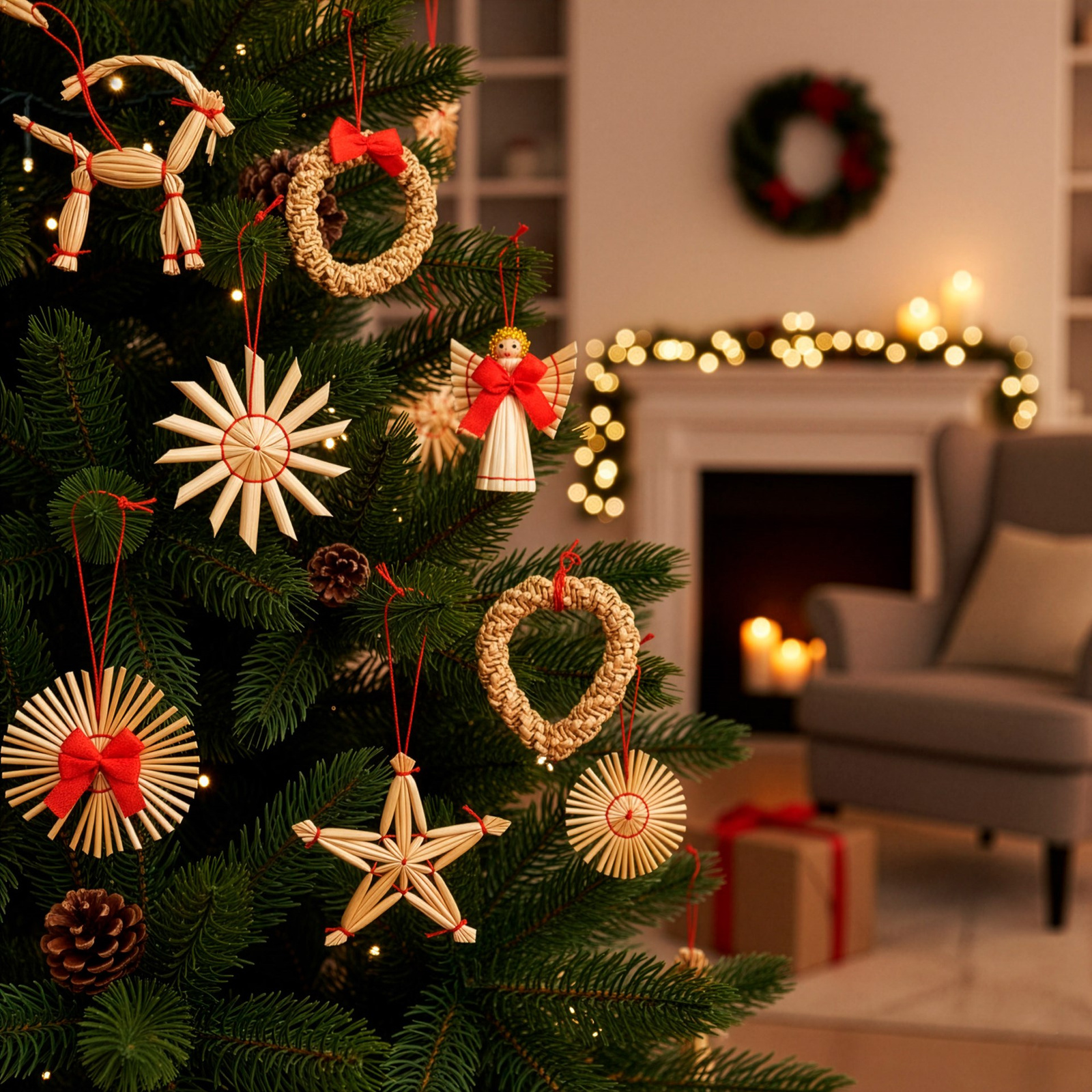 ⭐ naturalny materiał - słoma nadaje ozdobom ciepły, organiczny wygląd i unikalną teksturę.